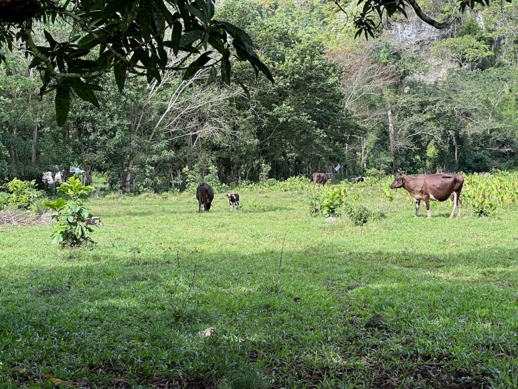 Once we reached the eco lodge we learned that they only offer lunch to walk-ins. 20 US $ per person including using the facilities of the lodge. That was a fair deal but we had to wait 3 more hours before we would get some food. Transversing the property was a natural river landscaped into numerous waterfalls. That was quite nice but we didn’t feel like using the numerous pools yet. Instead we explored every corner of the lodge and were lucky to leverage the terraces with their comfortable seating to hide from a sudden rainfall. As we still had so much time until our already complaining stomachs would be served, we went for a hike in the vicinity of the lodge. After the rain of course😉. We were rewarded with more amazing scenery. Workers riding their horses into the woods (see feature photo) and cows happily grazing in the nature.
