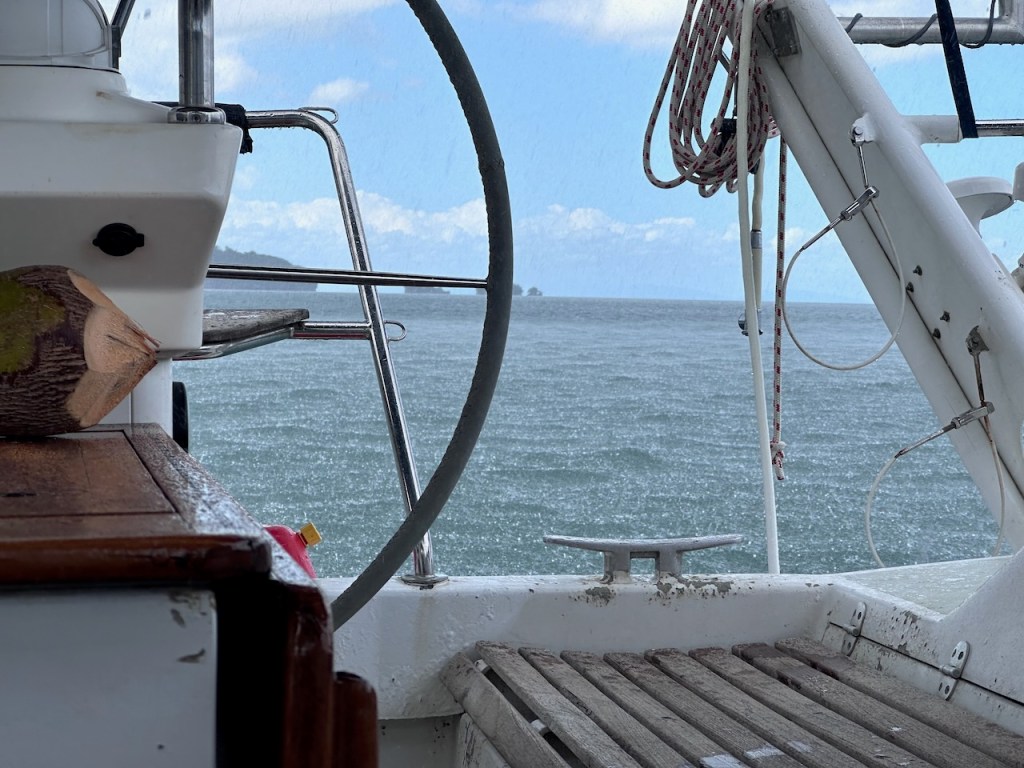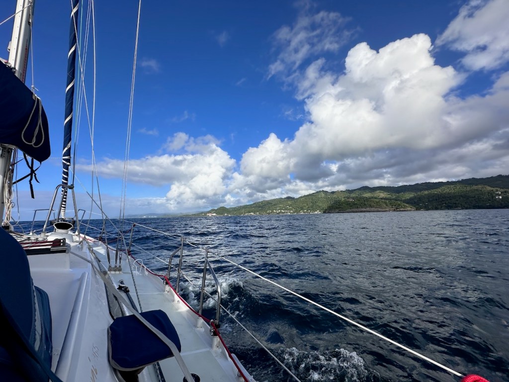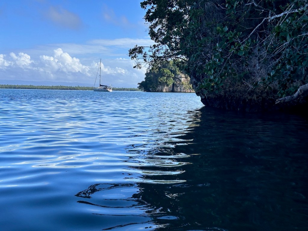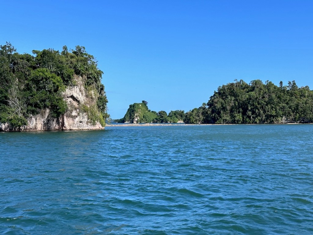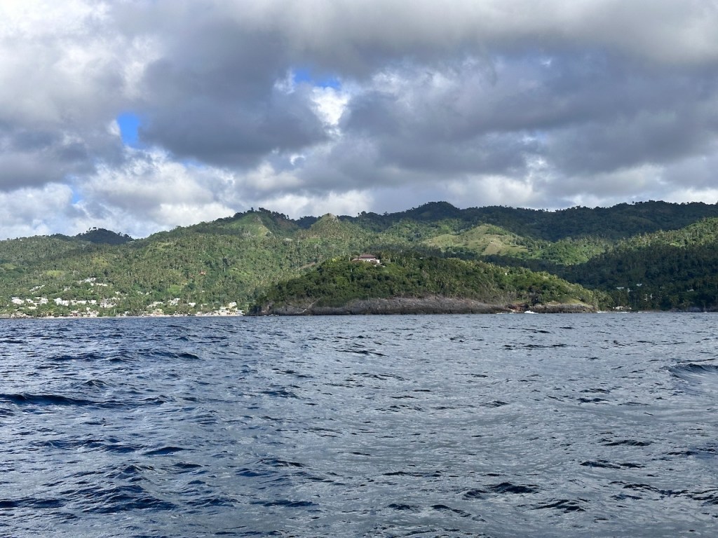 entering the bay of Samanápassing the small island “Levantado”only half a mile from Puerto Santa Barbara (Samamá town)the bay of Santa Barbara