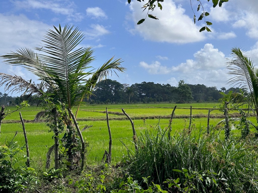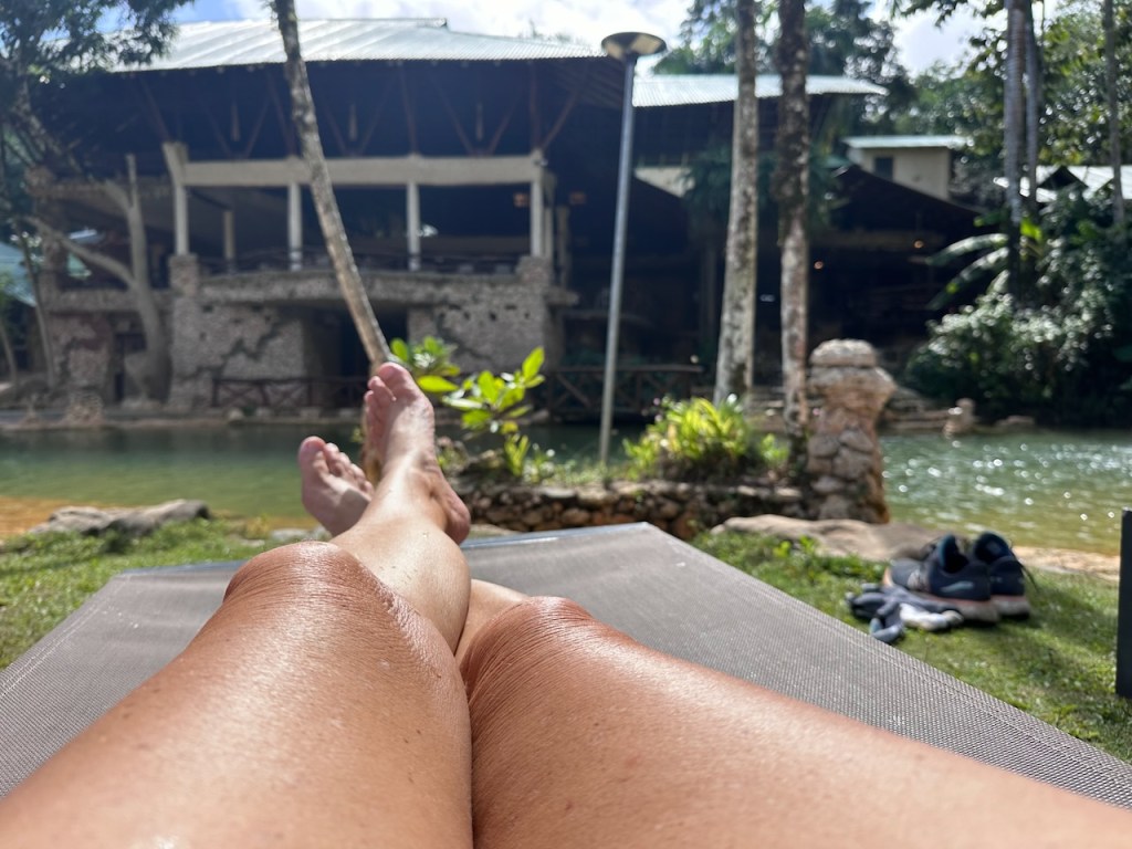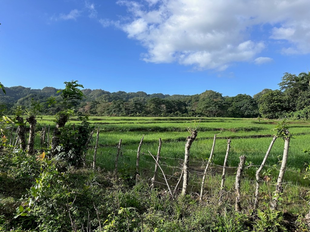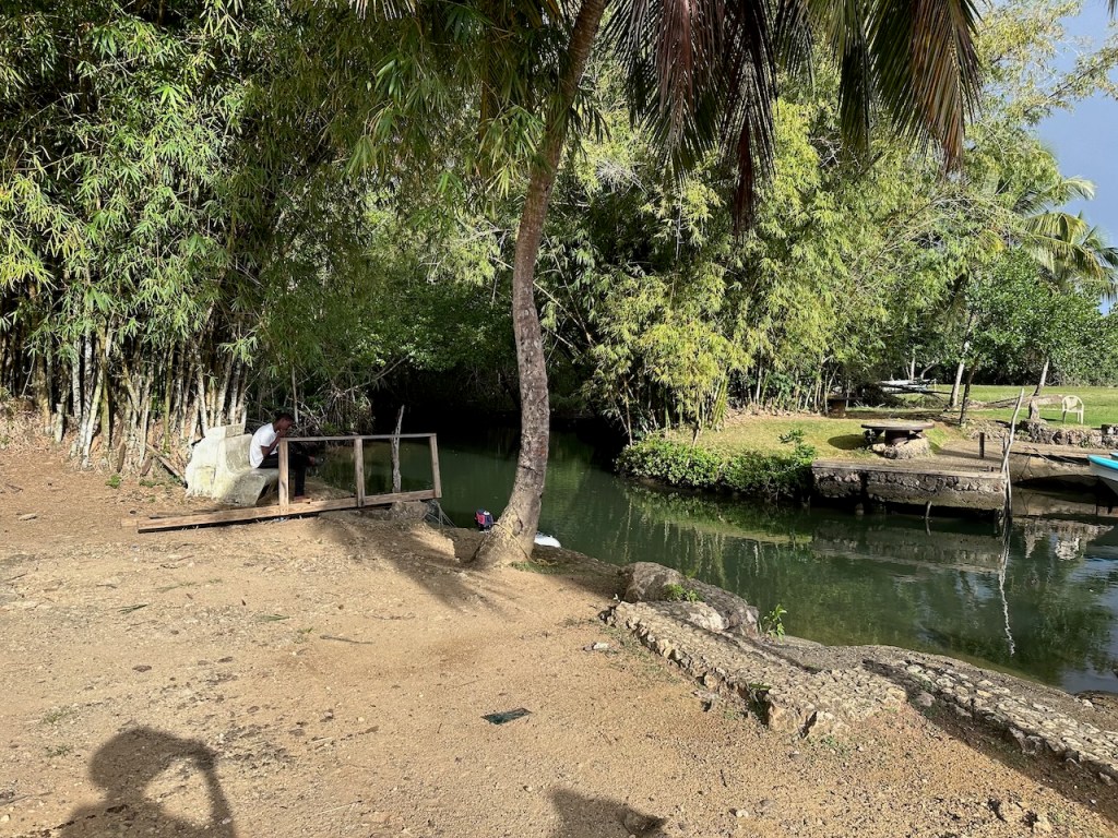 Bahía de San LorenzoAltimate all alone in the big baythe river mouthing the entrance of the mangrove trail it was veeeery special!I like those spooky mangrove rootson the way we saw horsesheadless cowsand many, many tiny crabsthe dock from the water sidehere the dock from ashorepaddy fields, they do look cosy don’t they?no photo shop!the eco lodge, in front one of the poolsanother pool areait all looked so giant we needed a rest after some exploring of the lodges premisesthe lodge was built to fit in the hills and nature; we had a great view from the top areasthe lodge had many natural details and was as well decorated with them, here leaves were used to improve the floorsthe lodge premises were perfectly adapted to the naturewe felt a bit like being in the Alpsnot the best focus but one can still see the mast of Altimate in Bahía de San Lorenzo, the vast bay of Samaná and the hills of peninsula SamanáI like lilya sleepy pig on our walk exploring the surroundings of the lodgewe kept seeing animalssorry more paddy fields, I thought they were very beautifulI don’t know what these leaves were but they were hugerelaxing, warming up and waiting for lunchI was amazed that the work in the woods seemed to be exclusively done with horses; this fellow brought a lot of cabbage in the bags of his horsethe buffet area almost ready for serving