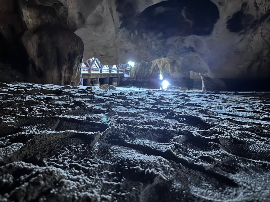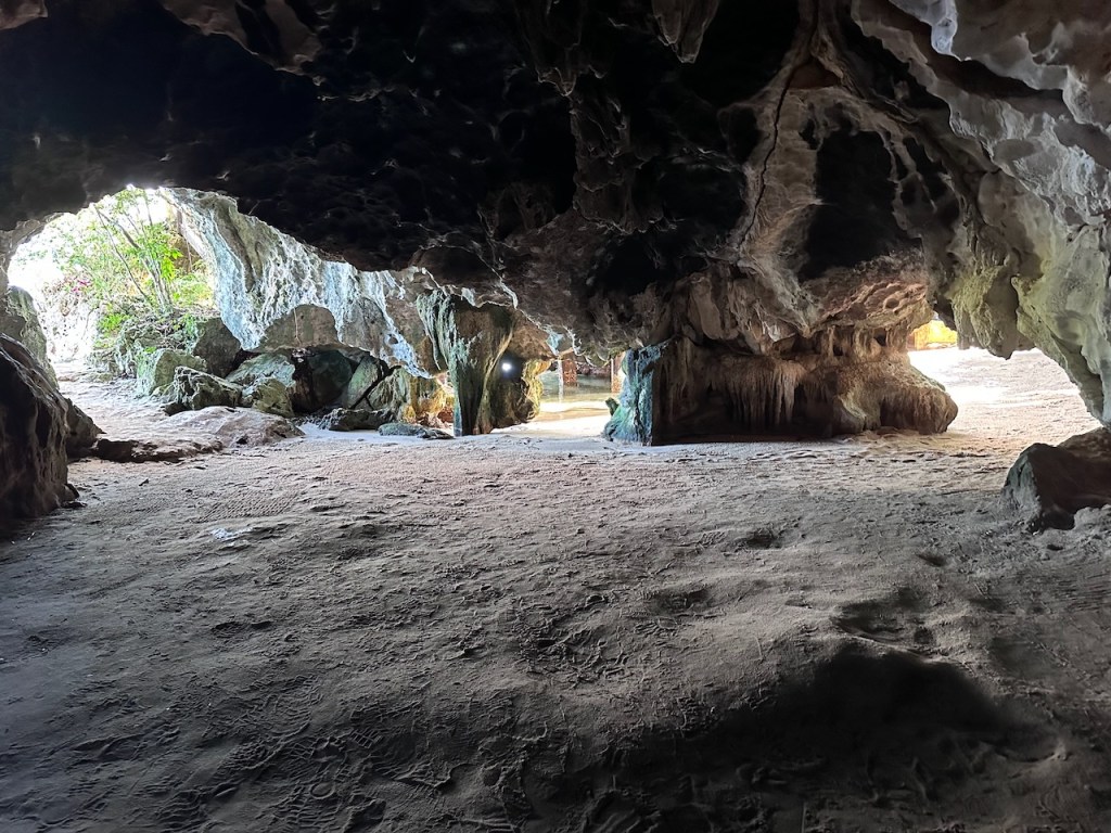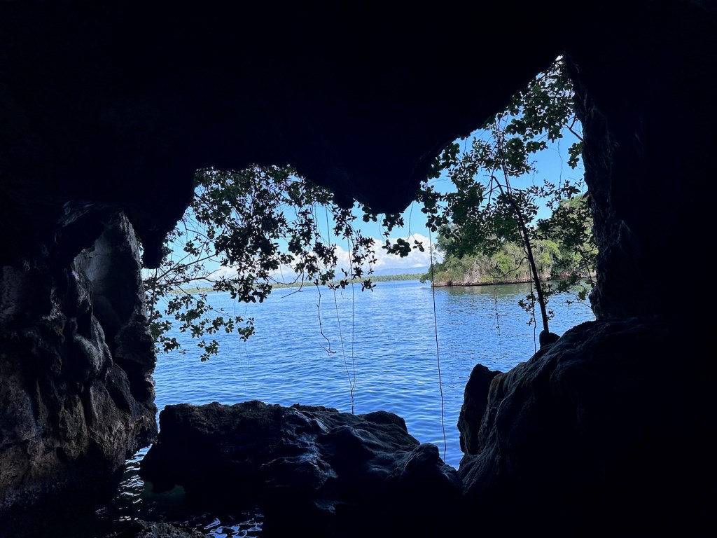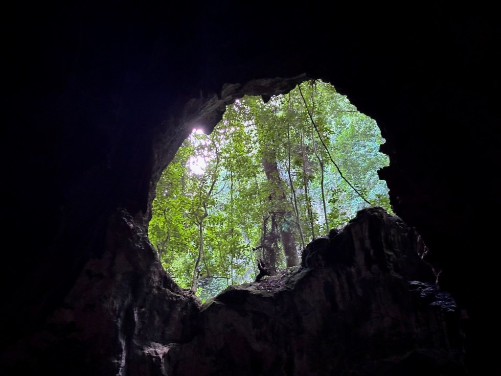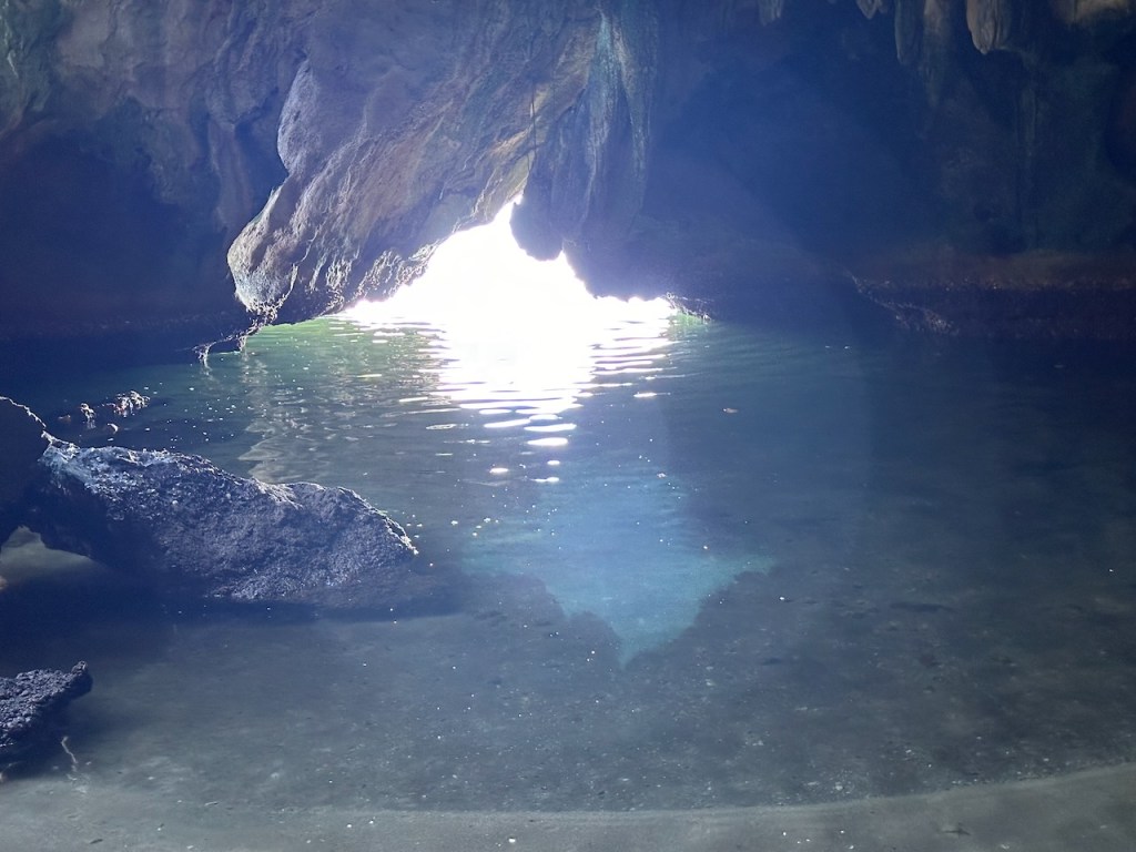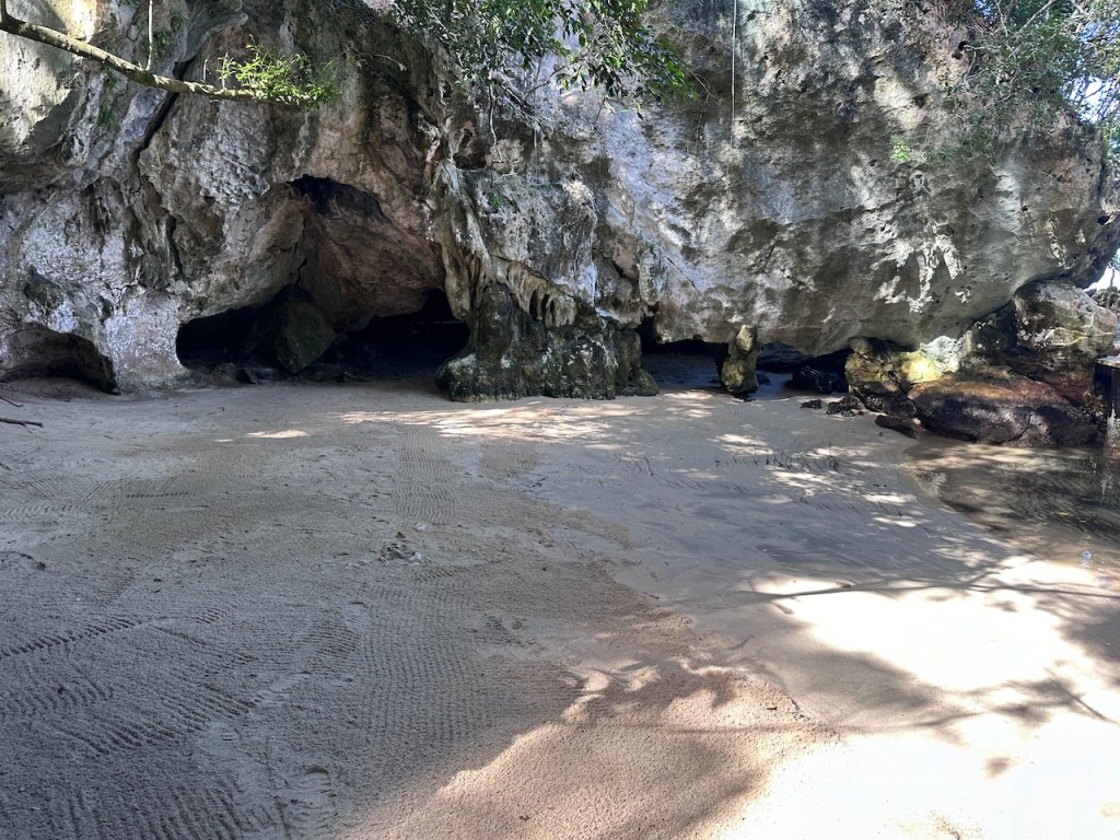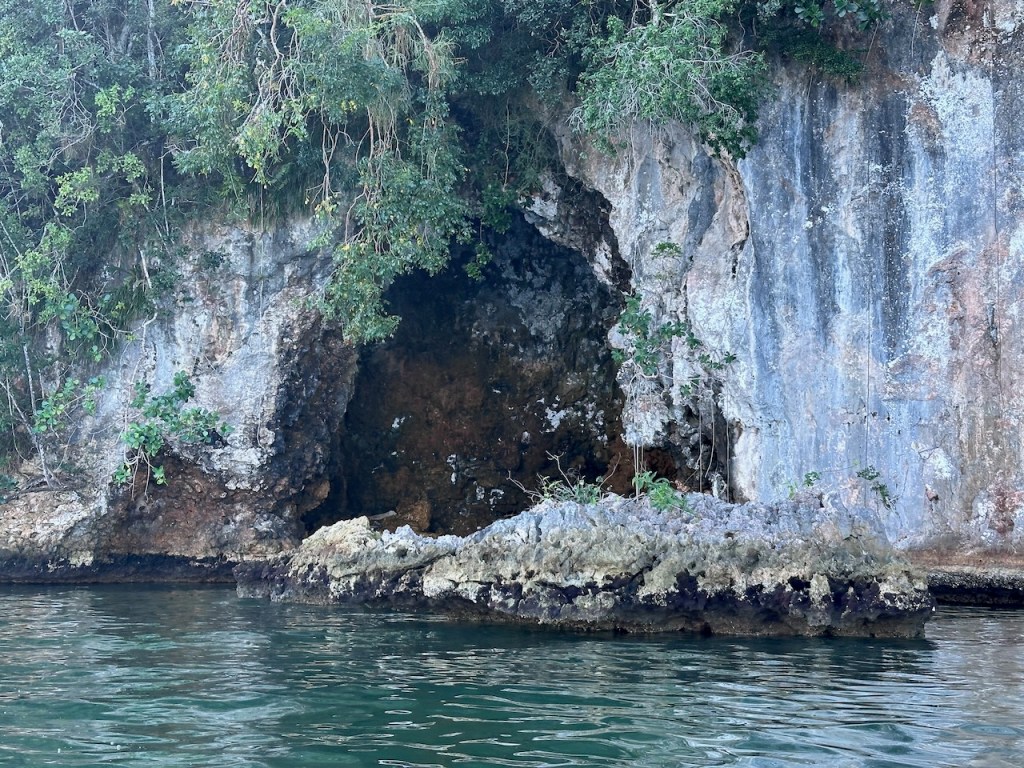 the hidden beach, even though somehow with the dock it doesn’t give the impression of a special beachI should have taken a pic from the seaside it did look super cosythe entrance of the cavethis little fellow didn’t dare to come out completely, we were far too scraryone of the waterfront cavernsthat does look a little like the shape of a bat doesn’t it?ain’t that pulchritudinous? 😁El Capitano – the wild man
