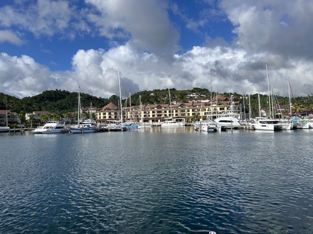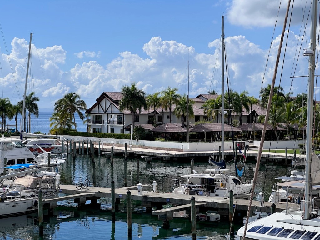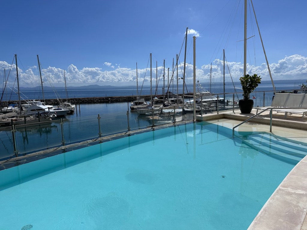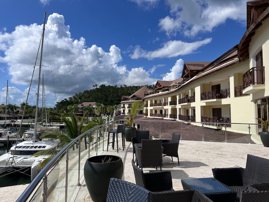 the entrance area of the marina Puerto Bahia Samanáthe hotel in the backone of the restaurantsthe infinity pool at the sea sidethe view from upstairsone terracethe second pool at the first floorthe entrance to the lobby