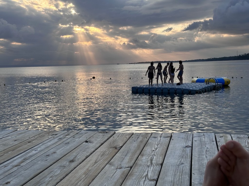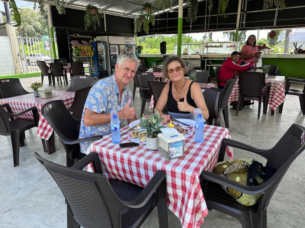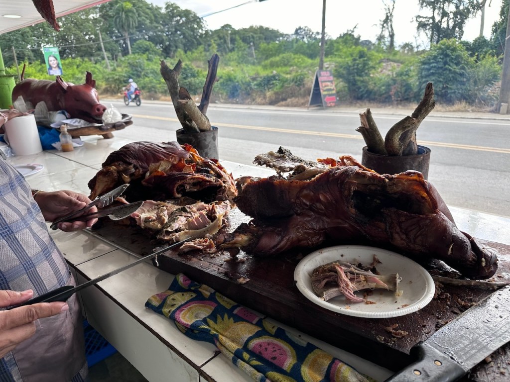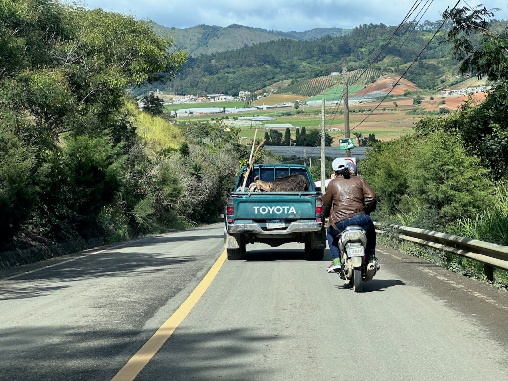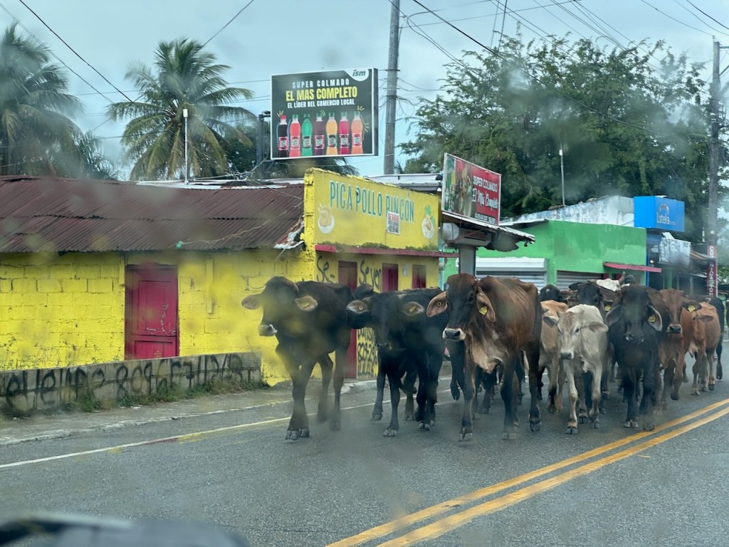 horses everywhereand sometimes they were right next to the street or a big cattle was grazing next to the streetso many fields the comfortable roadpassing a small villagea church in Constanzawe had lunch at this barParque municipal de Constanzawe tried a typical DR dish ” Mofongo”, it was made with crispy green plantains mashed with garlic, olive oil, and pork rinds, I must say it was not my favourite dishonce again our airbnbjust a few steps away was a small pondI saw some hollyhocks , so prettyand wild strawberries?I was walking around our accommodation and this house was kind of hiding in the woodsthe beautiful backyard with the probably very cool creekafter shopping we stopped at an as well very typical road stop and had super yammi sucklingit was served with plantains and yucca much too muchwell every corner in our little car was filled with groceriesand back at the marina we needed 2 hours to store everything away🙈😂