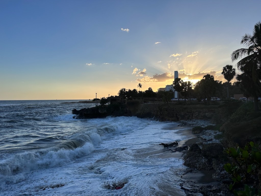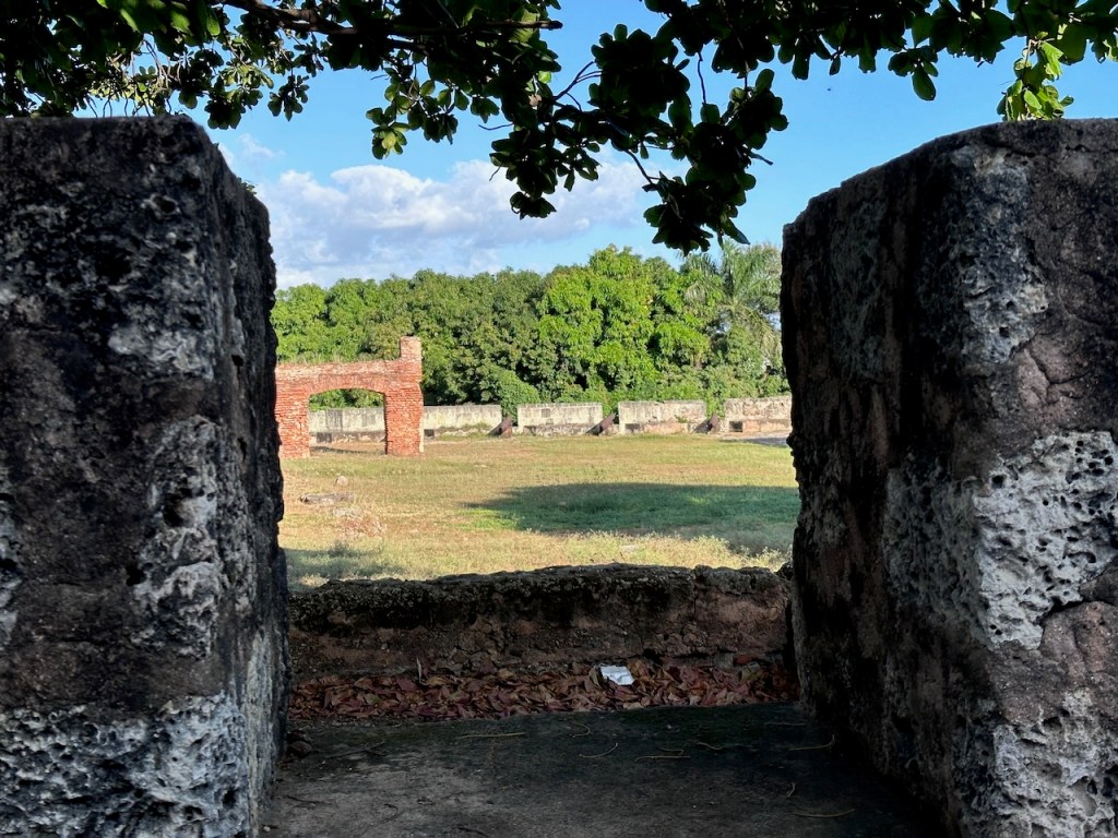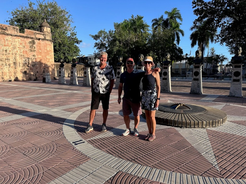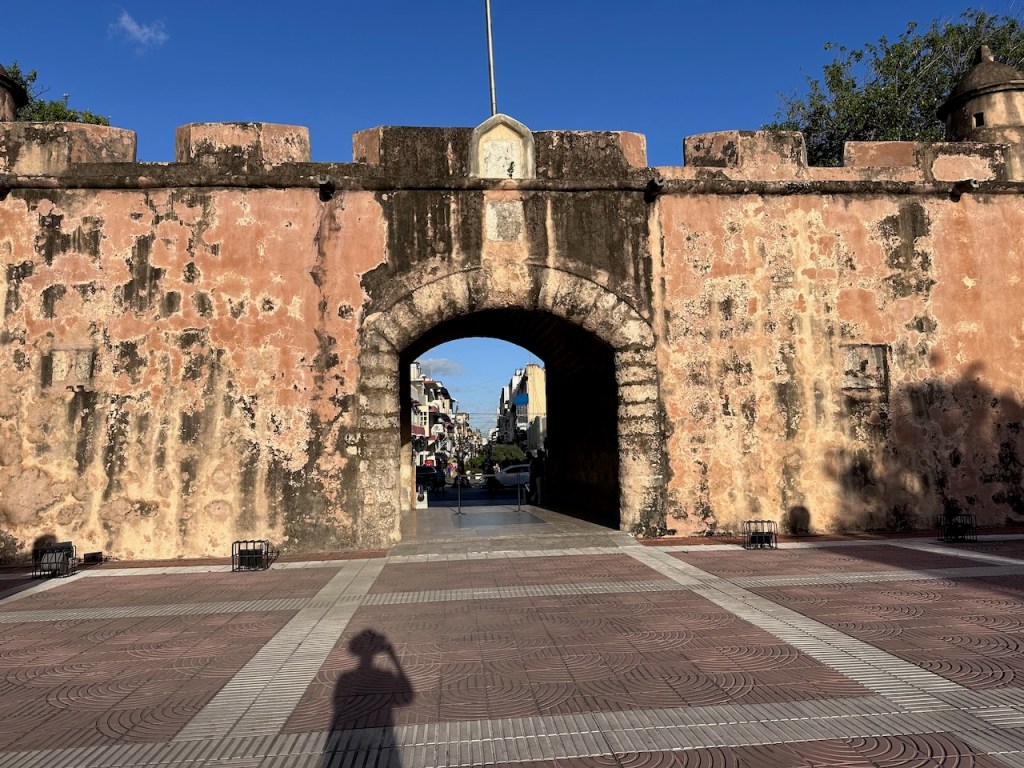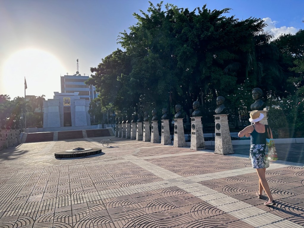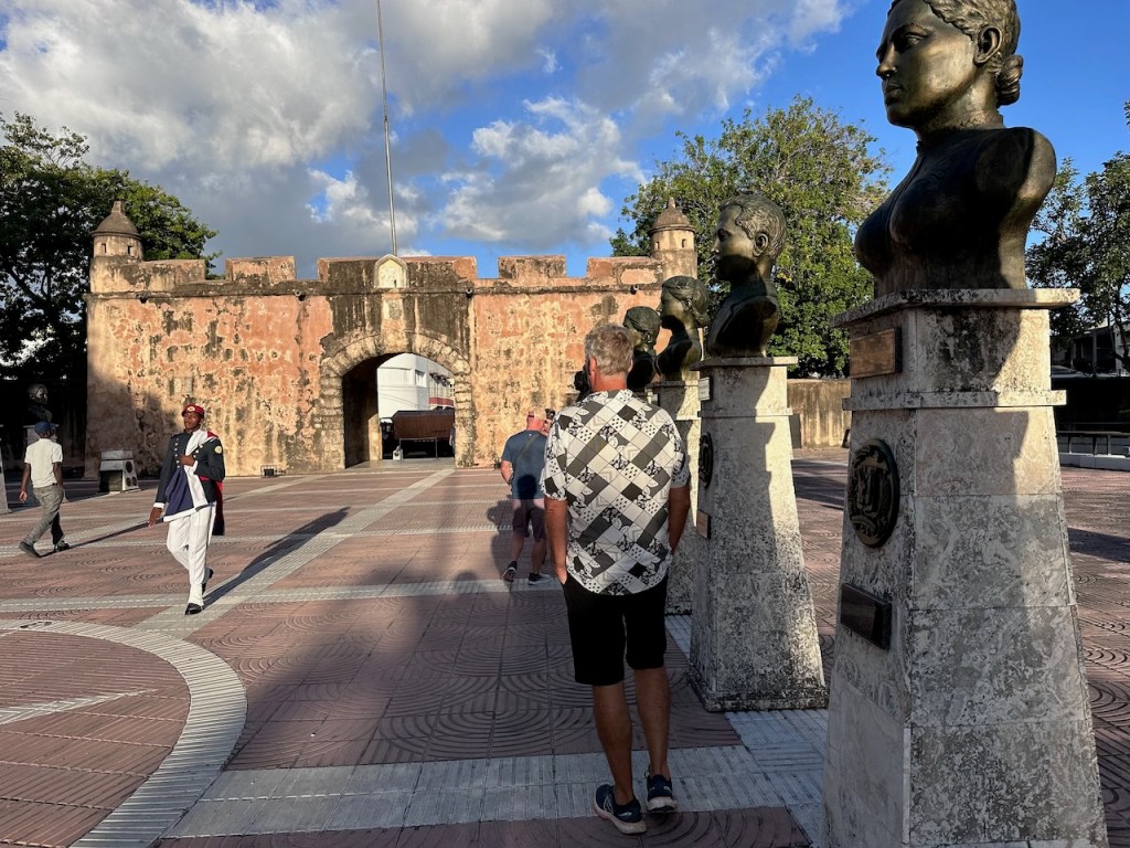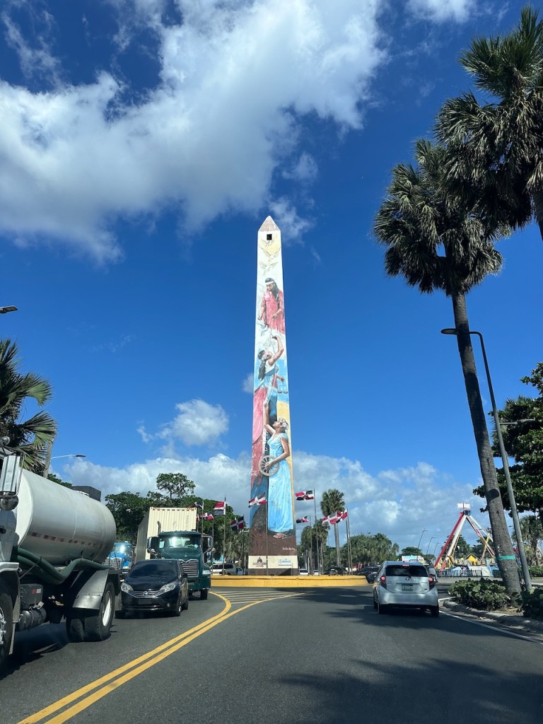so typical DR 😁this hand had to hold the car door so it didn’t open while drivingobelisk in Santo Domingo, it was built in 1936 to commemorate the change of name of the city from Santo Domingo to Ciudad Trujillo, in honor to the dictator who led the country by then. it is one of the few monuments built to praise Trujillo which resisted to the end of the regime. In 1996 it was painted by some Dominican artists. The theme is the Mirabal sisters, famous by their resistance to the dictatorship and killed by the regime.checking out where to start to explore the city, El Capitano, Mike and Jennjust a pretty houseI think that was close by the Ozamar Fortaleza somewhere in the historical area, close to Calle Las DamasLa Fortalezaa part of the wallParque Independenciathe gate of the ParcNorbert, Mike and Jenn 5:30 pm flag parade, the guys were taking down the flags all at the same time and folding them in a special waya sad looking cemetery some muralswalk side along the watercouldn’t figure out what that wasit looks nice on the pic but the water was not the nicest