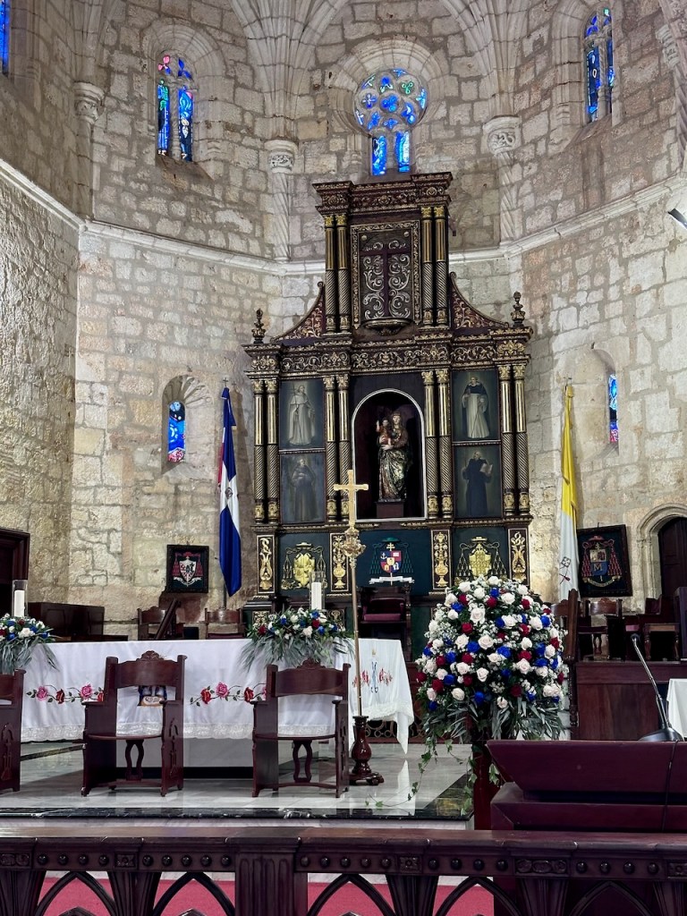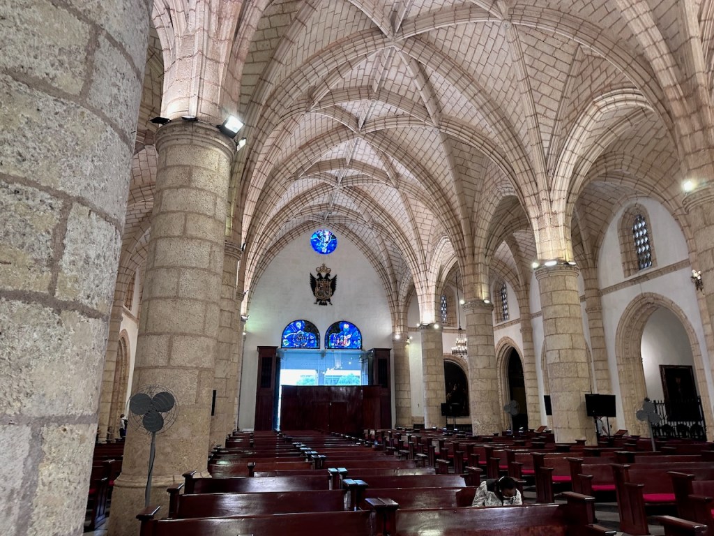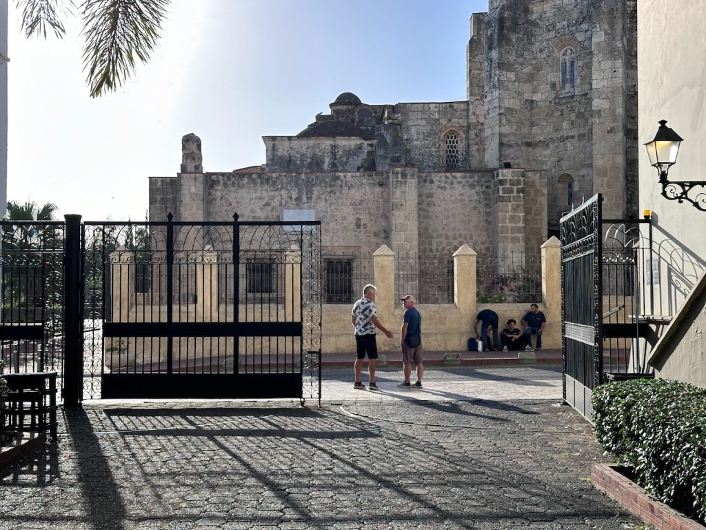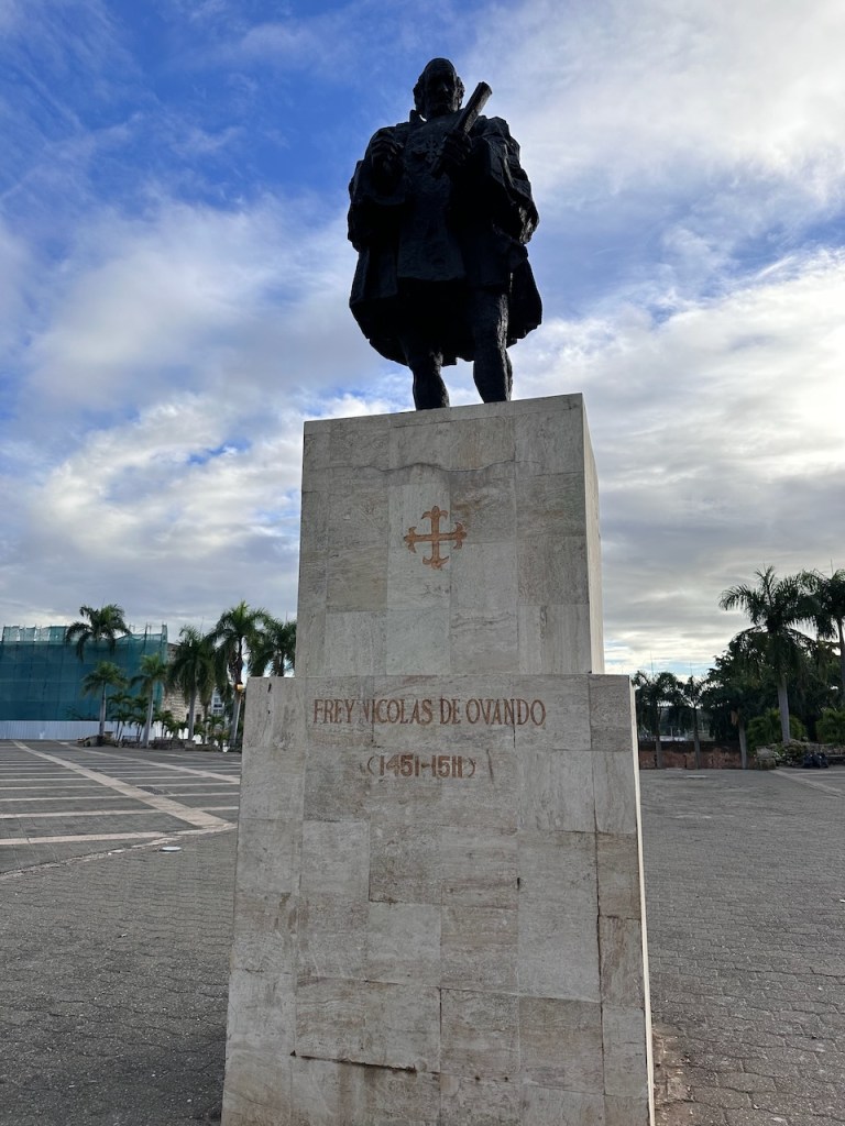 a nice commitment house and car in the same colourno words needed am I right? so funny!we started the guided tour here at Plaza España, Nicolás de Ovando was a Spanish soldier from a noble family and a knight of the Order of Alcántara. He was governor of Hispaniola from 1502 until 1509.not far from Plaza España La marina Punto Italia in the river Ozamacouldn’t find out the name of that plaza and who made the sculptures Catedral Primada de Américathe front side of the cathedralI just liked the numbersParque Colón, the statue of Christopher Columbus in whose honor the square was renamed in 1887. Previously the square was known as Plaza Mayor.ruins of San Nicolás de Baridifficult to see, parrots lived in the holes, there is one sitting outside of a holeruins of San Nicolás de Bari hospital ,”a place of mercy built under a reign of terror, what many consider to be the first hospital of the Americas was constructed in 1503-1508 by order of Nicolas de Ovando, Spanish soldier, knight, and Governor of the Indies”Calle las Mecedes with its colourful housescan’t remember just another ruinMuseo de la Policía Nacionalmore ruinsa pretty streetaccording to wikipedia: the Cathedral of Santa María la Menor in the Colonial City of SD was dedicated to St. Mary of the Incarnation. It is the first and oldest cathedral in the Americas, begun in 1504 and was completed in 1550. It is the cathedral of the Archbishop of SD who has the honorary title of Primate of the Indies because this cathedral was the first diocese and the oldest cathedral established in the New World.I liked the ceiling in one of the smaller chapels
