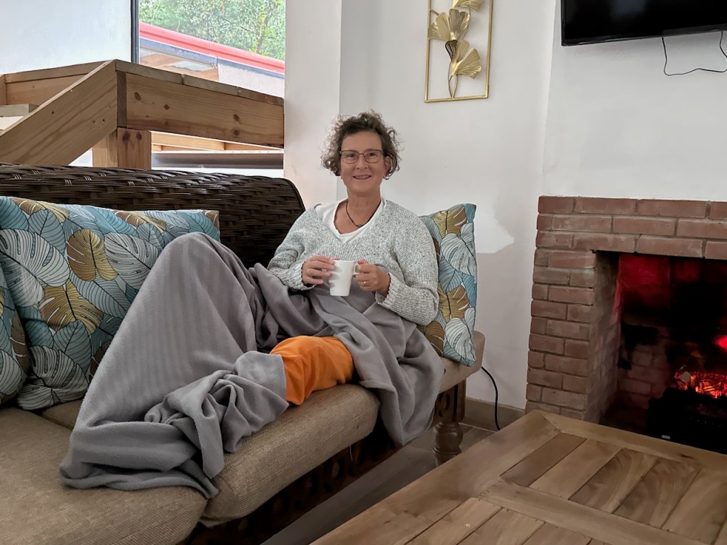 I liked the “flying beer bottles” fog coming up the mountainsgoats on the truck and strawberries!!! Unfortunately they were not as delicious as we hoped for the back yard of our airbnbthe terrace and the heated pool in the backthe fire placecoffee time