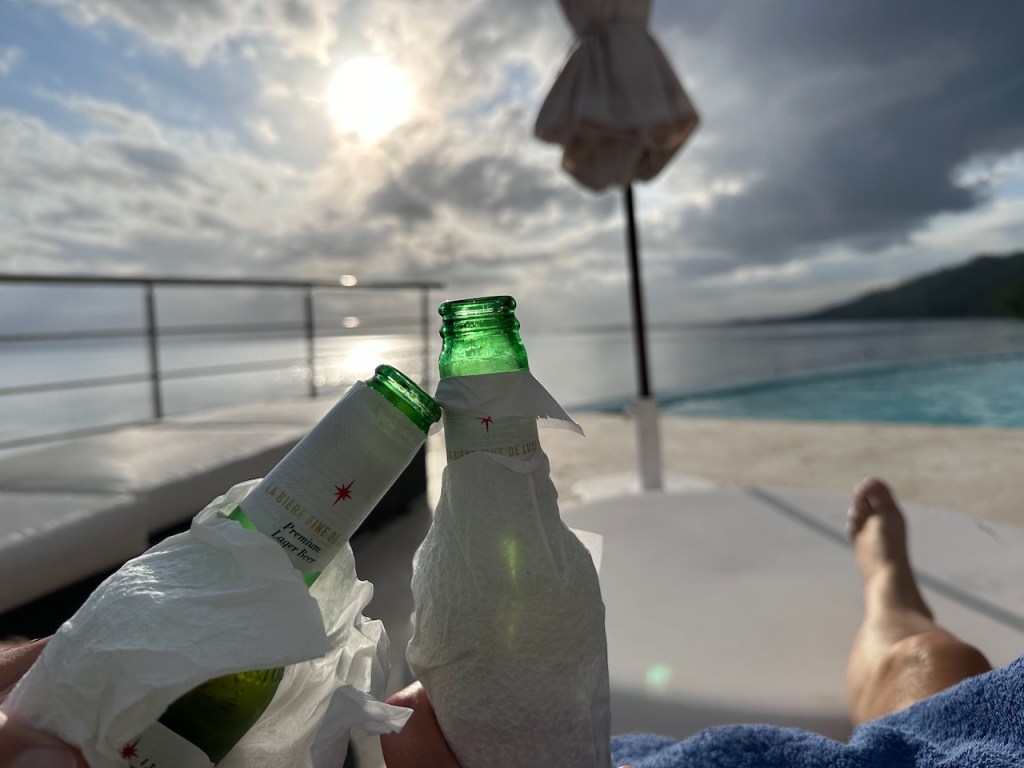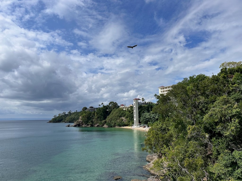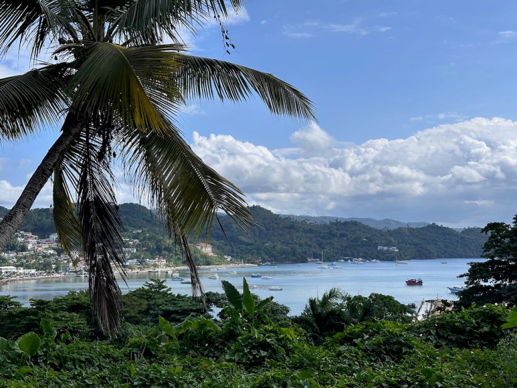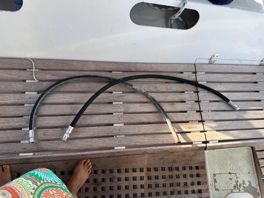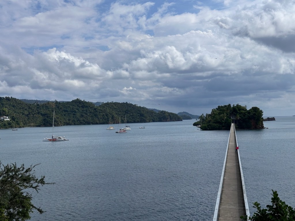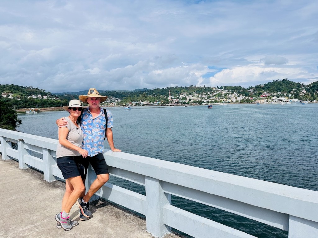 the new and the old hosewhen you need to transfer all your storage from your cellar into your living roomjust fixing the autopilot autopilot was working so we allowed us a free day to walk to Samaná town through the woods along the coastlinethey were wondering what we were doing in their territoryafter about an hour we arrived at the bay of Santa Barbaraplaya Cayacoathe white tower was an elevator for the hotel guests to easy reach the elevated hotel areathe anchorage where we arrived first in Samaná and the bridge finally we were on the bridgeafter a loooong walk we needed some relaxing time at the poolsome youngsters were having fun