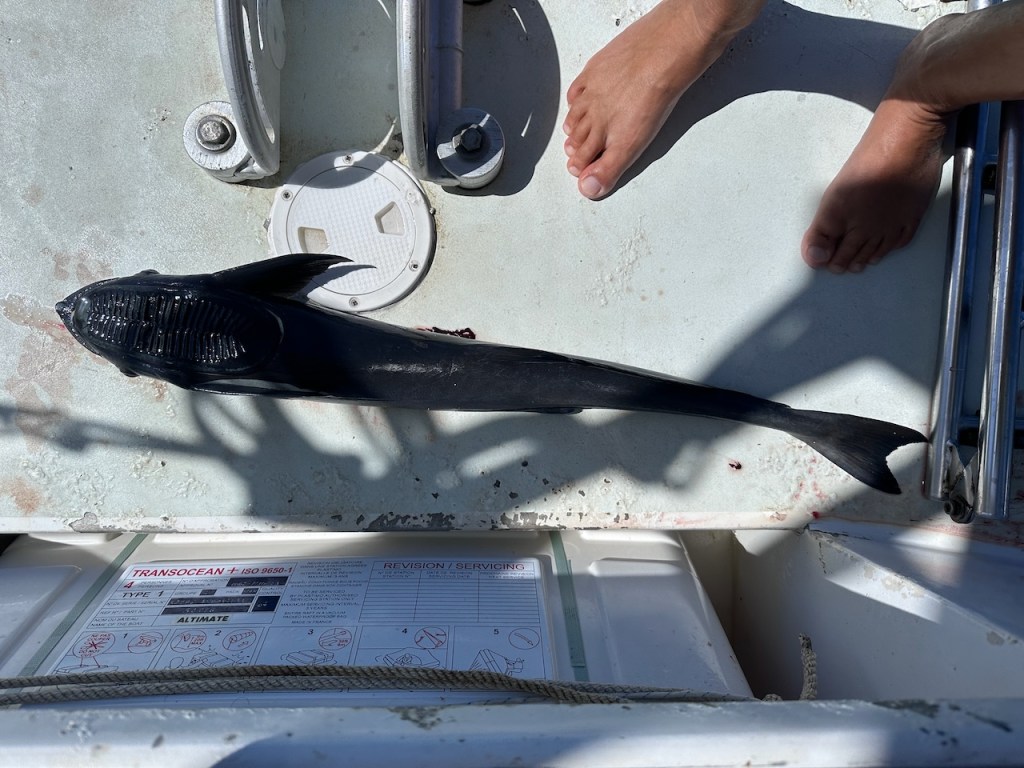 Btw, we also learned that conch meat is excellent for fishing with a hand line. The fish were crazy about conch meat. Within only minutes we caught fish for dinner. One day I even pulled a remora out of the water. Remoras are slender fish which like to hitchhike preferably on sharks, whales and dolphins. Thanks to their soft rays on their flat head which act like a suction cup they can easily dock to bigger animals. Kind of fascinating! And yes, fishing was easy.