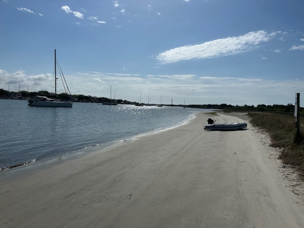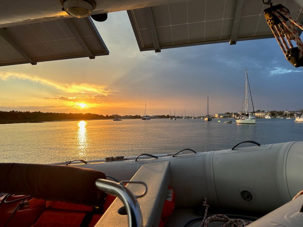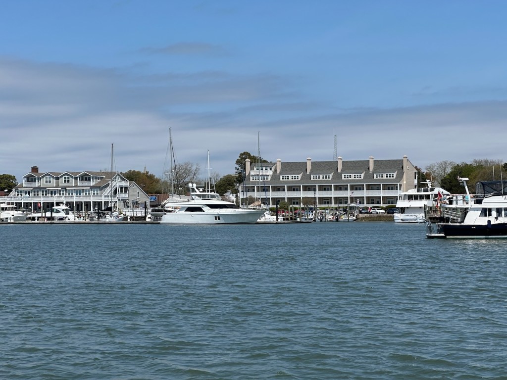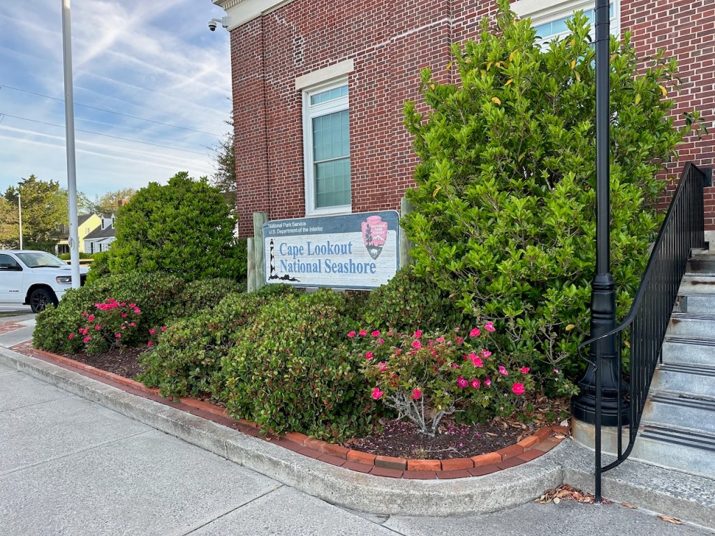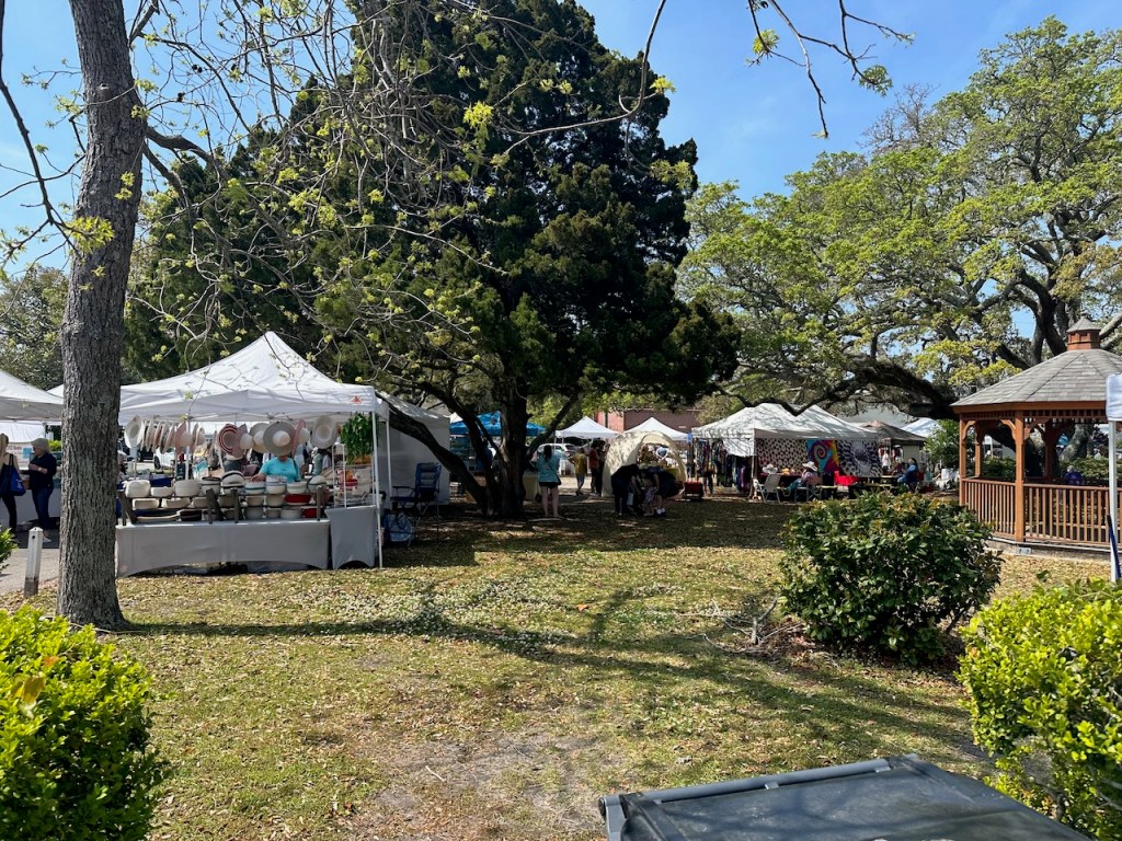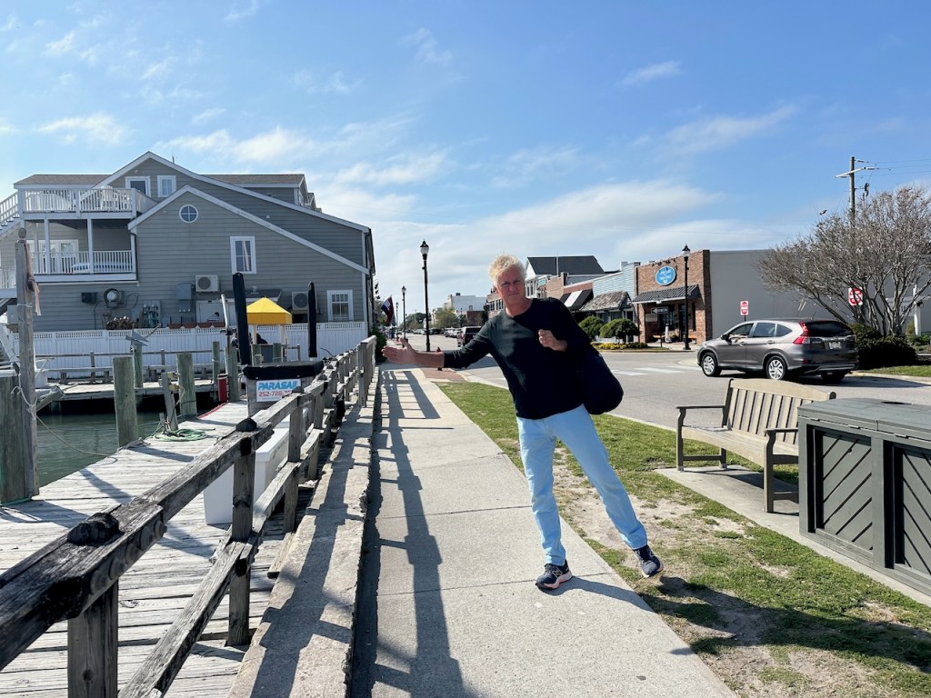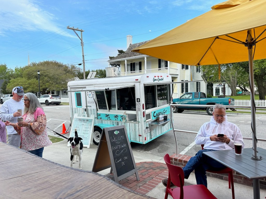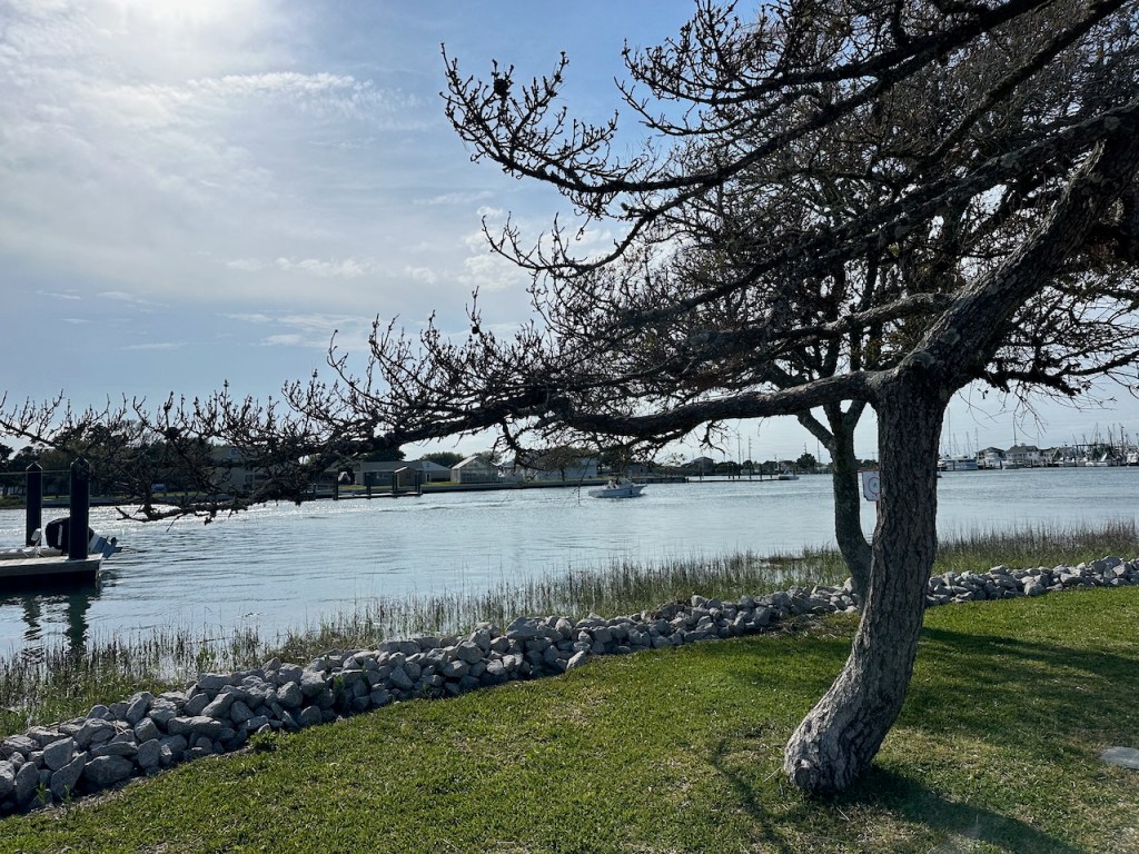 just before turning into Taylor creek where we anchored the wild horses of Carrot island were greeting usTaylor Creek and Front Street Beaufortour anchorage in Beaufortnext to the round roof was the free public dinghy dock, so very convenient ; Altimate is “on top ” of the three people in the back of the pic; so the commute to town was about a minutesomewhere along Front street it was so nice being strolling along the pretty waterfronteverywhere flowershuge housesmany private docks the northwest end of Front streetjust a pretty small garden in between houseshere we had our first beer and some tacos from the truck