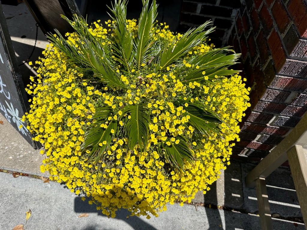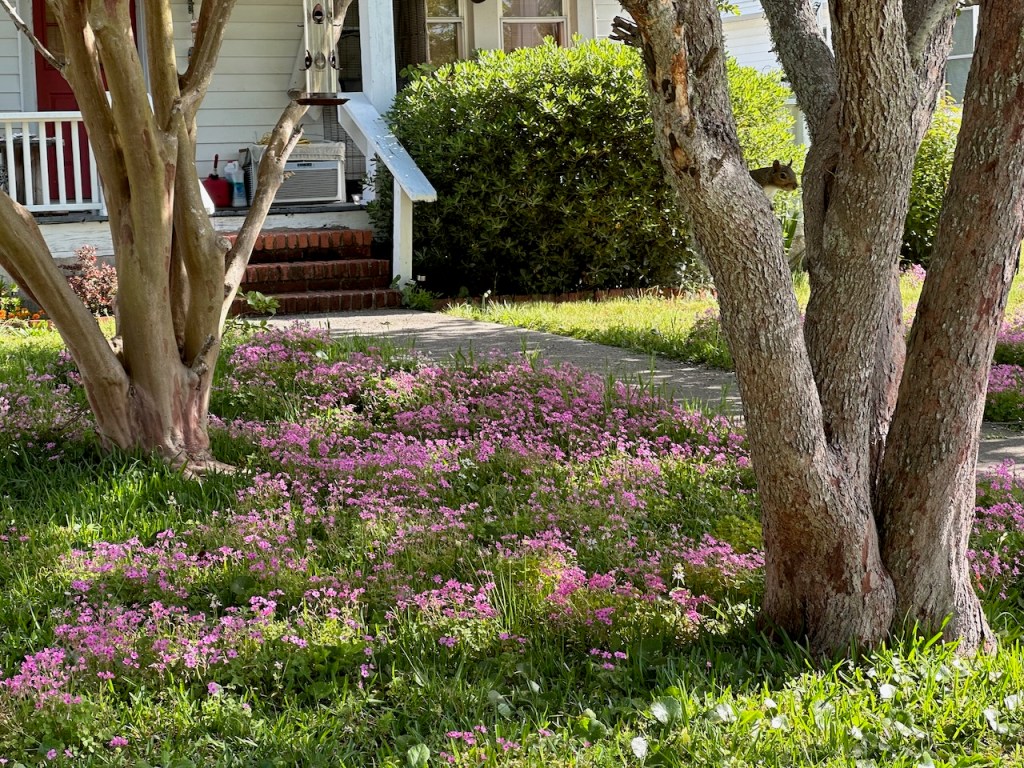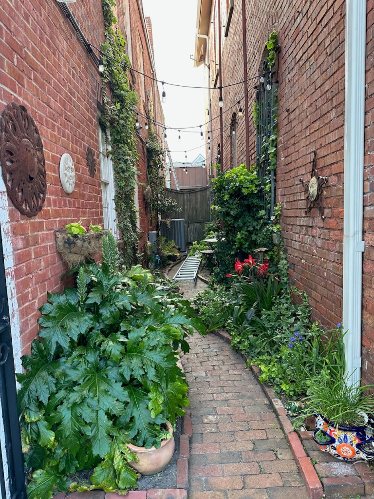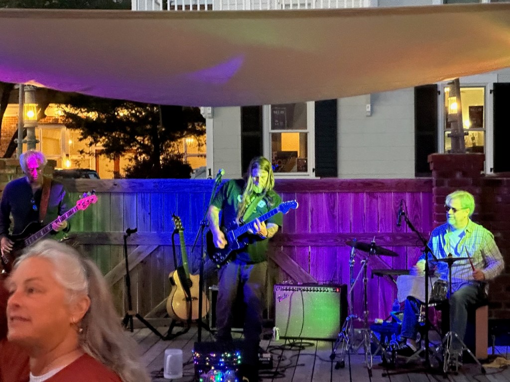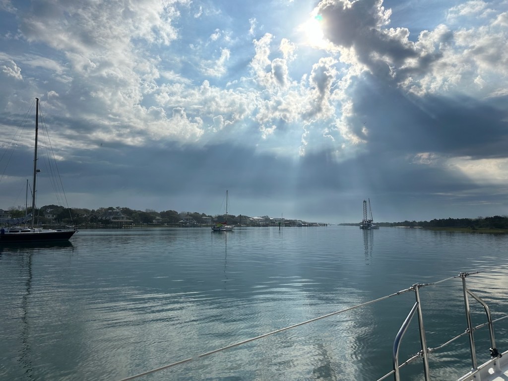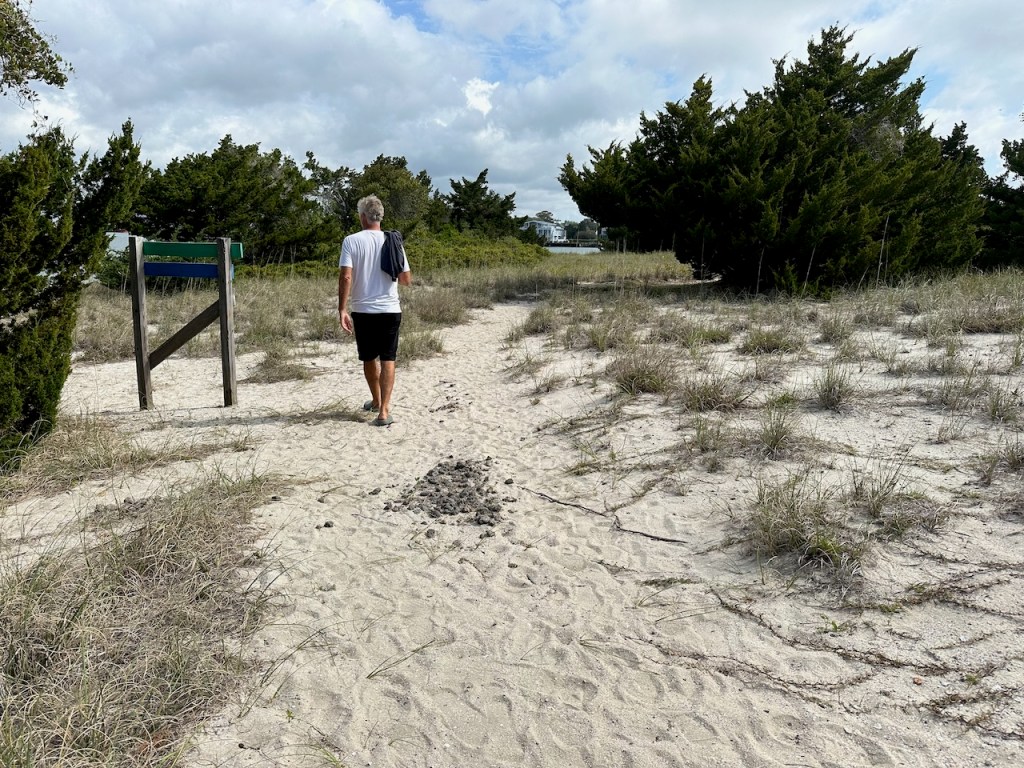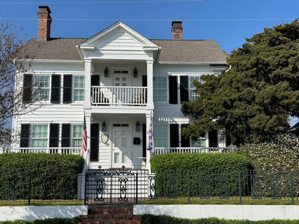 just before turning into Taylor creek where we anchored the wild horses of Carrot island were greeting usTaylor Creek and Front Street Beaufortour anchorage in Beaufortnext to the round roof was the free public dinghy dock, so very convenient ; Altimate is “on top ” of the three people in the back of the pic; so the commute to town was about a minutesomewhere along Front street it was so nice being strolling along the pretty waterfronteverywhere flowershuge housesmany private docks the northwest end of Front streetjust a pretty small garden in between houseshere we had our first beer and some tacos from the truck