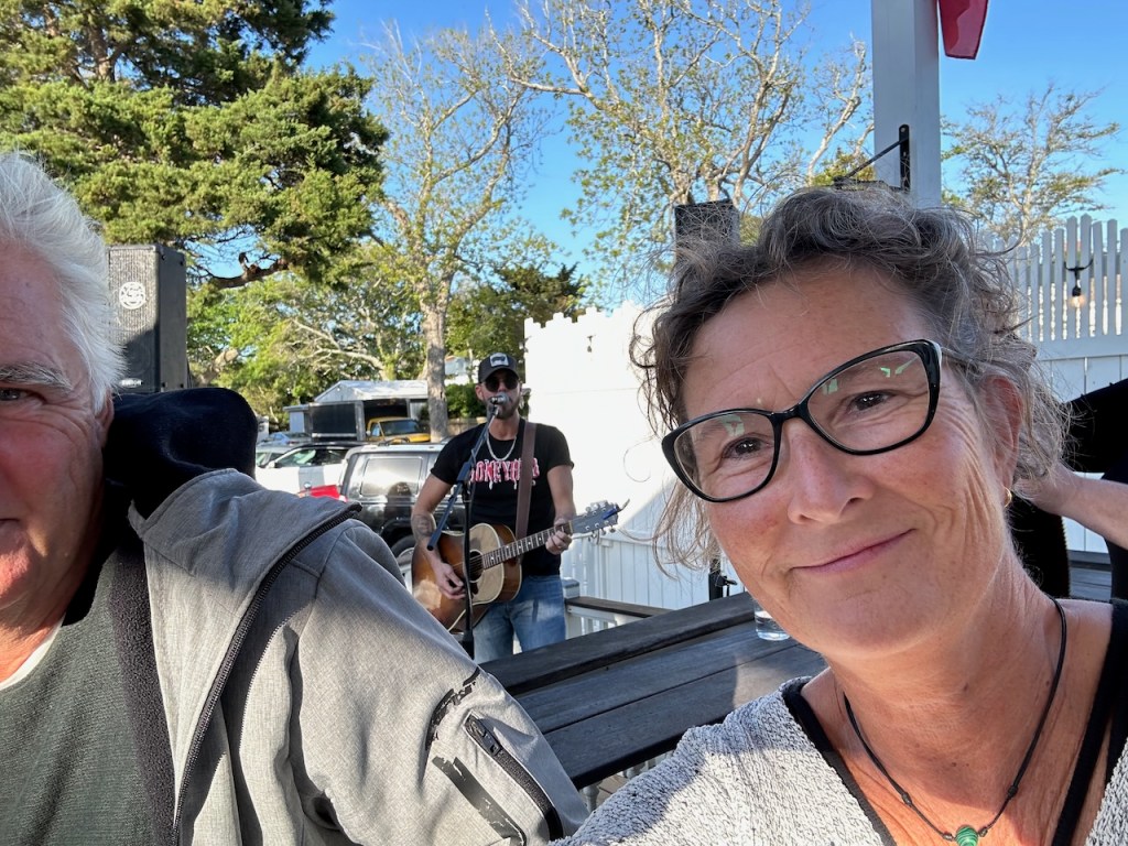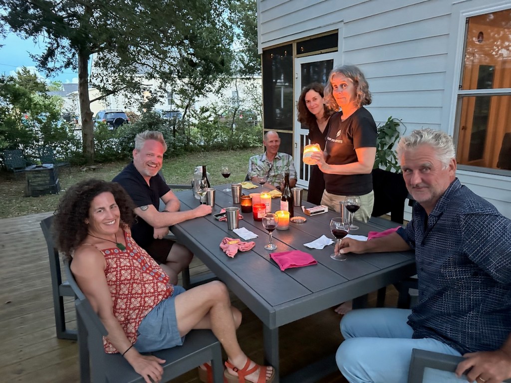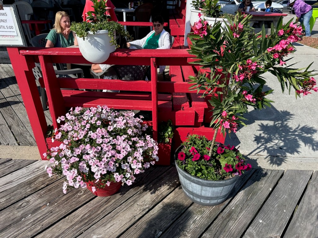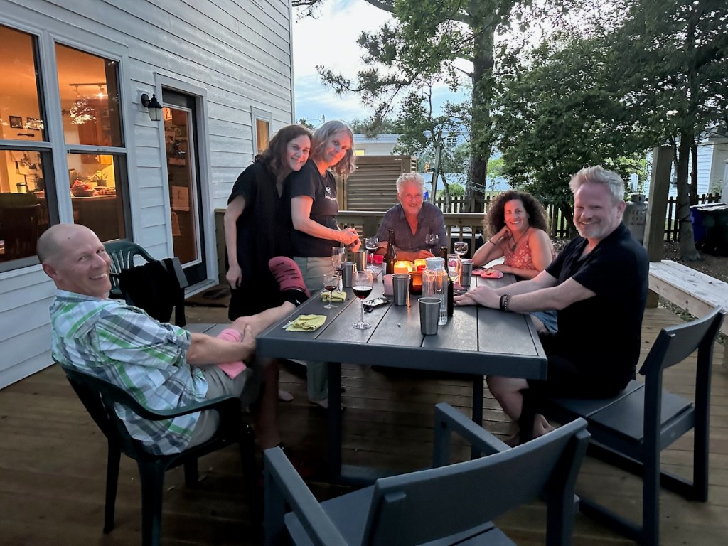 Linda is the bestthat was just another nice sunset going down Taylor creeklinda and El Capitano at Fort Macon State Parkthe three of usflowers at our dinghy dock, isn’t that nice?we were waiting here for Linda to pick us up to play pickle ballsorry about all the cute little flower picsNorbert had picked up Ty Linda and Kellianne and we had such a good time catching upthat was at the wooden boat showaperitif at Lisa and Matthew´s placeMatthew, Linda, Lisa, Norbert, Kellianne and Tyand birthday girl Kellianne