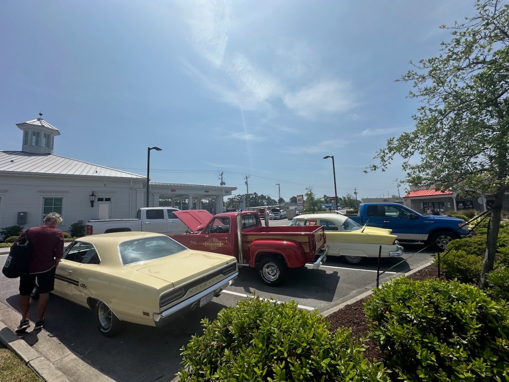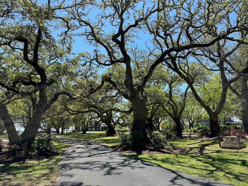 a very old house at the east of Front streetat the very east end of Beaufortfried soft shell crabs and fried oysters, we were at a diner with Dianne the OCC (Ocean Cruising Club) port captain, I have no idea why I didn’t take more fotosthey were still building wooden sailboats, pretty amazingsome old fashioned out board enginesfloweressometimes the horses came to visit us, they were very close, grazing at the swamp areas at low tide, so cooooolanother day out with live musicain´t it all so tidy?the graveyard a fully overgrown housecan it get any greener?
