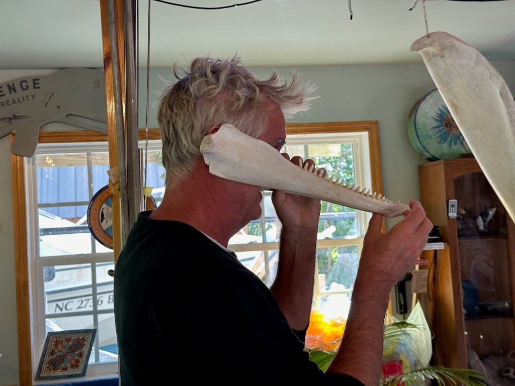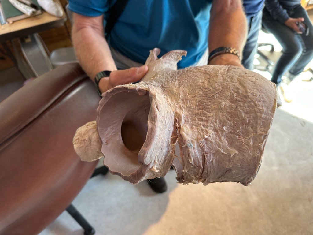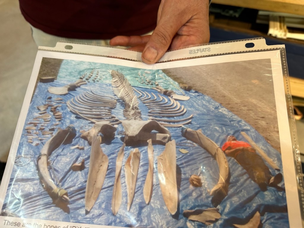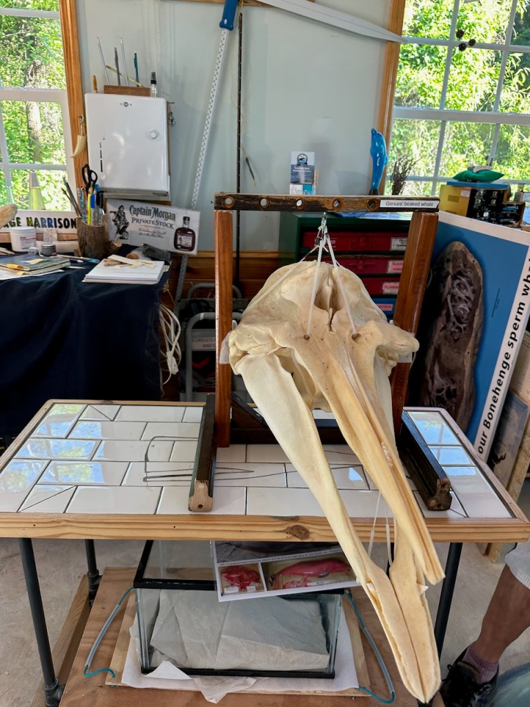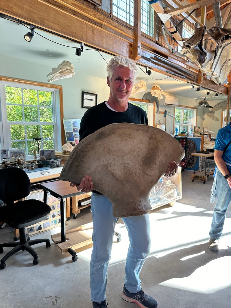 that was super interesting , the whales can hear through their jawbonehere El Capitano could here the sound being amplified through the shape of the bone- (not sure if I described that correctly)can’t remember 🙈These are the bones of “Pitfall”, a 37′ humpback whale that was struck by a ship and died when she was three years old.Her carcass came ashore in Duxbury Beach,Ma October 2001.