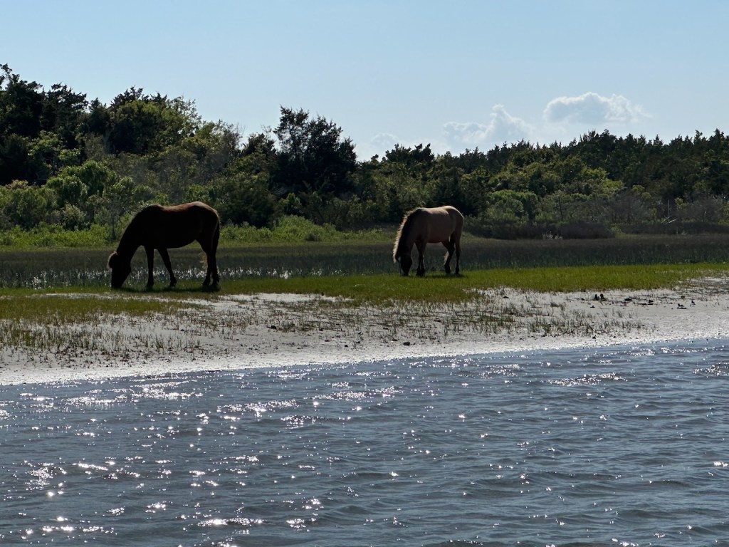 at low tide we went to Carrot Island (where the horses live)the wood looked bit like in Germanythe dune made us feel like being in the NetherlandsI like horsesoysters