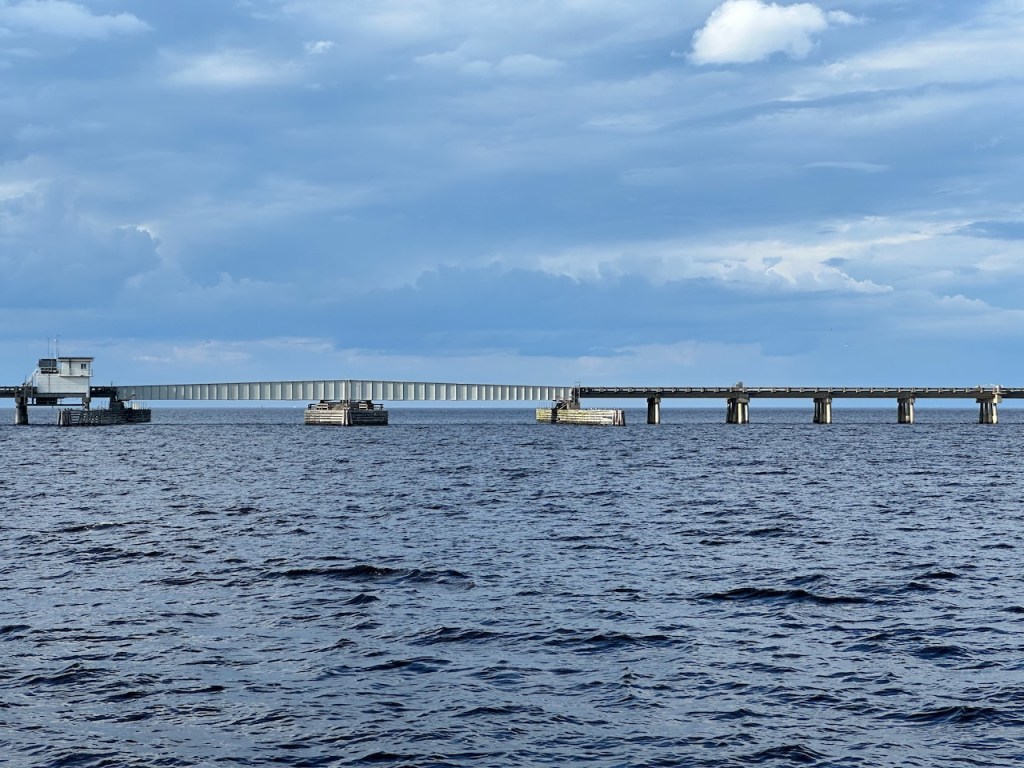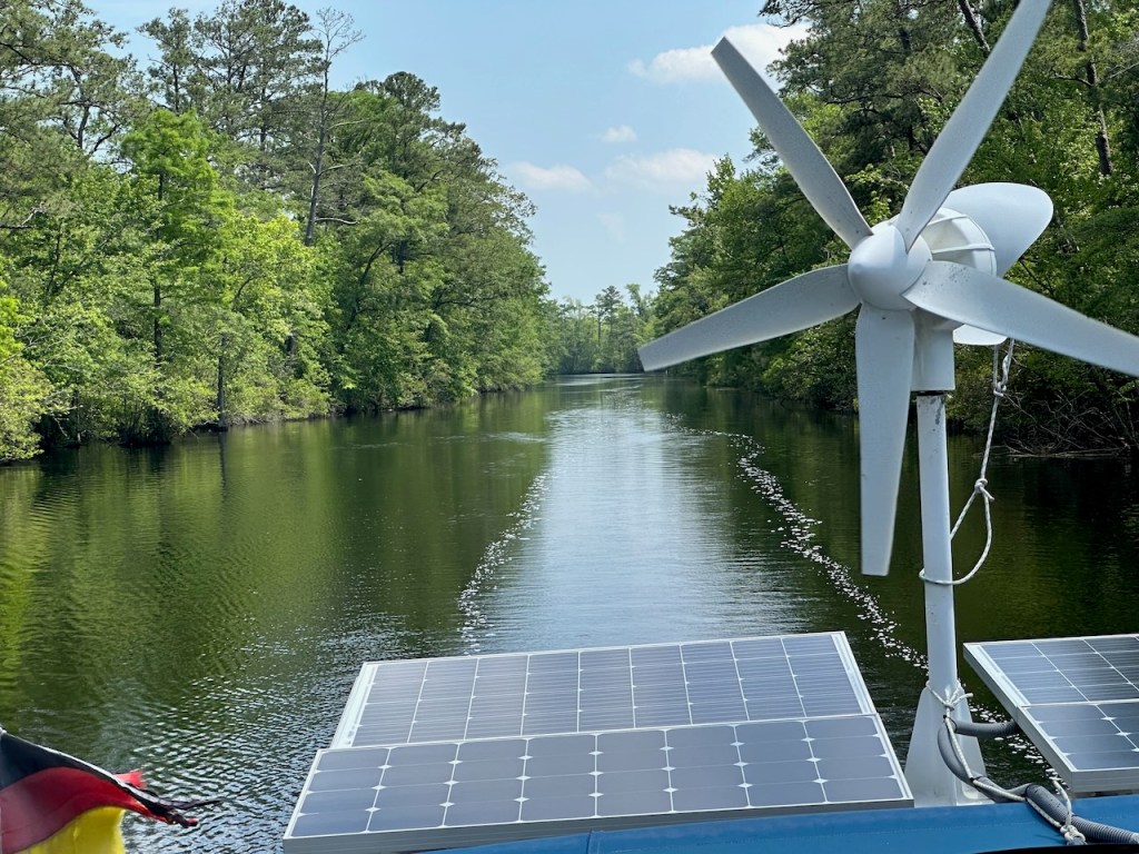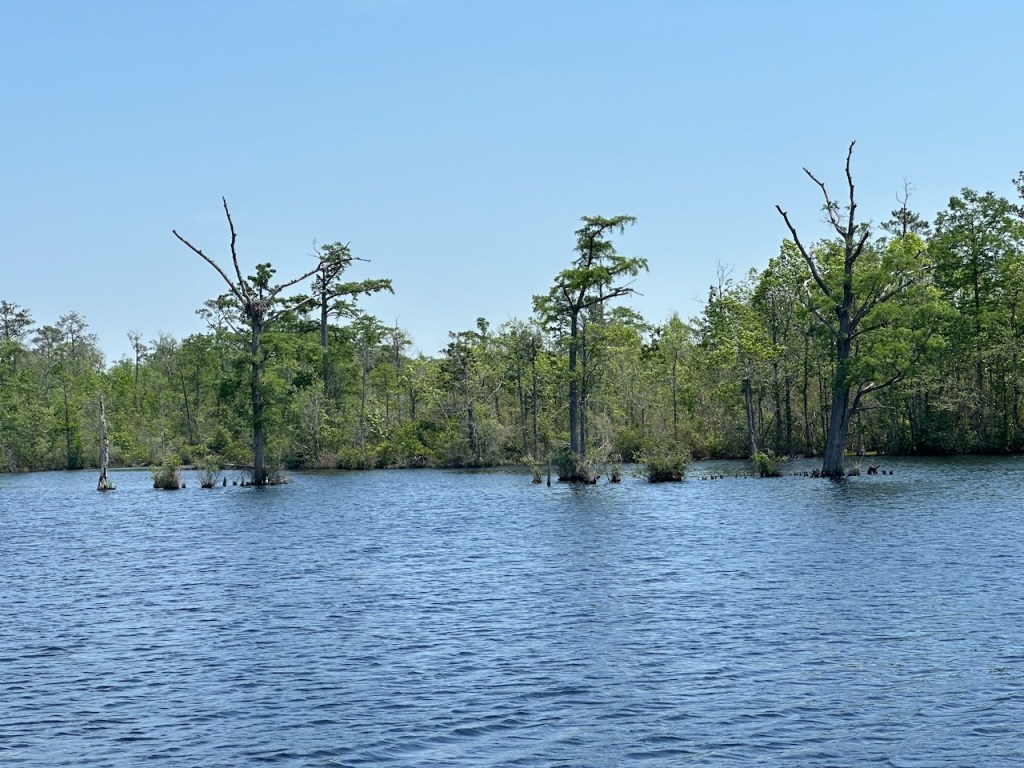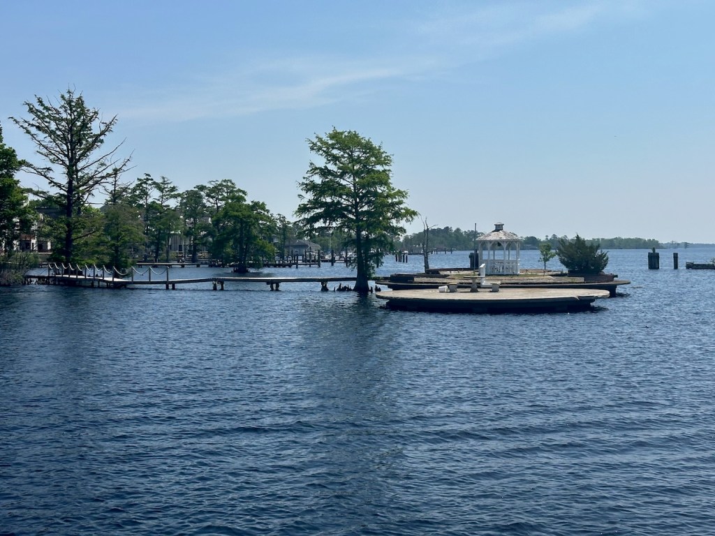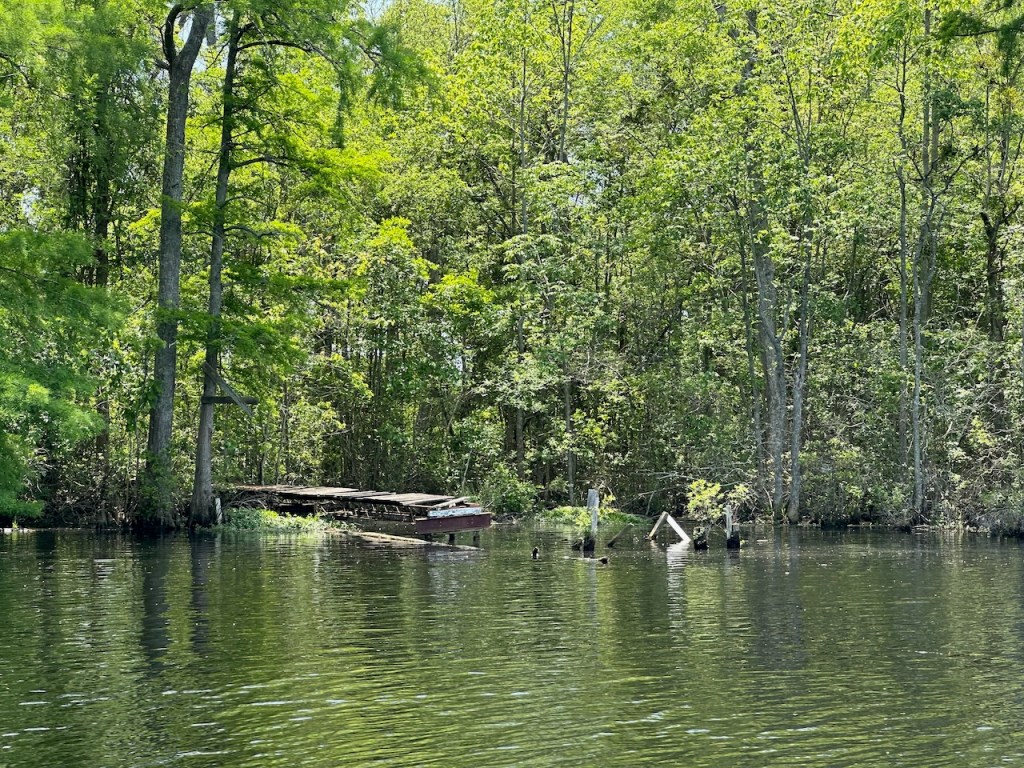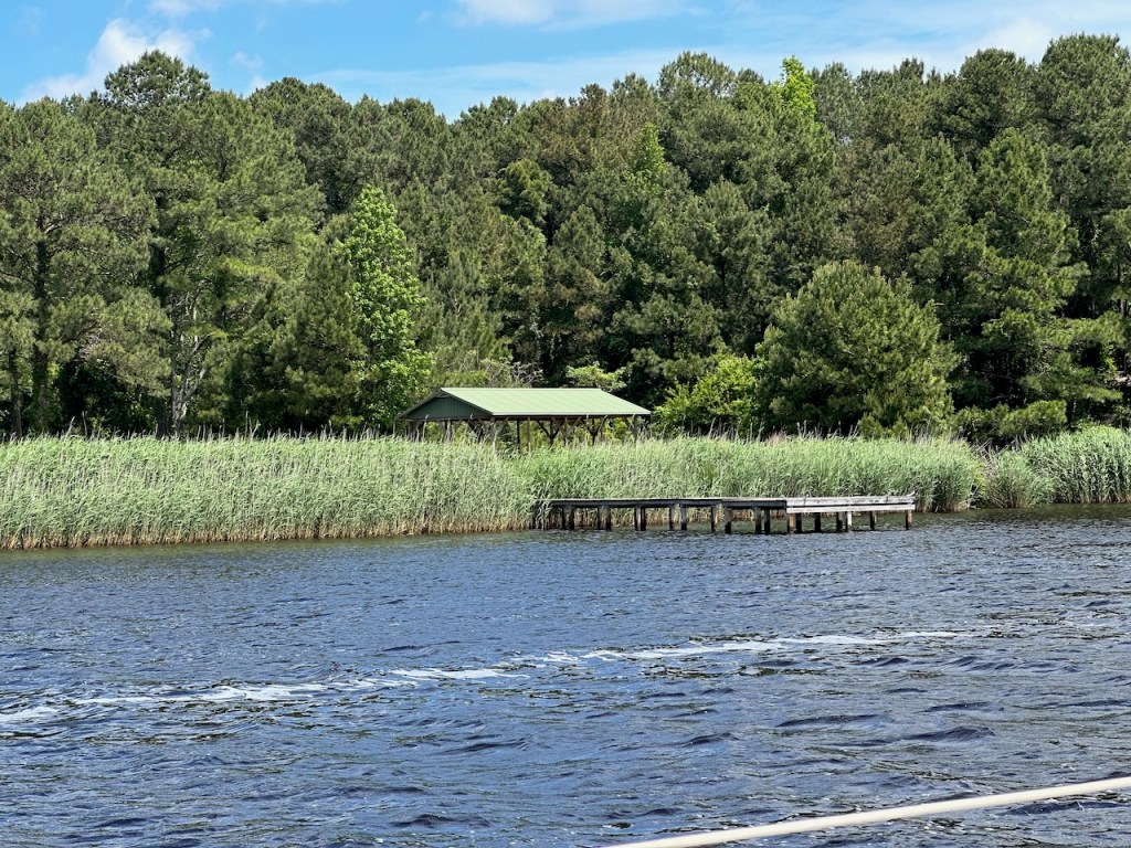 somewhere in the middle of the Albemarie Sound we passed a sunken sailboatPasquotank River, Elizabeth City, Outer Banks, here we passed a hangar for zeppelins , it was also the junction to the Dismal Swamp Canal instead of the other route through the Albermarle and Chesapeake CanalElizabeth CityPasquotank River, Shiloh, right in front of the opening bridge of Elizabeth Citywe just passed through the bridgewe followed the Pasquotank River until we reached the Dismal Swamp Canalthe river meandered through the swamplandhere we just entered the Dismal canal it was a straight long line to followsometimes we passed strange decorationand very seldom housesmost of the time it looked gorgeous like thatSouth Mills lock, we a little early and had to wait for the openingtwo small sailing boats joined us in the lockfirst time since more than 5 years that Altimate was lifted in a lockwater flowed strongly into the lockthe lock master had a chat with the captain behind usand back in the narrower getting canalthis heroin was following us for milesand finally we were docked at the welcome centre of the Dismal Swampthe rest stop