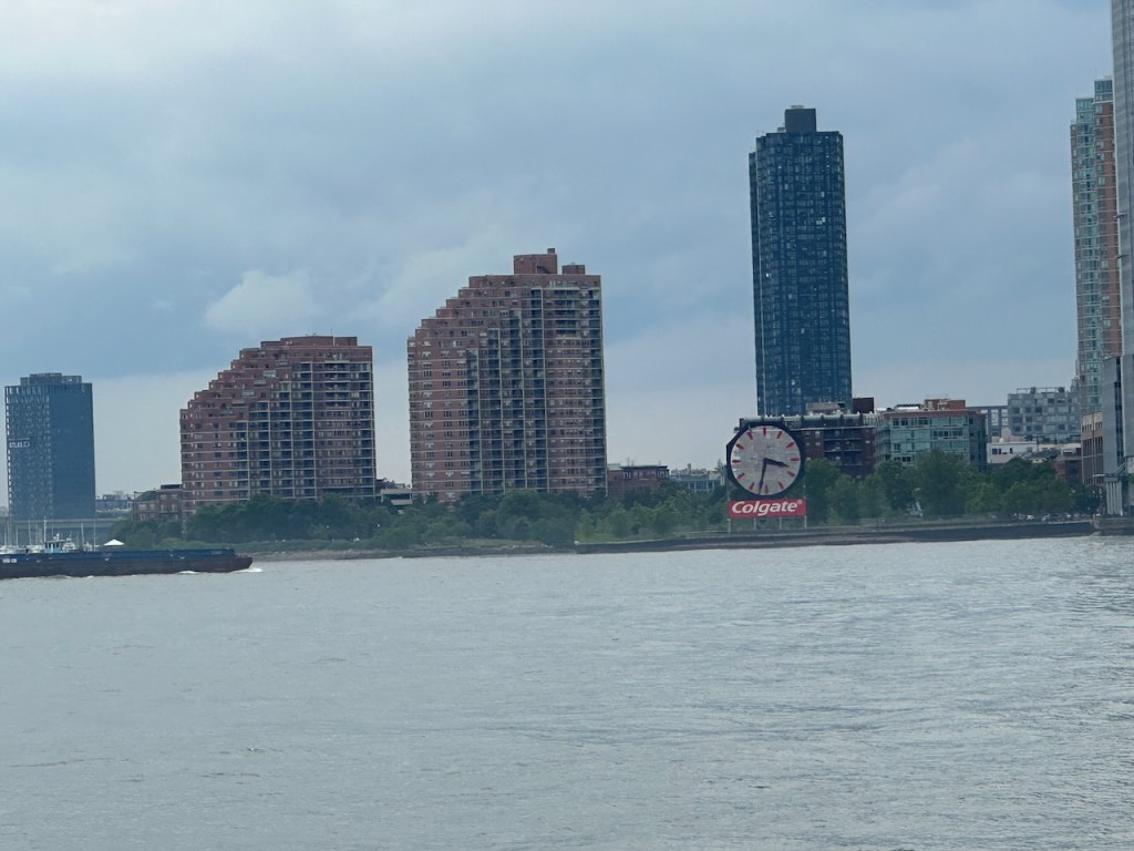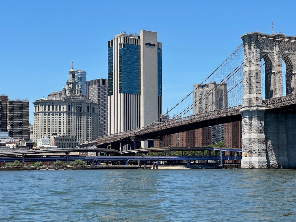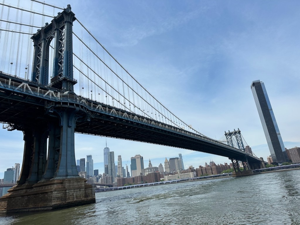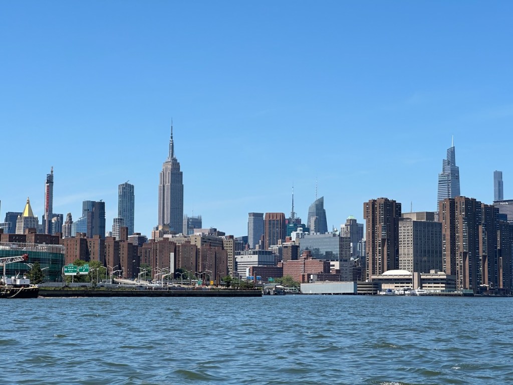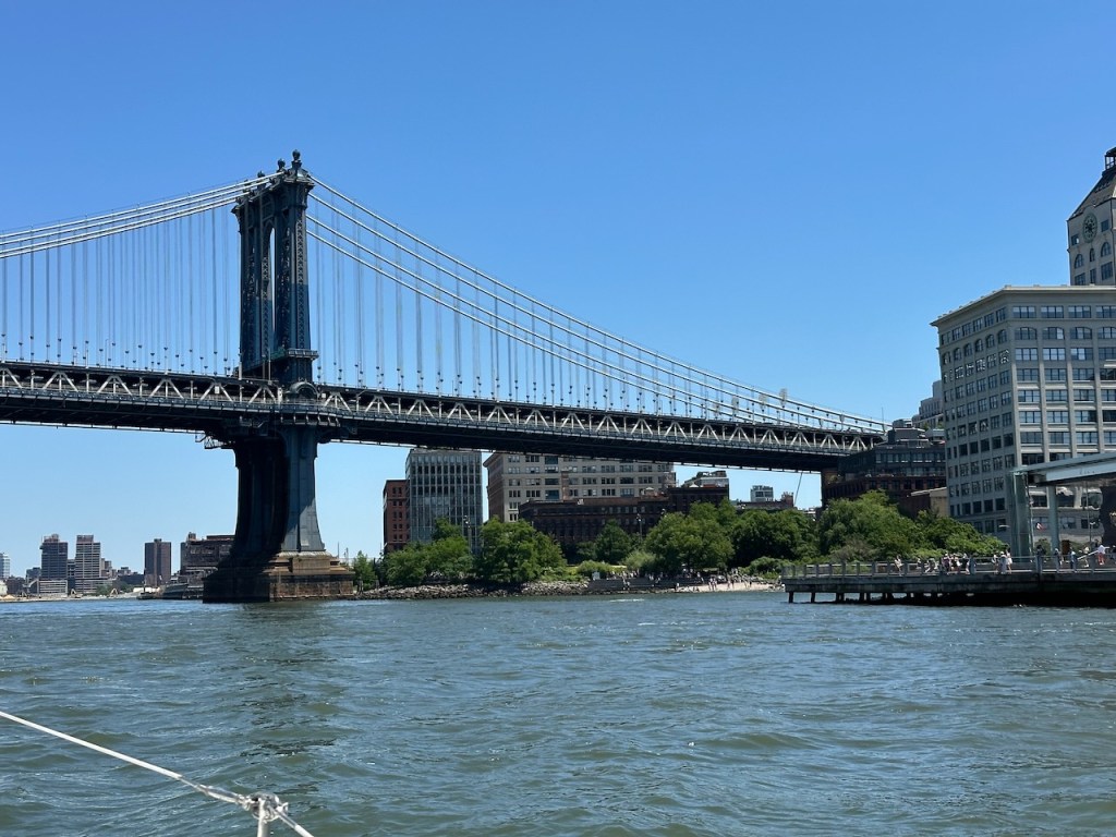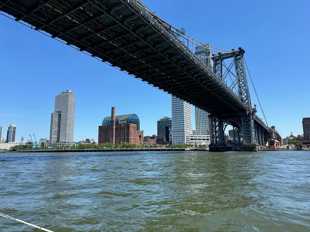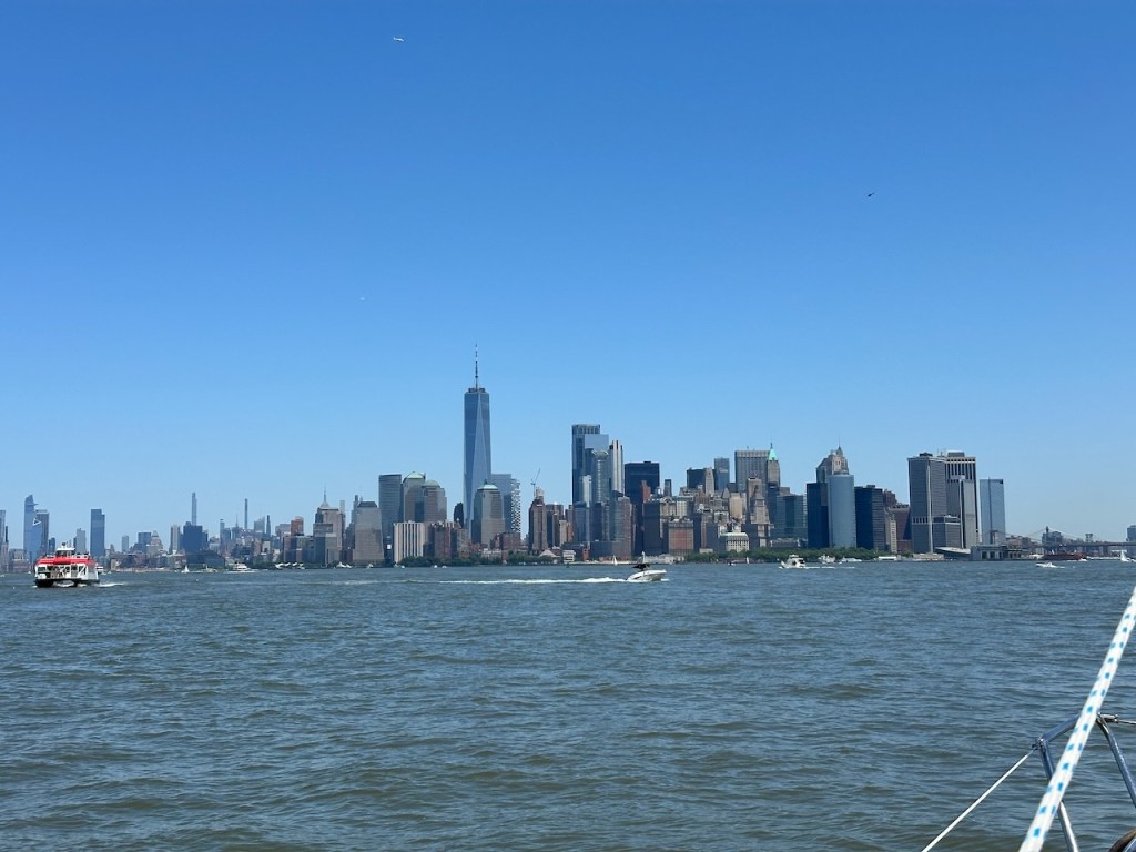 the first pic I took from the famous ladythe background is a bit crooked but we seemed to be straighten upwe were proud!!!the Liberty Lady in all its gloryleaving the Lady and jumping on the magic carpet of the East River passing Manhattan’s skylinereaching Brooklyn BridgeManhatten Bridgepassing Jane’s Carussel at Brooklyn’s East river sideWilliamsburg Bridge and the Domino Sugar building The Empire State Building peeking through the building in front – I don’t know the name of that onevery friendly town