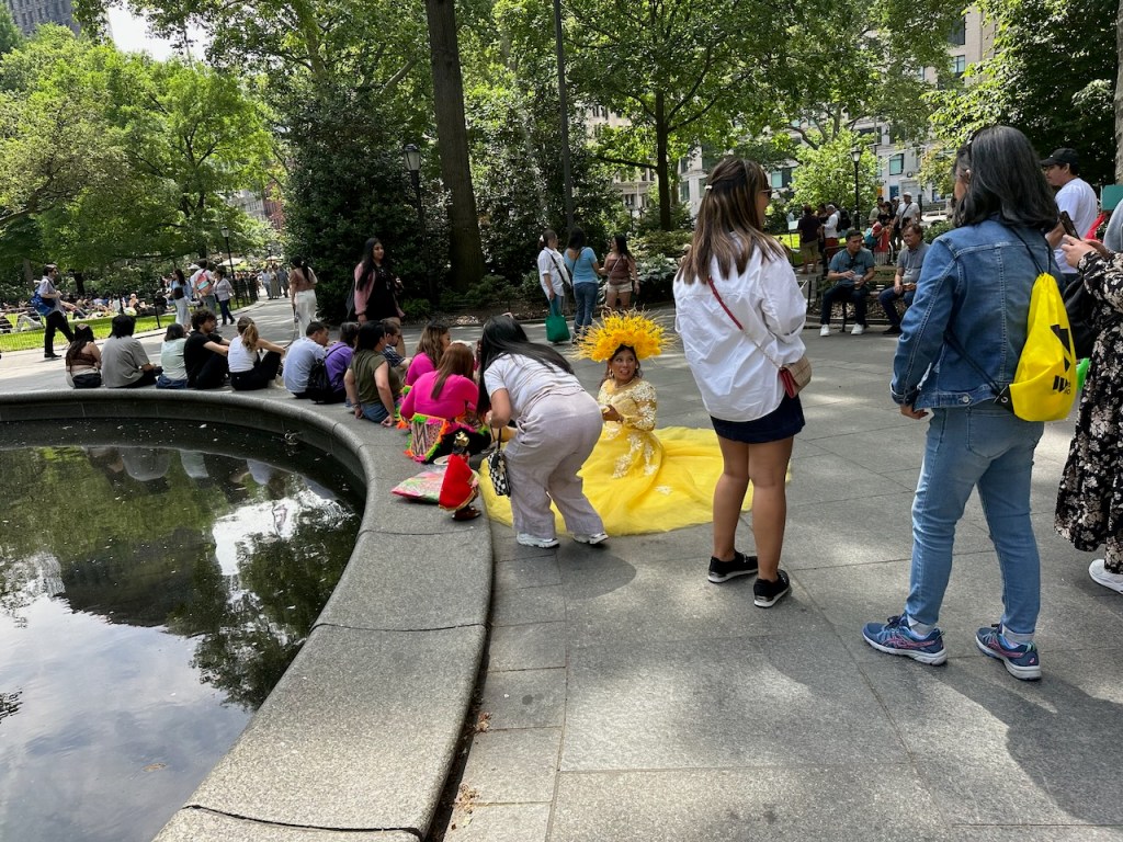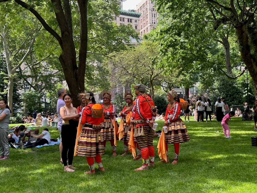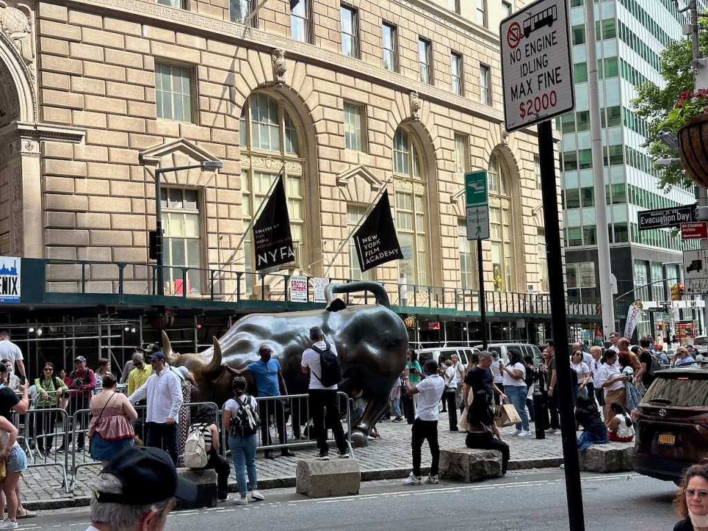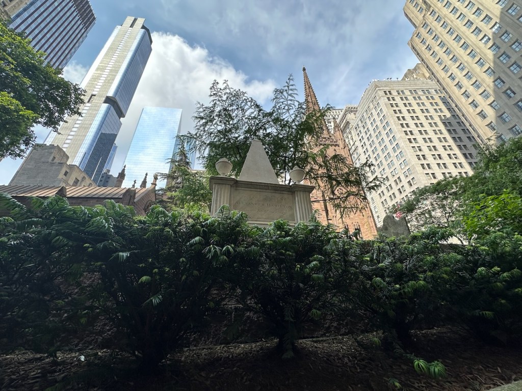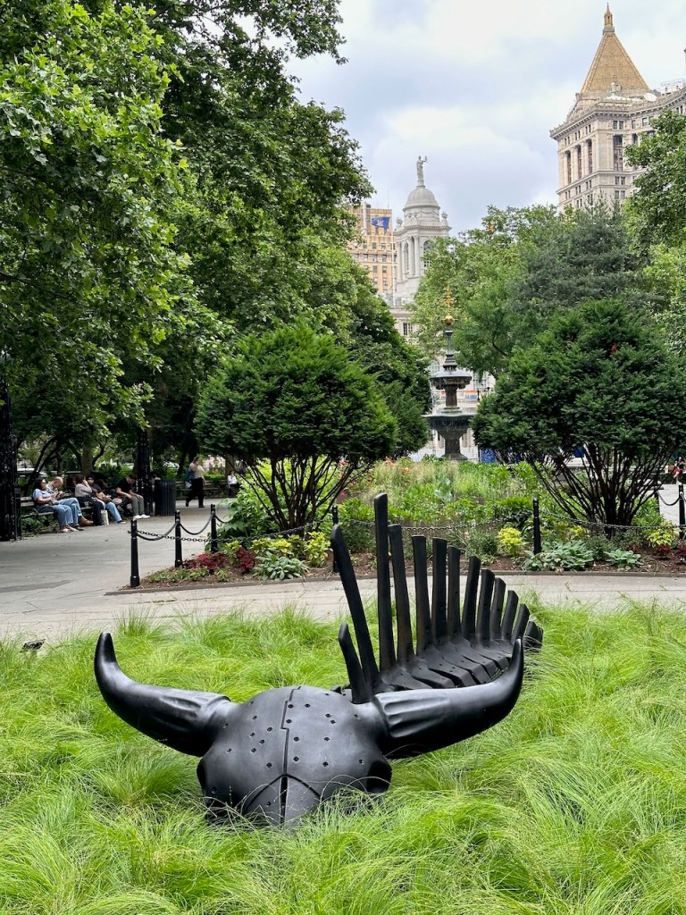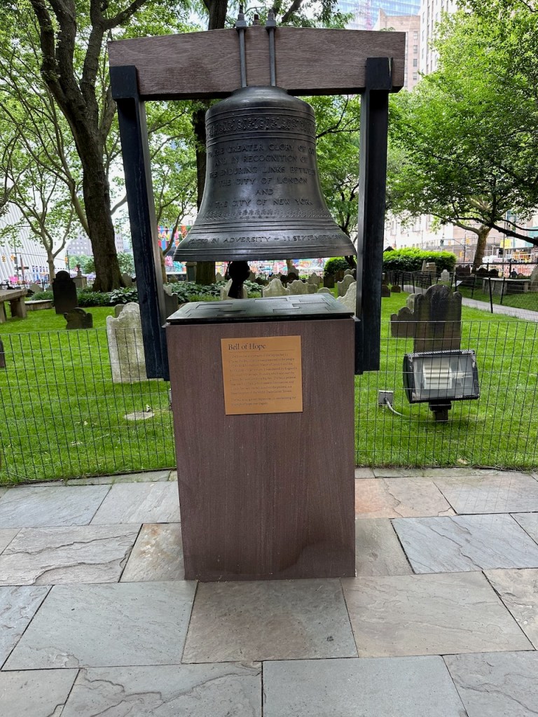 that’s a suitable road sign isn’t it?coming up the escalator at Grand CentralCharging Bull, a symbol of financial optimism and prosperity Some people believe that touching or rubbing the bull’s testicles will bring good luck, especially financial luck. Over time, this act seemed to has become a popular ritual for (crazy)tourists, leading to the common sight of people standing in line to take a photo with, or even touch, that particular part of the statue. I thought that was hilariously funny!!!! Can you imagine queuing up for an hour to rub some big bronze balls???the (new) World Trade Center at a closer look9/11 Memorial, the flower represented that it was the birthday of the deceased the actual daySaint Paul’s Chapel and Church YardThe bell, a gift from London to New York City a year after the attacks, is rung on September 11 anniversaries and to remember victims of terrorism and mass shootings. “Cannupa Hanska Luger’s new site-specific public sculpture, Attrition, symbolizes Indigenous resilience, taking a look at history and the future, while highlighting human-nature interconnectedness and engaging with NYC’s heart of policy-making.”this piece of art was only presented a day before we passed through the City Hall Parkobviously Chinatownthis little girl joined our walking group and she was soooo happy to finally eat the dumplings, guess how she liked them – a lot