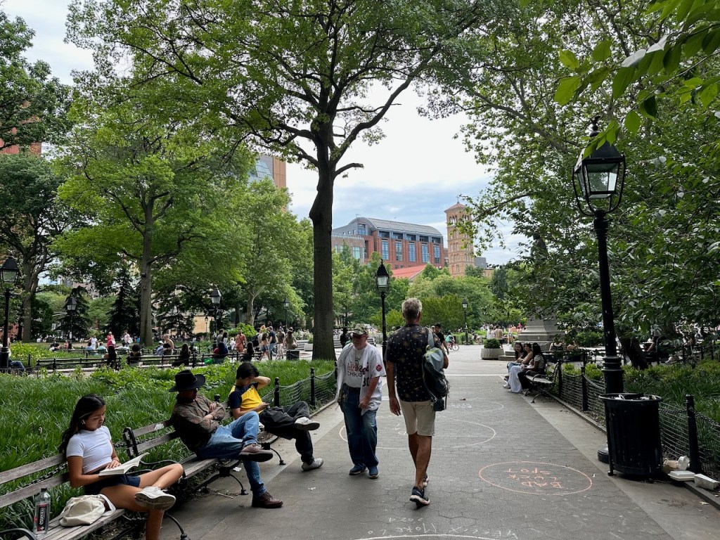 Madison Ave, close to Grand Central Terminalonly a few minutes walk we found ourselves at Bryant Parkit looked like some people loved to play chessLuis broke his flip flop after the first mile in NYC, he had to buy new slippers at a touri shop, have a little peek maybe you can see his beautiful new New York slippers 🤣the flat iron was under renovationMadison Square Parkvarious nations presented themselves there that dayWashington Square Parkthe arc in the above mentioned parkit was our first day and I was (still) fascinated about the crazy outside stairs56 street Leonard street tower, sometimes also called “Jenga-Tower”, I wonder whyparking is fun in NYCthe Oculus at the World Trade Buildingthe small stage at the Little Island at pier 56 Hudson Rivermy funny face making boyswe just walked through Chelsea Market, no clue what that was, but the architecture and decoration was coolno, we did not try the Curry Wurstjust in case you like Oreos