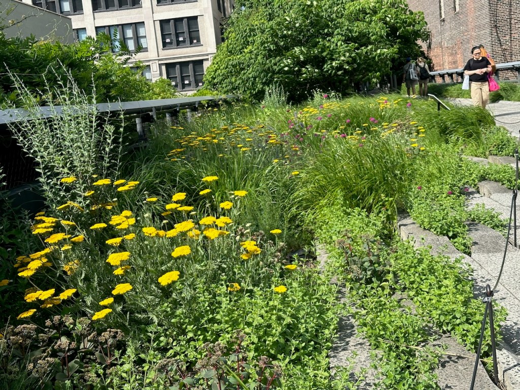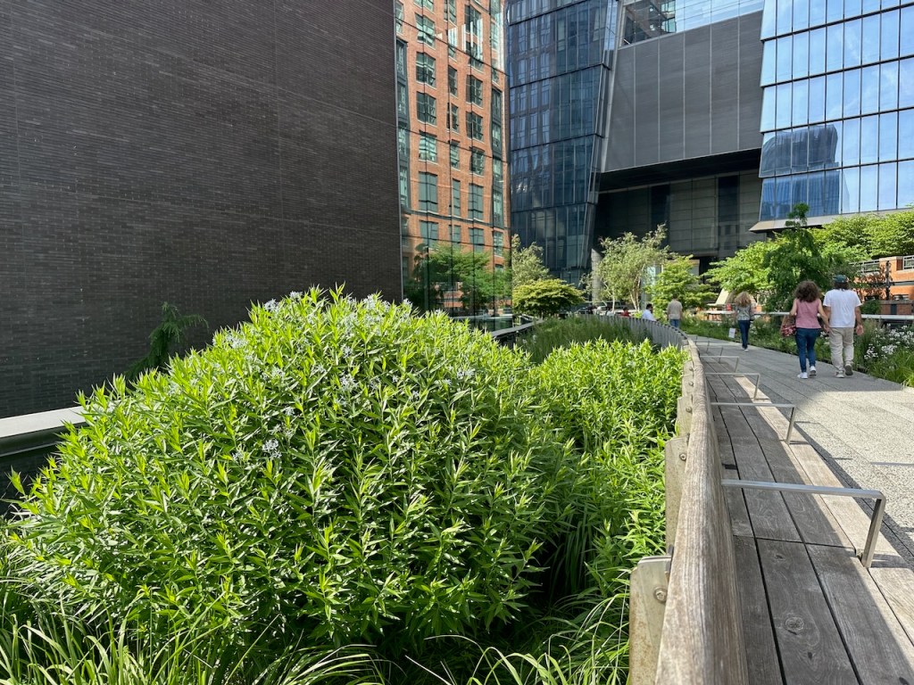 Time Square, Central Park and High Line. The latter is an elevated park and promenade built on an abandoned freight rail line on Manhatten’s West Side. Its first section opened in 2009. With the completion of its final section in 2014, the High Line extended about 1.5 miles (2.4 km).