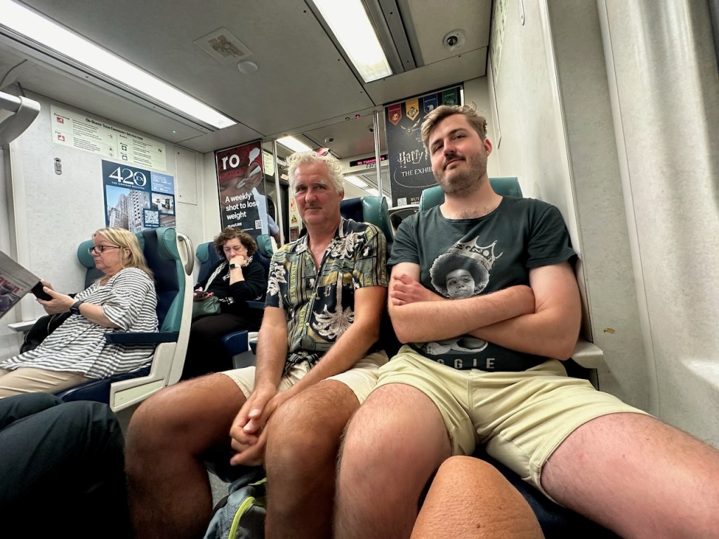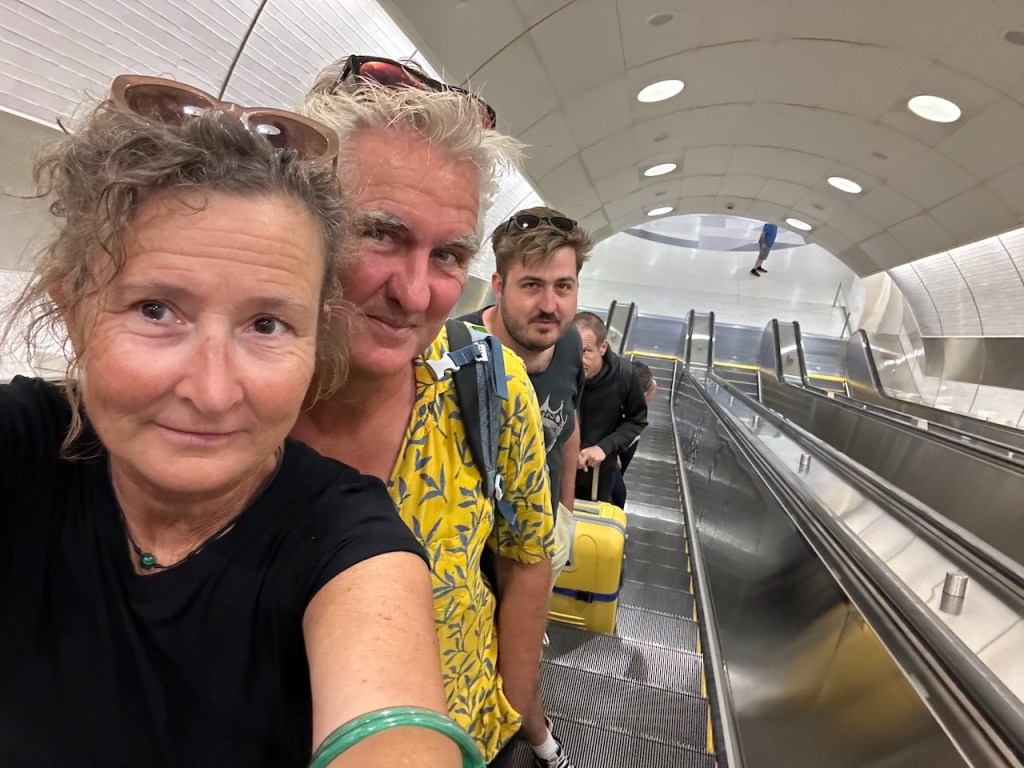 those funny guys were entertaining the people while we were sitting in the restaurantour last trip ashore with both of my boysand little Luis all alone in the train heading to the airport- he seemed to be happy to leave!