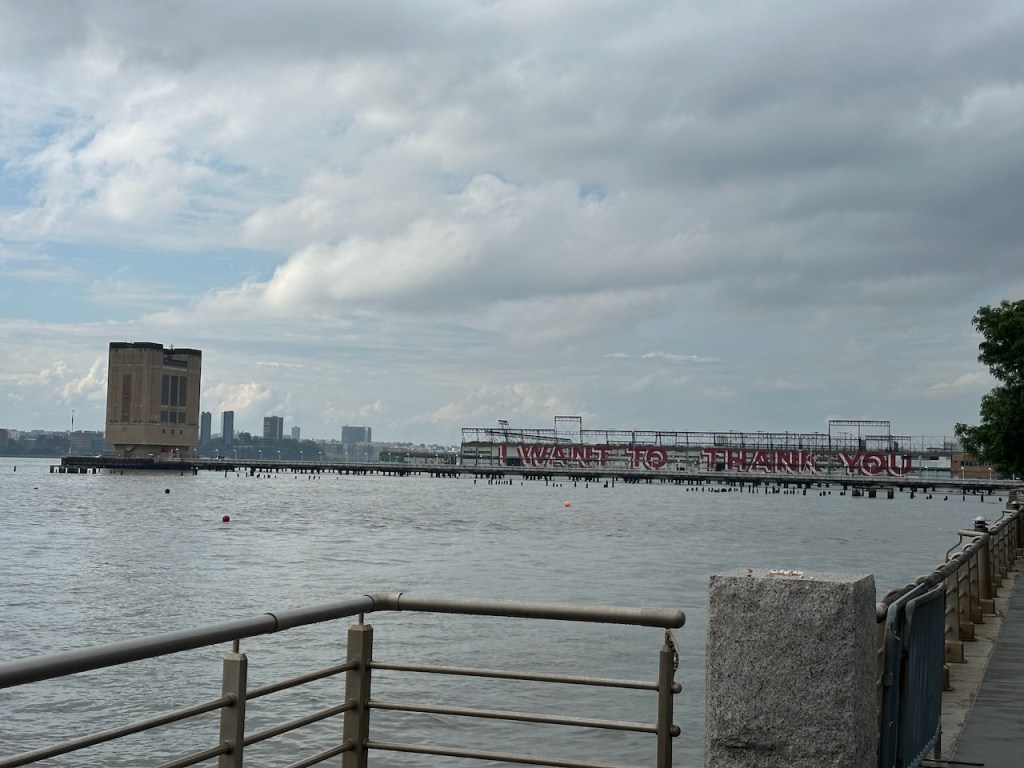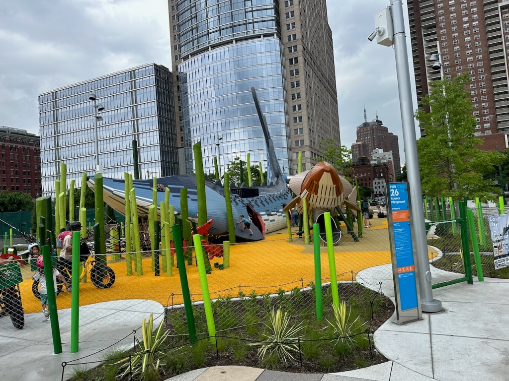 Sea Glass Carousel at Hudson River, wasn’t sure wether to like it or notGardens of the Battery the proof that we had been to the museumno idea what that was – maybe elephant art?the weather was not the bestselfie timeguess what that was supposed to resemble – correct Eyes!!!you need to know the time? Colgate helps somewhere at the esplanade exercise possibilities everywherea nice boat at North Cove Yacht Harborsailing or flying?Rockefeller Parka cool playground at pier 26the view from pier 26still pier 26