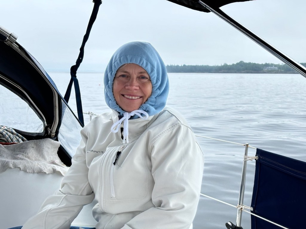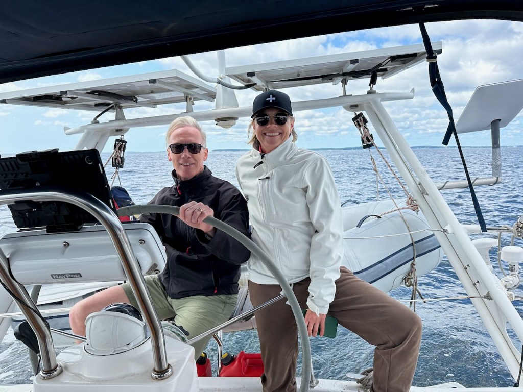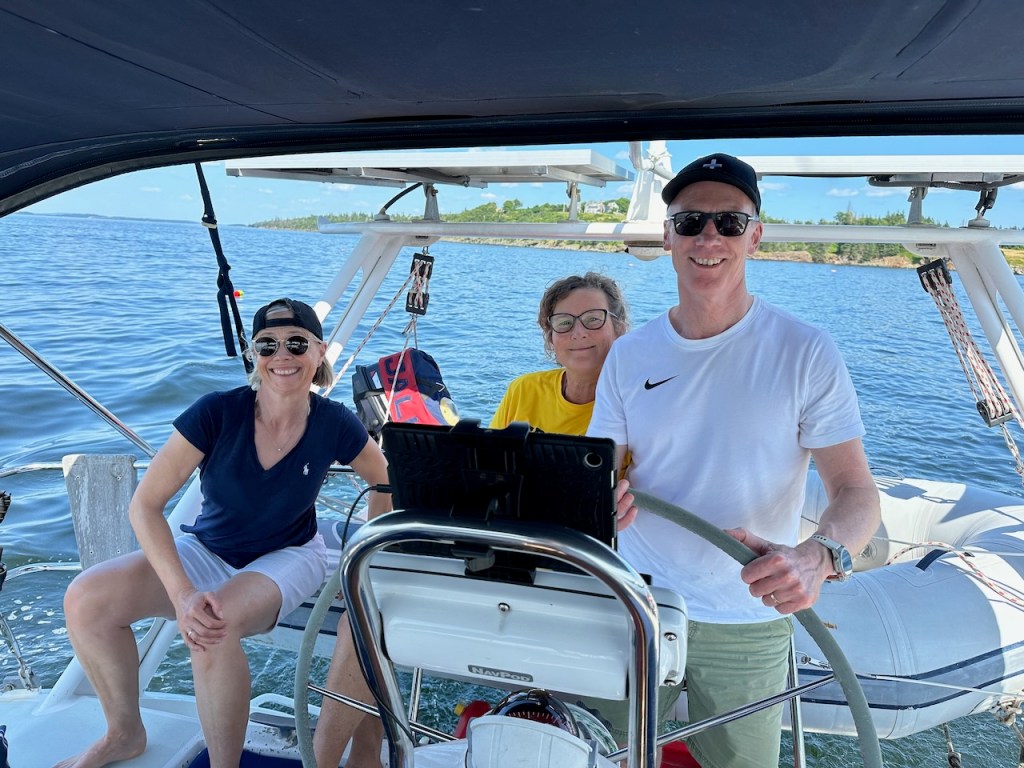 beautiful sailing conditions we girls look a bit weirdat the entrance of Pulpit HarborPulpit HarborStephan the helmsmansailing is fun!the only evidence picture of our bbq dinnera last beautiful sunset at Rockland