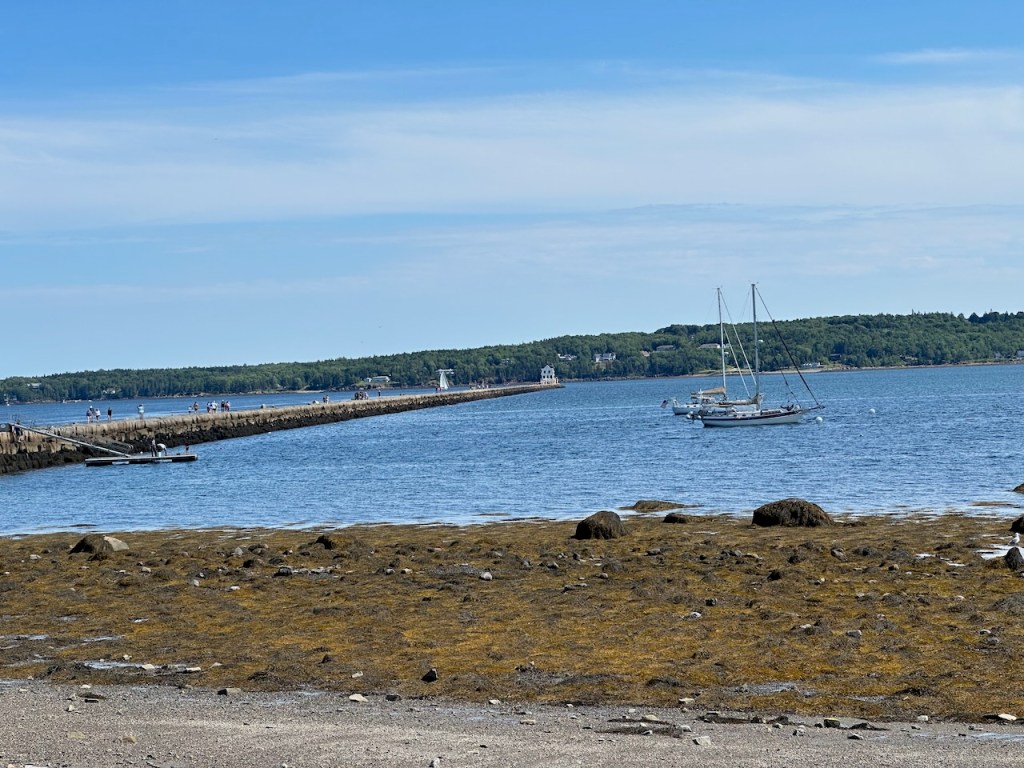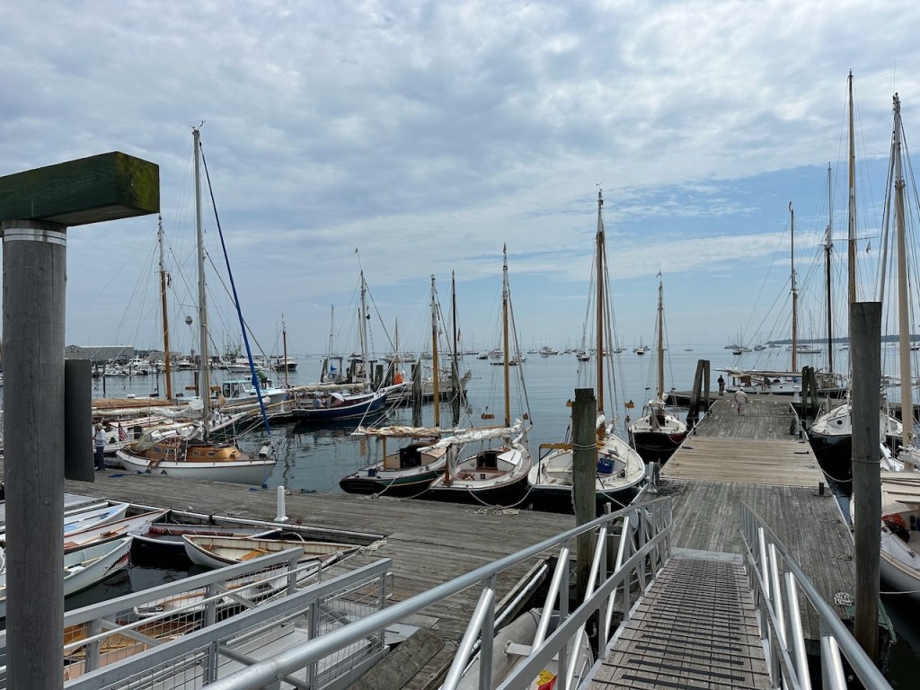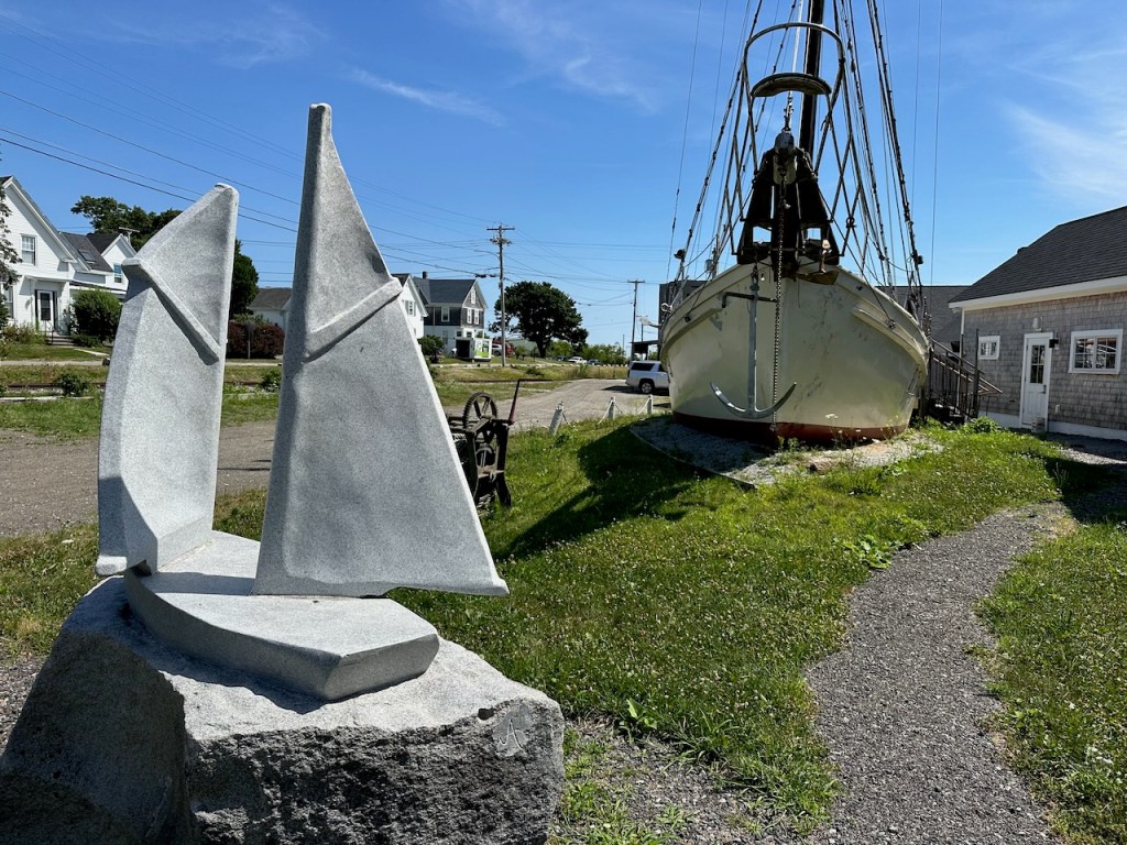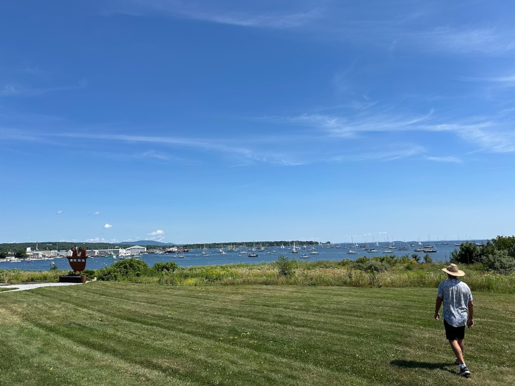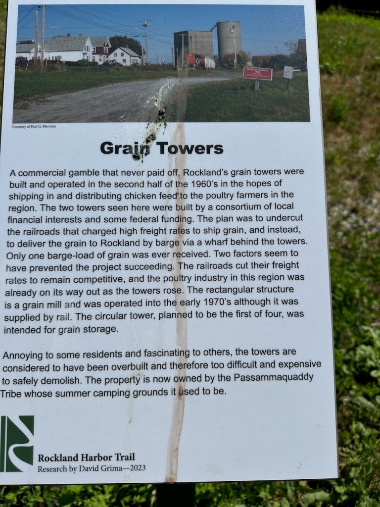 the Main Street of Rocklandlike everywhere at the east coast Rockland had as well big housesthe memorial honored the 33 souls who lost their lives aboard the ship “El Faro”Rockland Harbora part of Rockland Harbor trail close to Sandy Beachthe trail and the restaurant “Archer’s on the Pier”harbours viewhere we were in our 45 min walk to get to Walmart grocerywe passed that strange graveyard, it was a long stipe of green and in the very back we saw some tombstones, the only highlight of that walkAmerica is just not made for pedestrians, no sidewalks if you walk a few meters off the centre of the town, Rockland also didn’t have any public transport the farmers market, nice but not very useful for us honey, bread, foodonly a couple of huts provided veggies👍a clapboard house many beautiful old sailing boats were docked at the harbora friendship sloop in action- such amazing boatsthe lighthouse at the breakwater filling up dieseltwin treesthe coastal children museums backsidepush! harder!!!!try potthe pretty grain towersSandy Beacha regatta took place at the weekend, the boats had to turn almost inside the harbor, a great spot to watch them, but a challenge for the crewmore of the beautiesin the water those buoys don’t seems big!!!in the back the Knox County Courthouse – I thinka kind of marquetry made out of tile pieces and shaped into cakes – I guess that was art?boring just another houseand another pretty clapboard house we walked all the 5 miles of the harbour trail, here we were just behind Lermond Cove where the ferries arrive sometimes the trail was just along the streetwe passed the poor people areas of Rocklandlooking from the northside of the baythe end of the trail was at the lighthouse at the end of the breakwateronly 0.8 miles left to reach the lighthousewe made it!the lighthouse looked a bit tattered – fortunately El Capitano looked good🤣Rockland Harbour hotel- where our friends stayeda cute and delicious ice cream hut