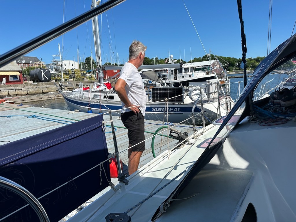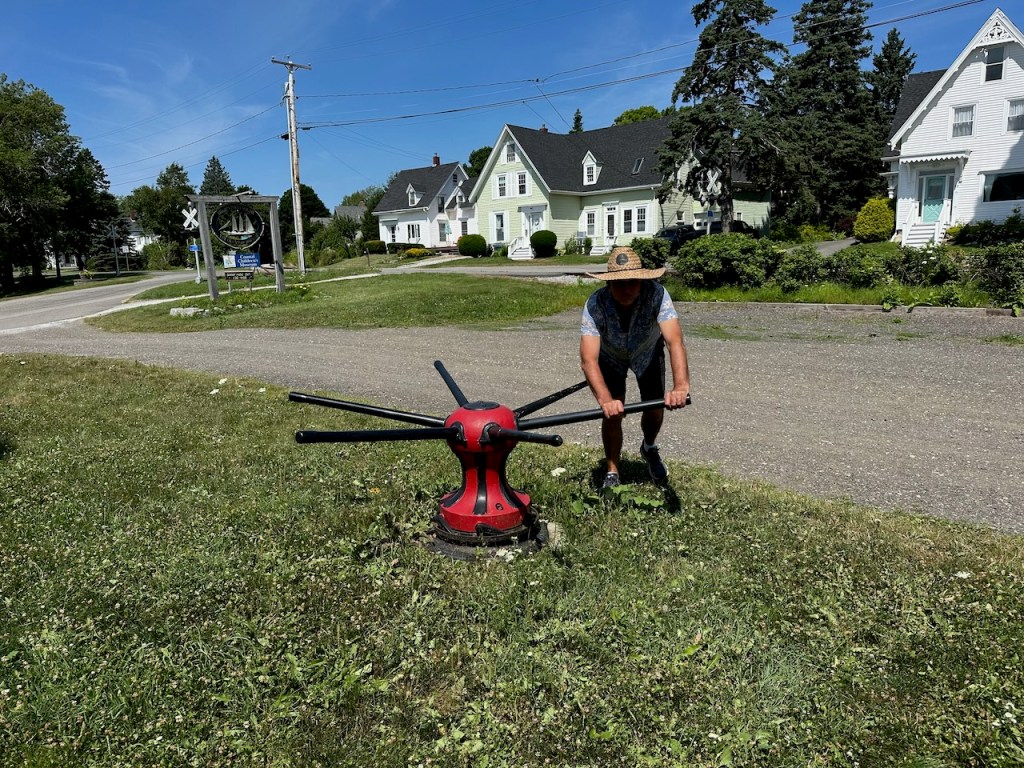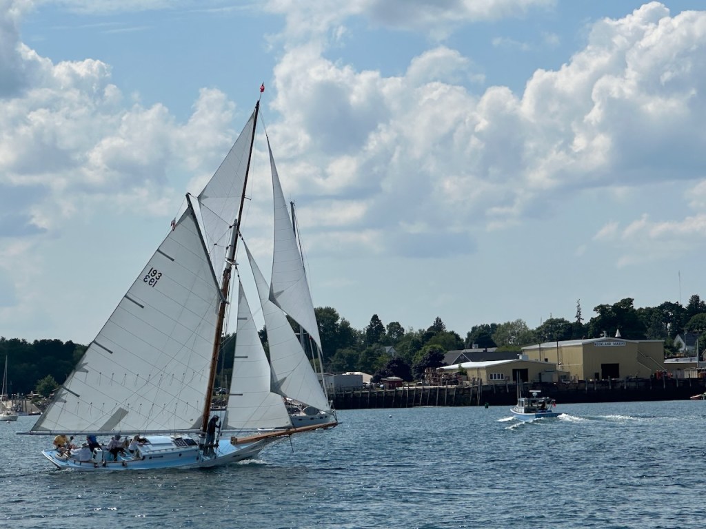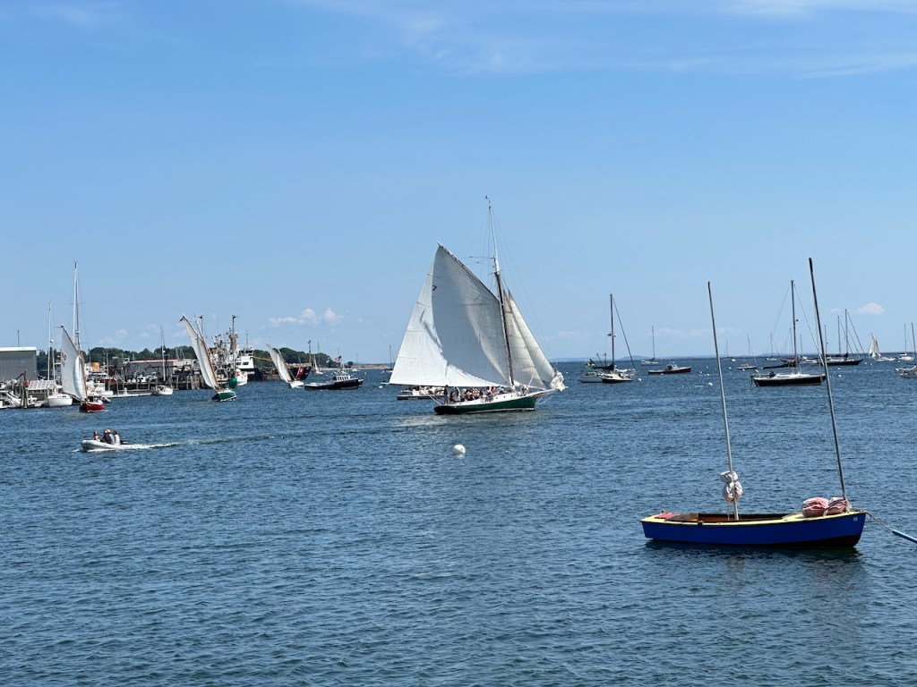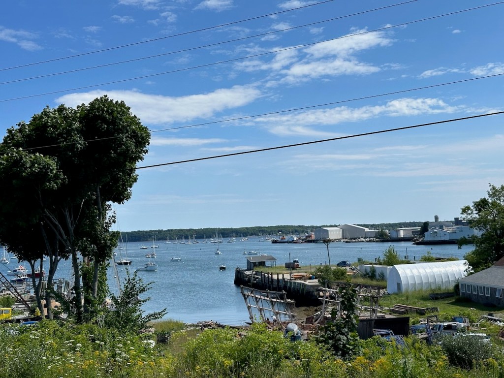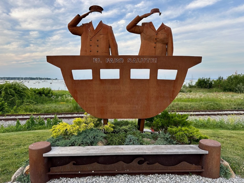 the Main Street of Rocklandlike everywhere at the east coast Rockland had as well big housesthe memorial honored the 33 souls who lost their lives aboard the ship “El Faro”Rockland Harbora part of Rockland Harbor trail close to Sandy Beachthe trail and the restaurant “Archer’s on the Pier”harbours viewhere we were in our 45 min walk to get to Walmart grocerywe passed that strange graveyard, it was a long stipe of green and in the very back we saw some tombstones, the only highlight of that walkAmerica is just not made for pedestrians, no sidewalks if you walk a few meters off the centre of the town, Rockland also didn’t have any public transport the farmers market, nice but not very useful for us honey, bread, foodonly a couple of huts provided veggies👍a clapboard house many beautiful old sailing boats were docked at the harbora friendship sloop in action- such amazing boatsthe lighthouse at the breakwater filling up dieseltwin treesthe coastal children museums backsidepush! harder!!!!try potthe pretty grain towersSandy Beacha regatta took place at the weekend, the boats had to turn almost inside the harbor, a great spot to watch them, but a challenge for the crewmore of the beautiesin the water those buoys don’t seems big!!!in the back the Knox County Courthouse – I thinka kind of marquetry made out of tile pieces and shaped into cakes – I guess that was art?boring just another houseand another pretty clapboard house we walked all the 5 miles of the harbour trail, here we were just behind Lermond Cove where the ferries arrive sometimes the trail was just along the streetwe passed the poor people areas of Rocklandlooking from the northside of the baythe end of the trail was at the lighthouse at the end of the breakwateronly 0.8 miles left to reach the lighthousewe made it!the lighthouse looked a bit tattered – fortunately El Capitano looked good🤣Rockland Harbour hotel- where our friends stayeda cute and delicious ice cream hut