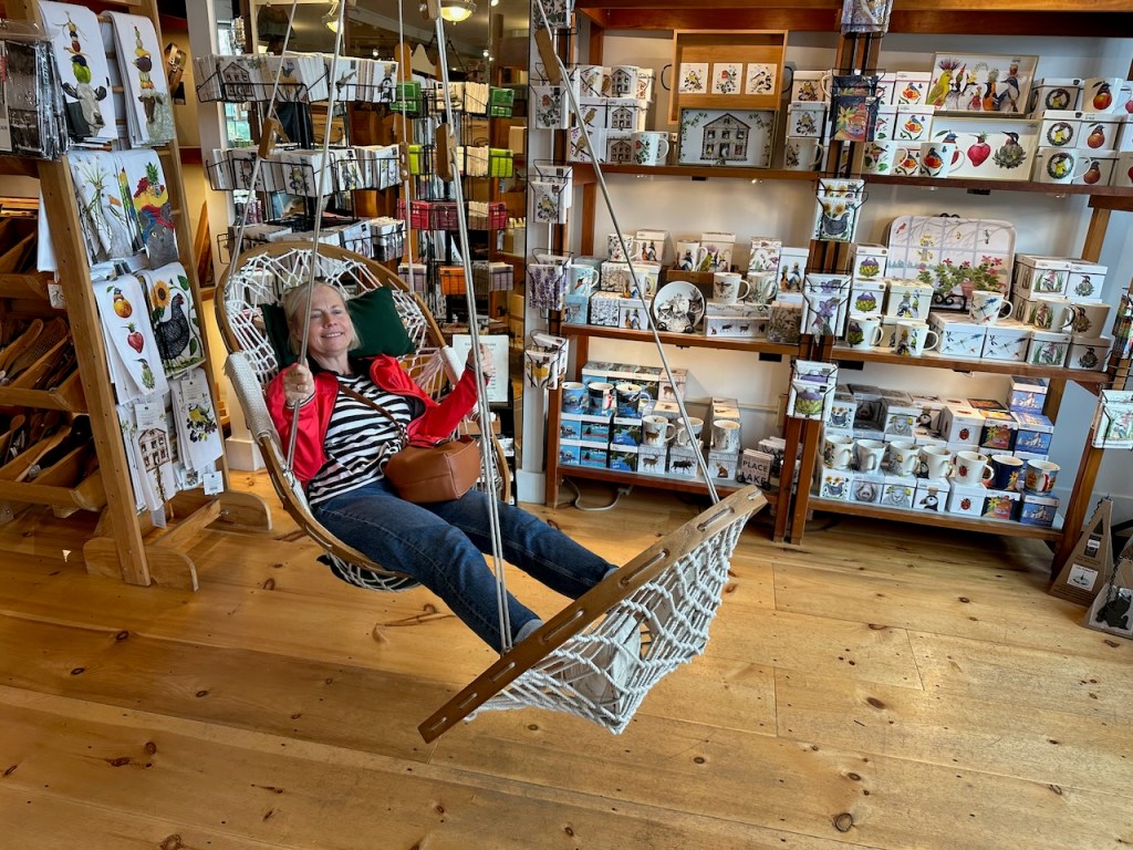 waterfront /marina at Camdensuch a cute couple !!! Anja testing wether that kind of swing was as relaxing as described…- it was!Camden Soldier’s Monument; who served in the Civil WarHarbour ParkI have no memory of what he was explaining but I thought that was a funny picmen always seem to explain something😁some houses were built on stilts we stopped at Rockport to have a coffee break, the café was closing so we strolled and passed by this shipyardAnja had a quick Look at the bay and then off we were