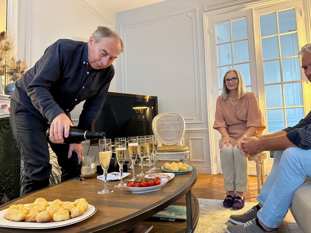Yessss, it was such a nice surprise! Maybe not completely out of the blue(I mean, they had been together for already 8 years) but being jet lagged and just arrived after a long 20 hours trip we were overexcited and surprised to receive such beautiful news. Our little girl got engaged. Mum and Dad over the moon. And to celebrate such good news, Jana´s -soon to be parents in law- had invited all of us for dinner. What an exciting welcome! Martine, Benoits maman, had spoilt us with delicious French cuisine. Of course it first started with a proper “l’apéro”. Fancy snacks served with best champagne to toast the two love birds. When the champagne was finished it was time to go “à table”. There Martine presented all her divine cooking skills. Mouth watering beuf bourguignon cooked for endless hours, just so delicious and tender! Just thinking of it makes my mouth starting to salivate. You know I could go on with describing every yummy bite we had but I will stop now, promised. I’m sure you got it by now that it was more than luscious and we enjoyed it tremendously.