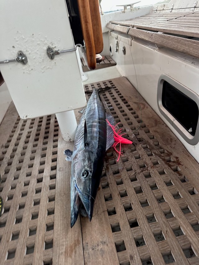 The rest of the reach was a mixture of all kinds of weather conditions. A calm forced us to motor for about 24 hours to make sure to escape a following nasty depression. Very boring but there was nothing we could do about it. Fortunately soon after the trade winds started to blow and provided perfect sailing conditions. We were almost flying. Sometimes when the wind changed direction we had a close haul reach and had to beat against the waves. That was of course the time when the fishes liked to catch our lure. They never seem to bite when we were on a comfortable beam reach. Nooo, getting the fish aboard, cleaning and filleting would have been much to easy. Evil mean fish! Well, hell, despite the uncomfortable reach obstacles we still managed to get aboard a beautiful mahi mahi as well as a huge and very difficult to catch wahoo. We were super proud as well as excited and had more than enough food for the next days. What can I say, all in all it was a very pleasant and entertaining trip. Successful regarding fishing, warm after only two days and faster than we had hoped.