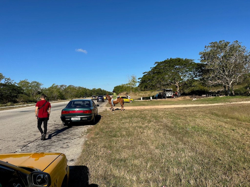 As promised we got picked up in time at the marina by our taxi colectivo to take us to La Habana. Luckily we only needed to share the car with one more passenger. Enough space for the three hours drive. All in all it was not the most exciting trip as there was not much to see. On the other hand it was again amazing how comparatively good the condition of the streets were. Our chauffeur didn’t need to ride many wiggly lines to avoid potholes. After about an hour, about a third of the trip, our driver made a wee-wee and breakfast stop. A pity that we already had a small breakfast as the pulled-pork-kind-of-sandwich, which the driver and the other passenger had eaten looked pretty nice. Me, being a woman was extremely happy that my bladder didn’t force me to release myself. The stop was just a small hut next to the street where some pork was roasted. Of course they didn’t provide any toilet facilities. Not that I had expected that, but every time in those situations I wish I could transform into a man or at least pee like a man. I bet all the female readers do get what I mean? I do always feel a bit humiliated when I need to uncover my sweet rear end. Not forgetting the fact that it can be a challenge not to wet oneself when peeing in that intense squat position. Don’t you agree? Oops, I did get a little off topic, didn’t I? Yet sometimes things need to be said😂! Anyway the men went for a wee-wee – I didn’t.