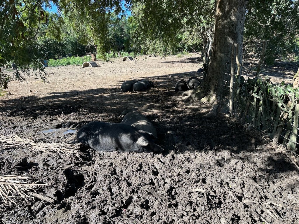 On Friday we went to a farm called Vista Hermosa somewhere east of Havana in Bacuranao. That was another present we got gifted. This time from the kids. That was a nice escape from city life and the walking we had done. The finca offered a ” farm to table” experience which meant, what they produced there, both, crops and cattle raised for meat and dairy, was exclusively served at the farm’s onsite restaurant. My guess, we were a bit unfortunate in picking the day. They promoted next to all the nice crops, having cheese, salami and prosciutto. Of course just by thinking of those goodies especially the prosciutto part our mouths were starting to water again. Saliva was already running. Well the reality was different as they didn’t have any meat process going on at the moment what so ever. No chance of any salami or prosciutto. We were sooo disappointed. But fortunately they had dairy products and I finally could buy super fresh queso blanco, which I didn’t find in Cienfuegos so far. So our frustration didn’t take place for too long. A lady showed us around at the farm and explained a few things. Nothing extraordinary but it was good to hear that Finca Vista Hermosa’s approach to farming was all about sustainability. Which was great both for the end consumers but most importantly for the benefit of the environment and the health and wellbeing of animals. No chemicals or artificial fertilisers were ever used there, she explained. And it was heartwarming to see how freely the animals were raised. My favourite were the pigs happily wallowing in comfortably looking mud. Compared to how animals are treated in our world it was more than living in pig heaven for them.