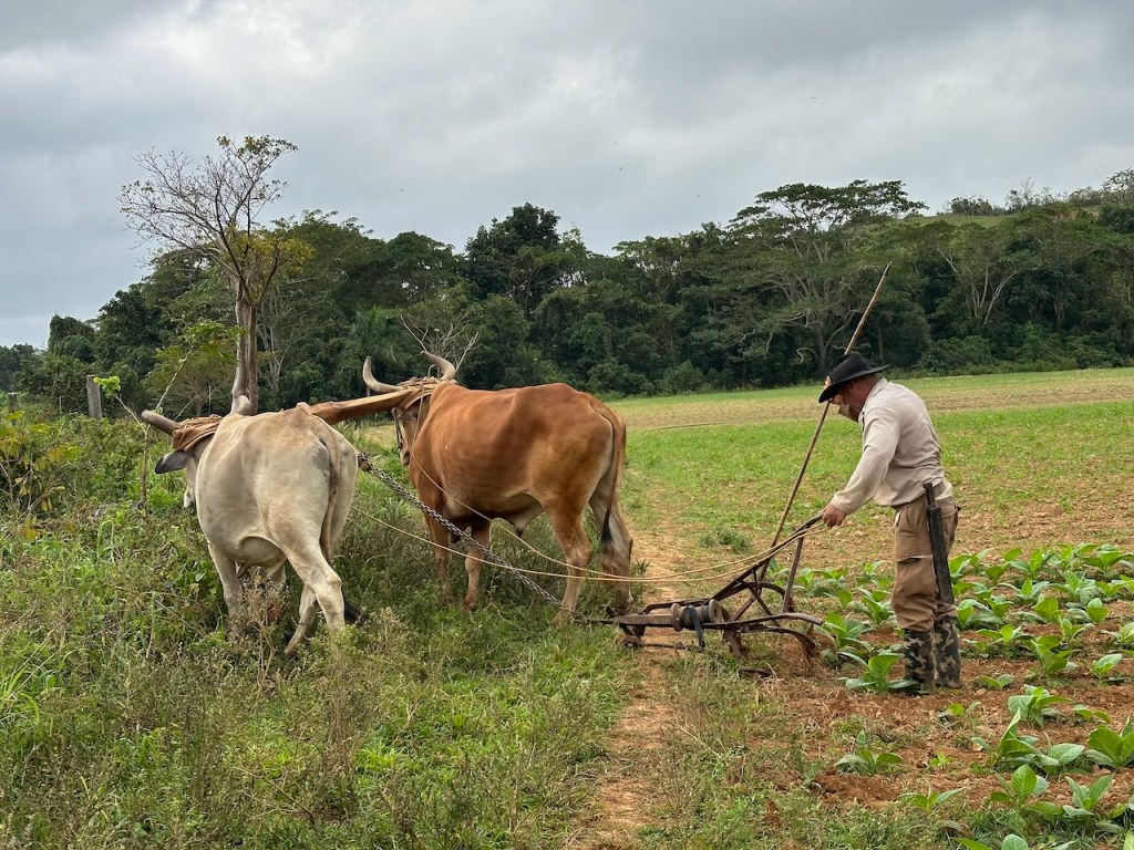 Luisa provided a wonderful simple breakfast on their pretty decorated roof. I also loved the way she presented the food. All was deliciously prepared and lovingly presented. My favourite was a tiny butter dish made of glass. So cute! She even added a butter knife. I felt home in her place just because of all those little special things. Just my taste. After the breakfast we went off to meet with the caballero. He asked where we wanted to go. We could have gone to several places which I can’t remember but we just wanted a short tour, knowing that after a short time our butts would already hurt. So he took us to an obligatory tobacco farm which was about an hour away. The landscape going there was just stunning. And being on a slightly higher position we always had a pretty good view. Our and especially Norbert’s butt was very thankful for the break at the farm. The owner of the farmer, a nice knowledgable senior, who spoke pretty good English, explained all about the making of tobacco and of course how to roll it. Pretty amazing that they still just used oxen for preparing the land. Here as well we felt slingshotted back in time. He also told us about their struggle to live. Fortunately they have enough food as they live in the country side but they struggle to get clothes, shoes, just basic stuff. That said the Cubans are kind of desperate to get some foreign currency to be able to buy things like that. Of course we did our share and bought honey and coffee, but no cigars as we don’t smoke. Then we got back on our skinny horses and asked our caballero to take us back to Viñales. El Capitano was very pleased realising that the way back was much shorter. Everyone was happy, our butts because not sitting in a saddle anymore, the rest of our bodies happy to have had such a nice morning, the horses happy to get back to grazing and the caballero happy having earned some extra dollars. The rest of the day we felt like doing nothing. Enjoying the garden and terrace of Louisas place.