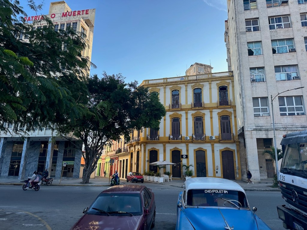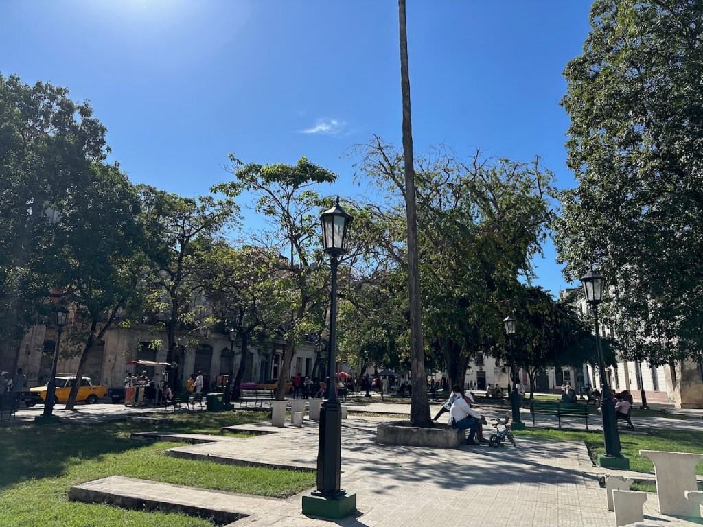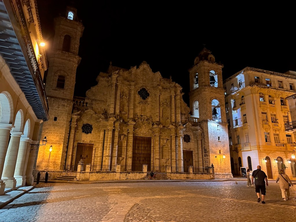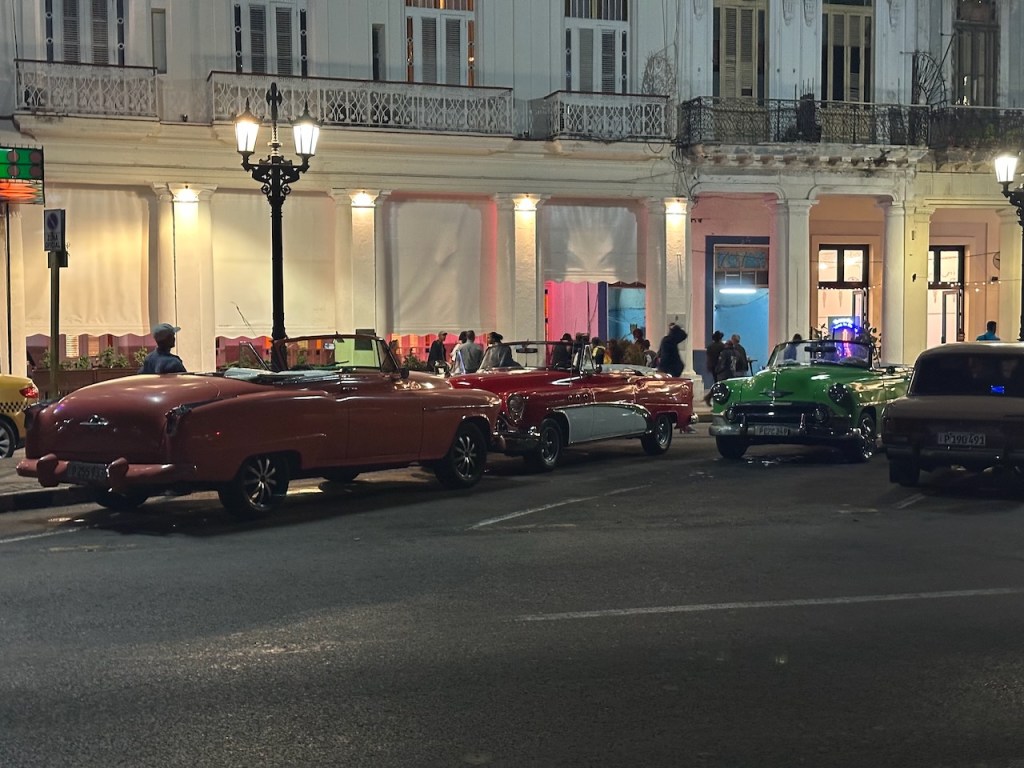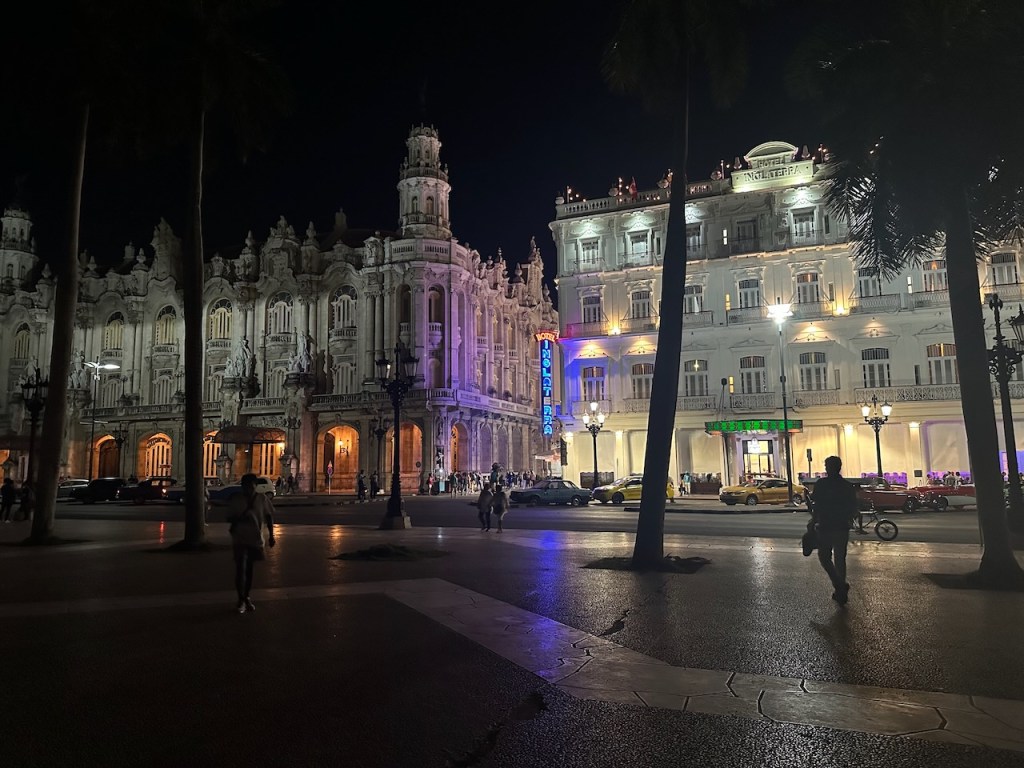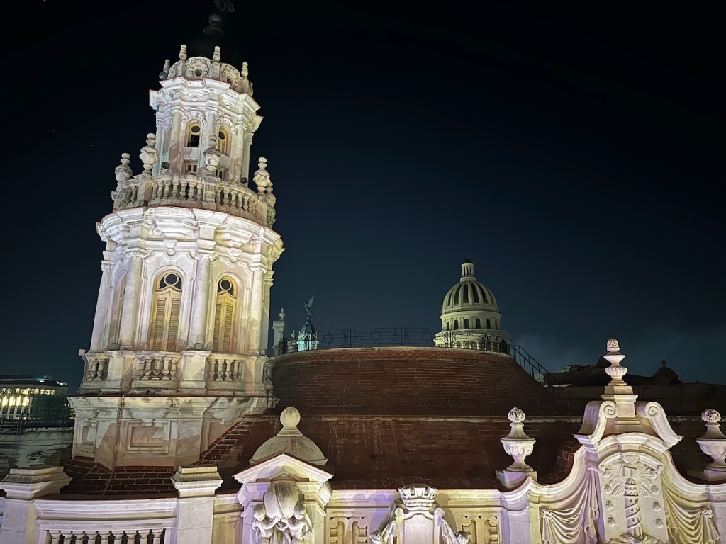 Vedado impressed with some pretty areasavenida de los presidentesthe sad decay of buildings, unfortunately everywhere exhausted from our loooongwalk we decided to take a cab backa view of “el Capitolio” the cool car needed a pick upwe went back to Parque Cristohere we had dinner at a restaurant with a rooftopPlaza de la Catedral at night