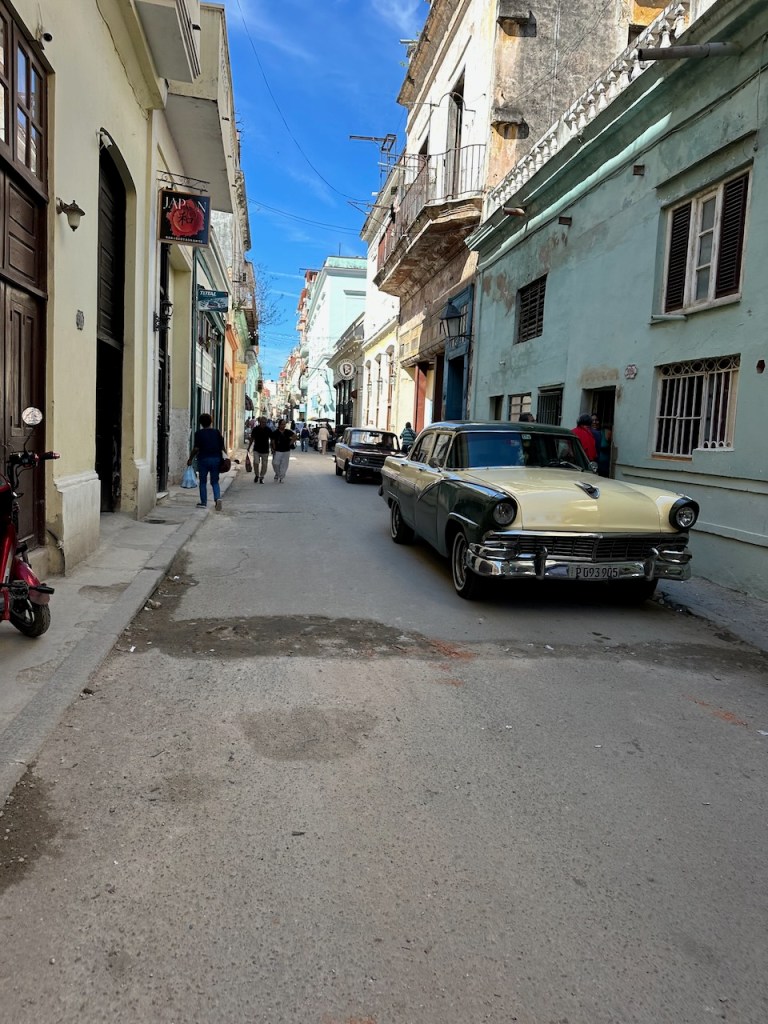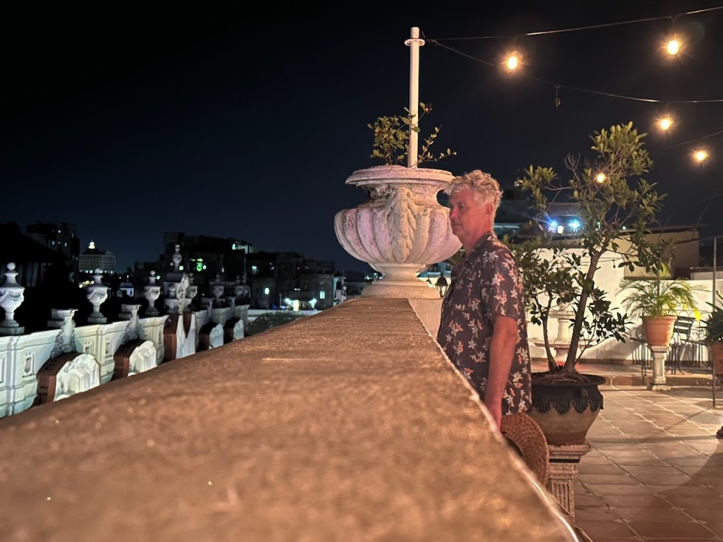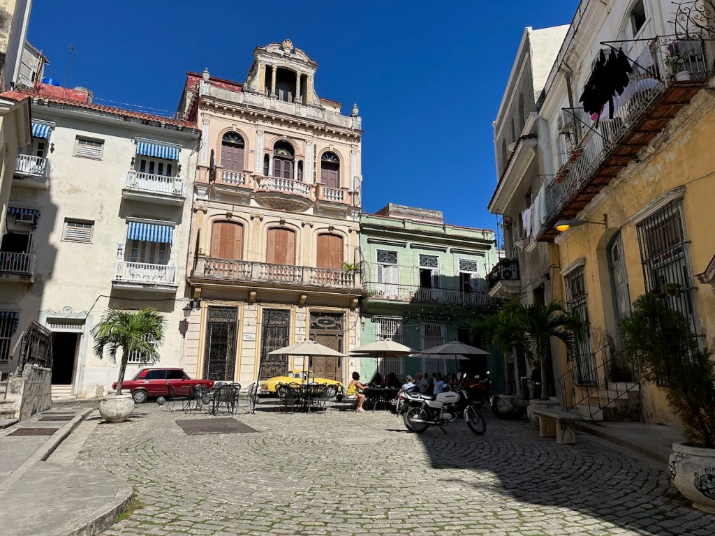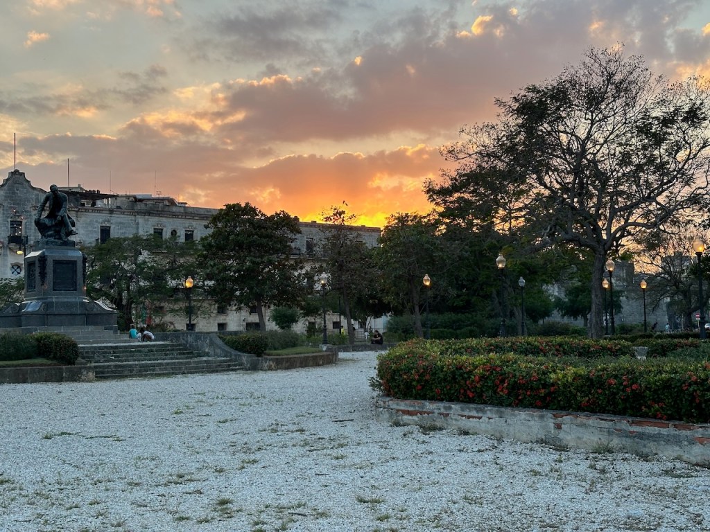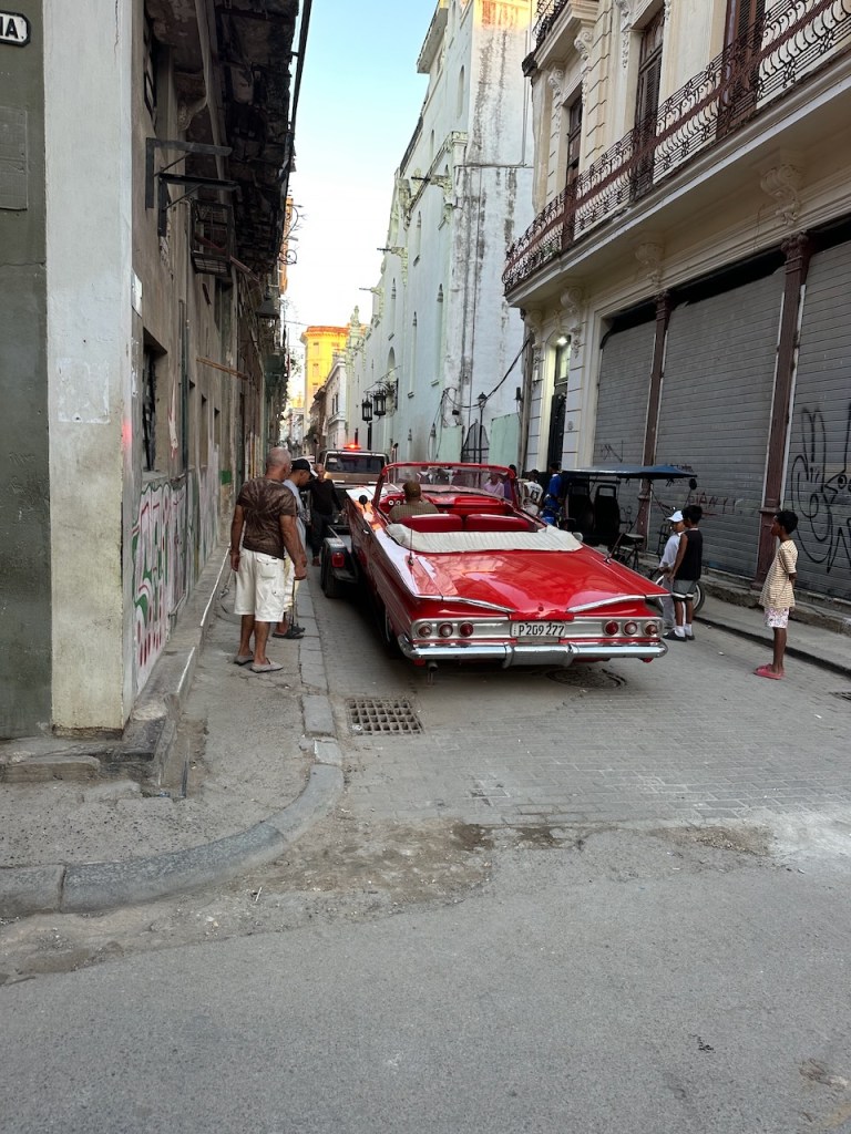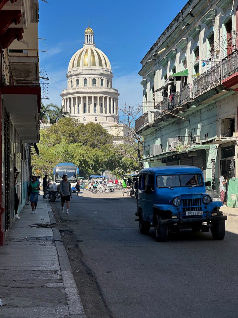 Vedado impressed with some pretty areasavenida de los presidentesthe sad decay of buildings, unfortunately everywhere exhausted from our loooongwalk we decided to take a cab backa view of “el Capitolio” the cool car needed a pick upwe went back to Parque Cristohere we had dinner at a restaurant with a rooftopPlaza de la Catedral at night