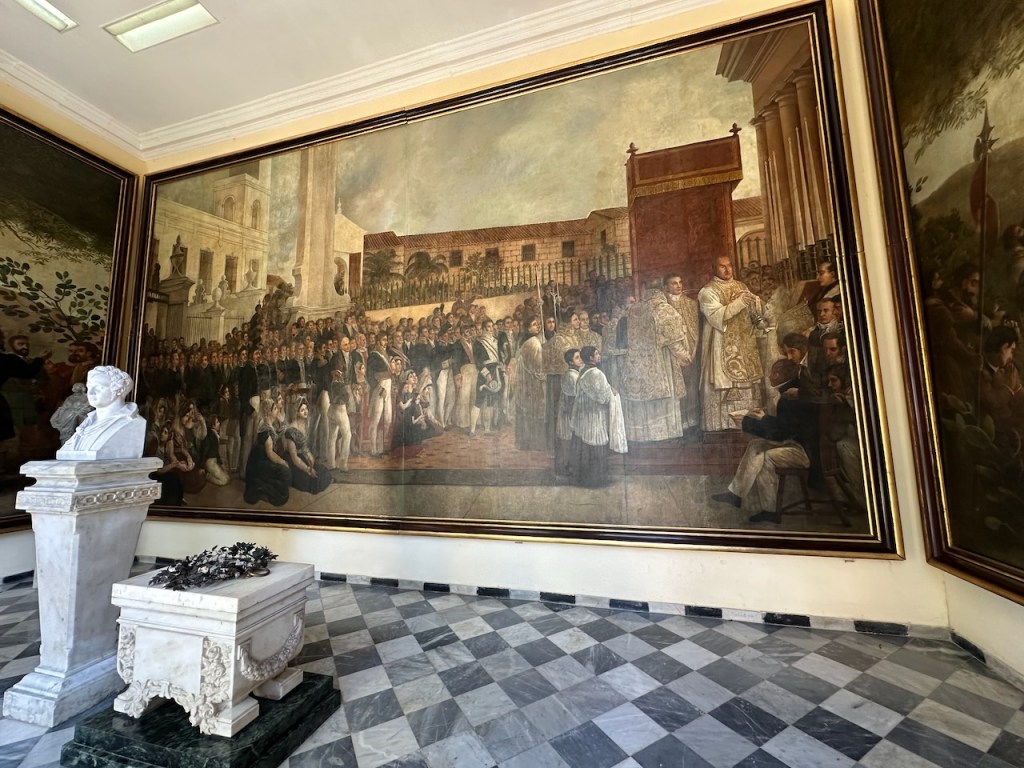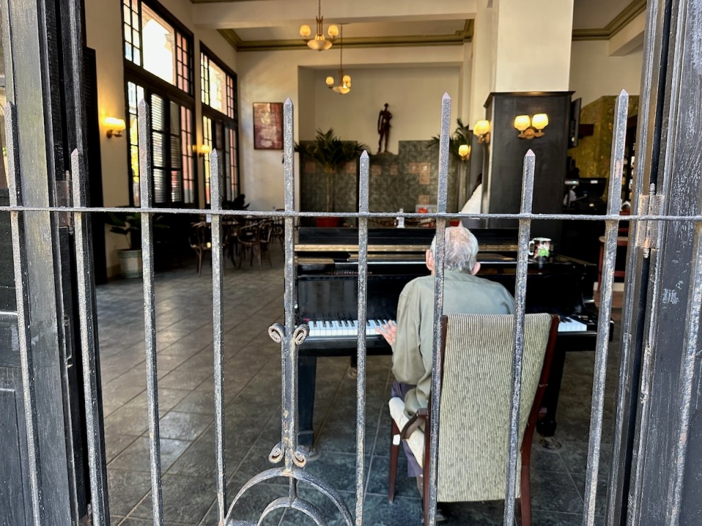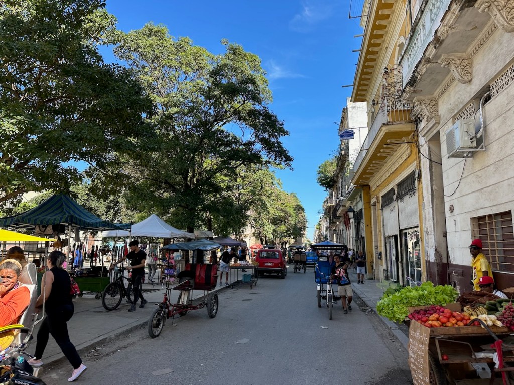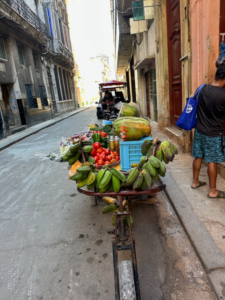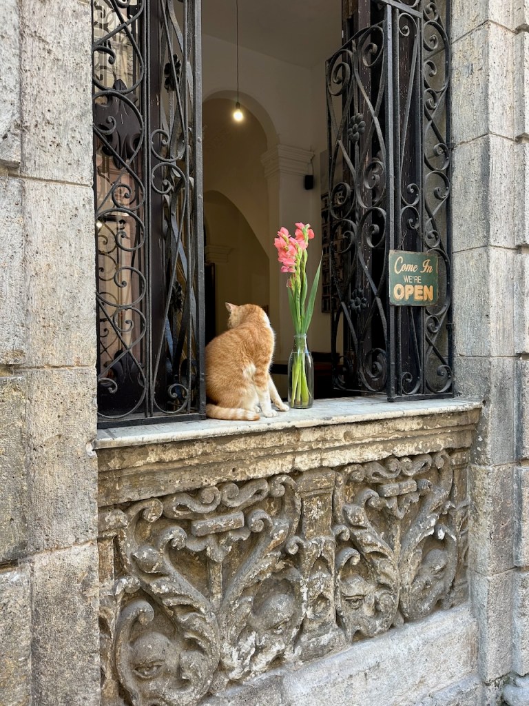 that was on our way to Havana at breakfast stopbbq porc wasn’t that a cute tractorthis pretty lady was just around the corner of our accommodationstart of our stroll through Old Havanain Old Havana there were many nice little bars/caffeesa sewing room plant in the heart of Old Havanawe found this beautiful old farmaciethis old man was playing the piano in the lobby of a hotelPlaza de Armashere we were close to the inner bay, the east border of Old Havanaold transportation meet modern ones that statue sat on the other side at Habana del Estethey seemed to have so many canons that they used it in all towns to keep streets car freein front of El Templete museumInside the chapel are three large paintings of the mass by French painter Jean-Baptiste Vermay (1786–1833).El Templete ” little temple” Statue in Plaza de Armas was built in the early 19th century, it marks the spot where Havana’s first mass was celebratedthe park of Plaza de ArmasI liked that over grown wellone of the many statues in Old Havanaan impressive entrancesuch a cute pussycatinteresting wall artCoche Mambí, a 1900 train car built in the US and brought to Cuba in 1912; “put into service as the Presidential Car, it’s a palace on wheels, with a formal dining room and louvered wooden windows” a pity we didn’t visited the inside Plaza Viejathe further south we walked the more ruins we saw we found a market with way more products available than in Cienfuegosthe further we walked the more “normal cuban life” we sawparque Cristoin this area the relation tourist / Cubans was much betteras we still had some time until our cooking event we had rest there at Parque Cervantes