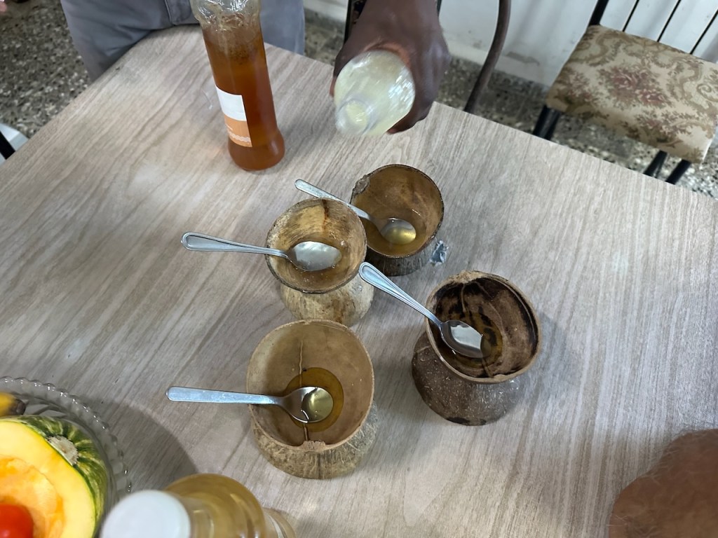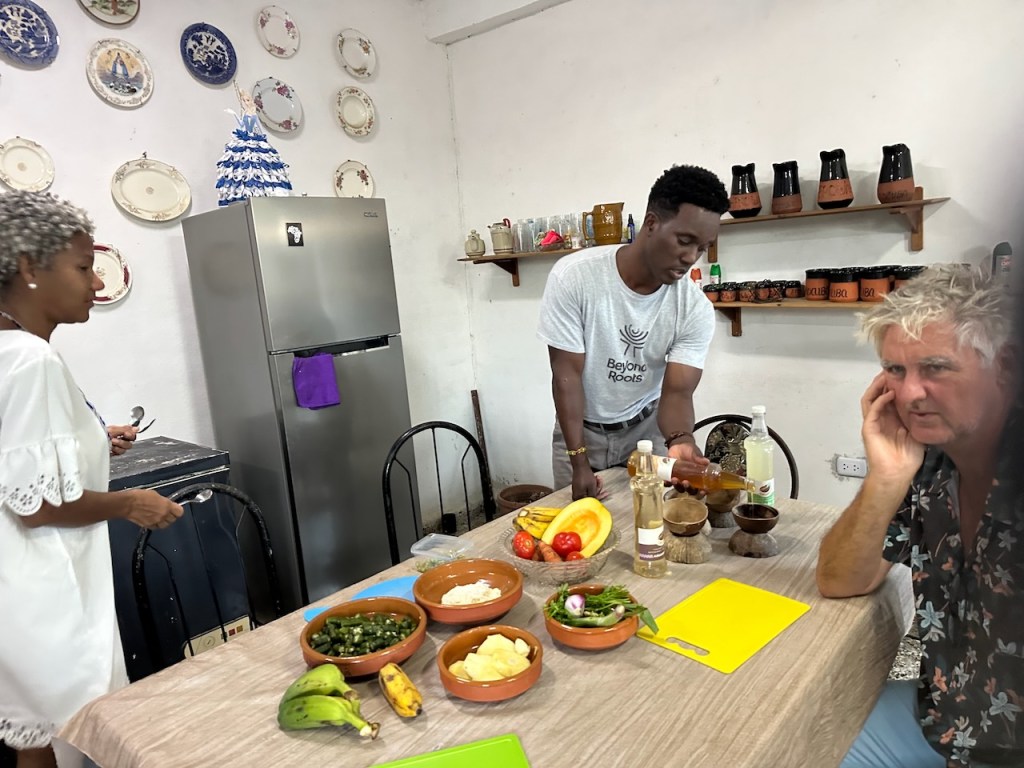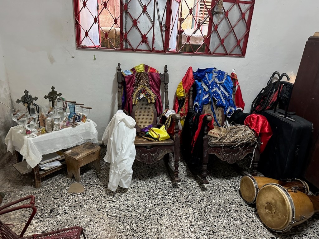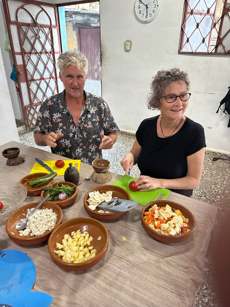 the spiritual room of Surama, our chief all the items had meanings Surama, Ted, preparing the “Canchánchara” cocktail and El Capitanohoney, lime juice and rum; easyour ingredientscutting went well with cancháncharaI looked a little messy after cooking; Surana looked fineon our way back to our casa particular, we stopped at plaza central many cool cars in front of Hotel Inglaterraat the rooftop of Hotel inglaterrasome people had ordered huge lobster, it did not look nice to me
