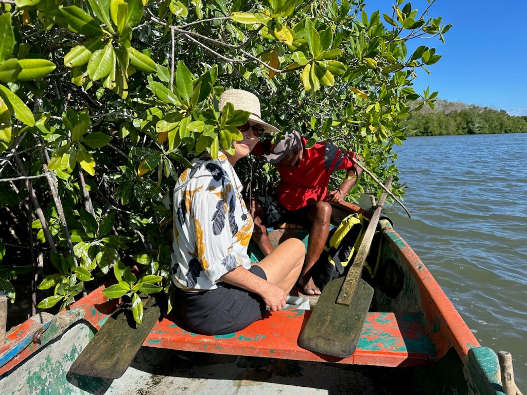 Anyway, our new Ovni friends had organised a tour with Joana and asked us to join them. It was a fun day with lots of sights to see! Our first stop was at Laguna Guanaroca a bit south east of Cienfuegos. A beautiful protected sanctuary where colonies of flamingos and various aquatic bird species were domiciled. At the lagoon we got -for a change- the luxury of being rowed in small boats to cross the calm water. The lagoon was beautiful and it was cool that we were the only visitors. Like that we could see many cormorants, egrets, pelicans, and herons in the surrounding mangroves. Living on the water ourselves that was not that exciting for us, but when -if I remember right- Wilfredo, the boat man, told us there were oysters growing at the mangrove roots I got extremely excited. I asked him if we could stop and eat some. “Claro que si” he said. And just like that we were half inside the mangroves and Wilfredo was picking and opening the oysters. They were absolutely delicious! What a nice breakfast. I did not know that oysters would grow on mangroves, unfortunately they need brackwater to grow. So no hope to find them on mangrove islands surrounded by just seawater.