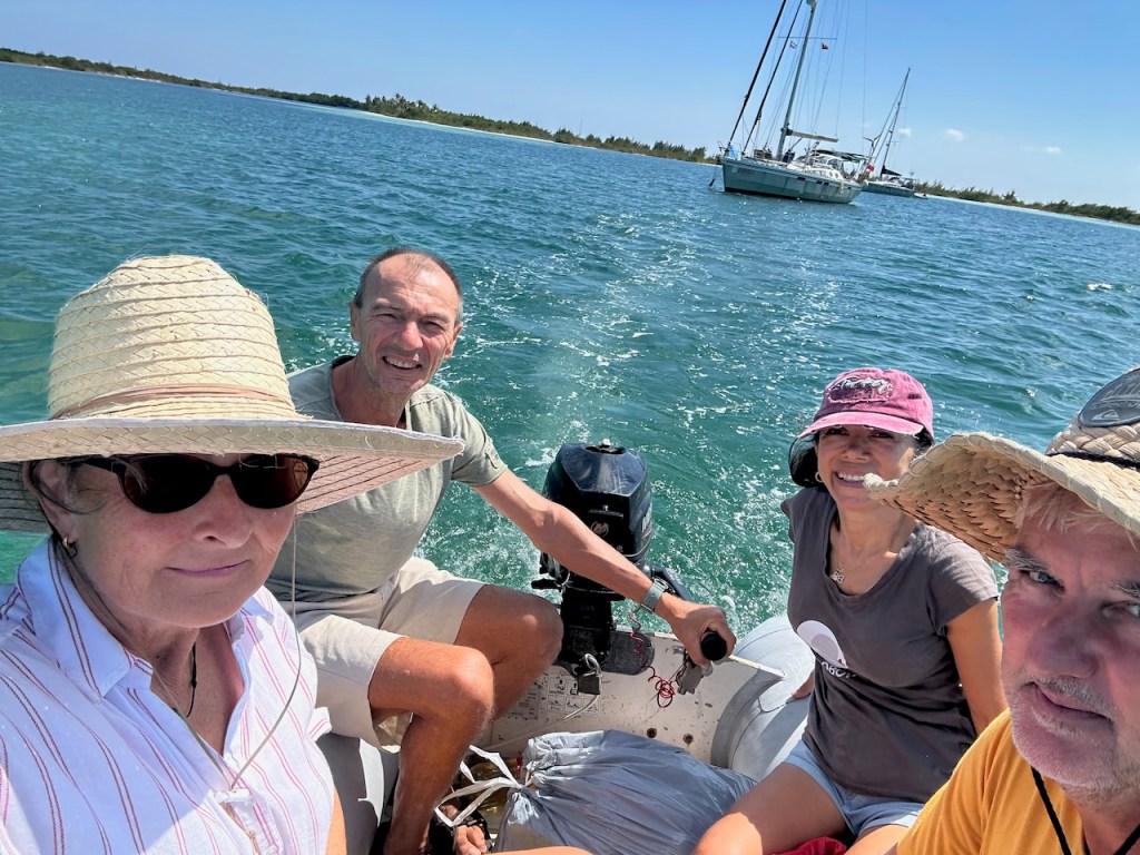 Also nice was the fact that we had caught up with Derya and Orhan on Gypsea at Cayo Sal. They had left Cienfuegos already a week or so ago. We shared our food and enjoyed a few days at that anchorage. Teased by our first lobster hunt we were keen on catching more of those beauties. Unfortunately we could not keep up with our first day success. Somehow it was already hard to just spot the lobsters and when spotted even harder to catch them. I am pretty sure the lobster WhatsApp group had spread the news about strange aliens with only two legs and arms and a long stick trying to get around their tails. It really seemed they had all disappeared. Well fair enough, who could blame them? I wouldn’t like being caught to be eaten either. Yet more annoying was that our outboard engine propeller was suddenly not pushing anymore. Or better to say it was slipping. And we had no idea why as we hadn’t touched anything. Noooooooooo! Not another significant project. I have to say I was indeed slightly fed up with things breaking. A not working outboard really really sucks, too! Ok you might think, what’s the problem? Just use your big strong arms, skip workout and just pull. Good idea when having a stable row boat. Only, inflatable dinghies are just not made for easy rowing, especially not when having to cope with wind, waves and current. It probably would be ok on a flat lake but not in sea conditions. In fact it could become even a bit dangerous. So again instead of enjoying the anchorage Norbert was trying to fix the propeller. He had found out that it was possible to screw three screws into the shaft of the prop to stop it from slipping. That worked for exactly 100m than it had slipped again. Scheisseeeeeee!!! (I thought maybe it’s not as rude to write swear-words in German?)