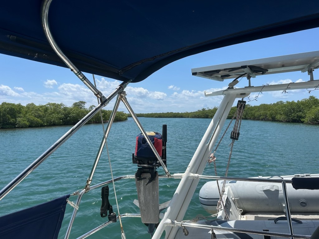 Later that evening the officials arrived. Very respectful, friendly and fast we got internationally checked in. Within half an hour all was done and we enjoyed a calm night of good sleep. Early next morning we left to hide from the northerly wind which was coming. El Capitano had found a safe and beautiful place completely surrounded by mangroves only 8 nm away. It was called Cayos de la Jena.