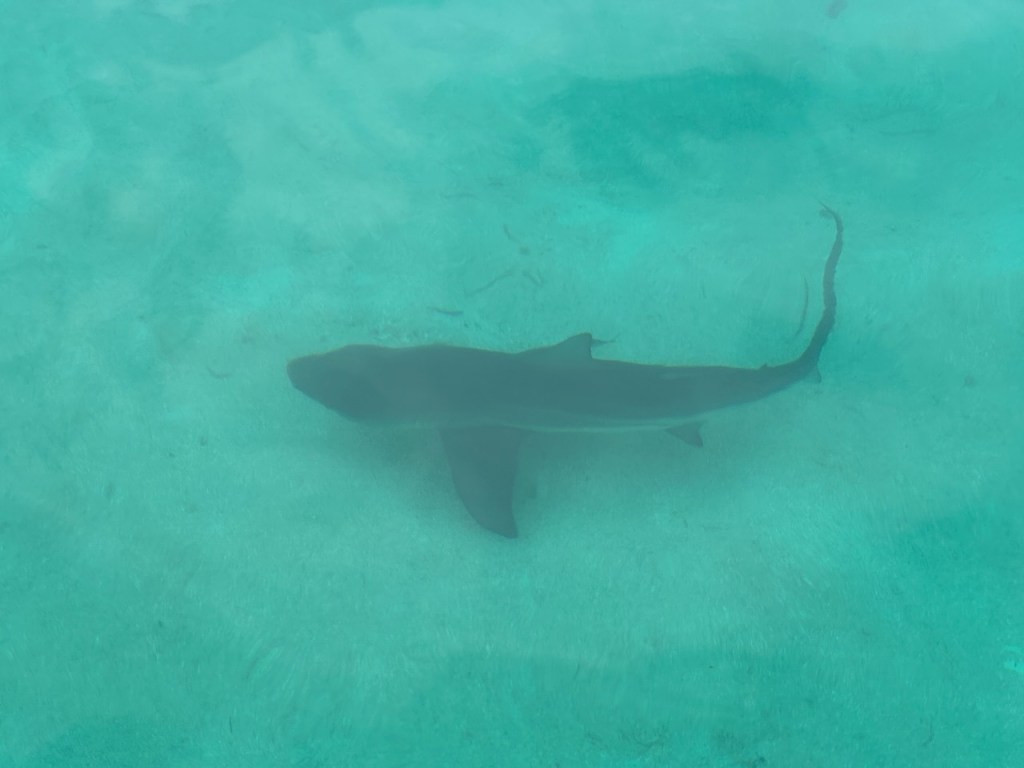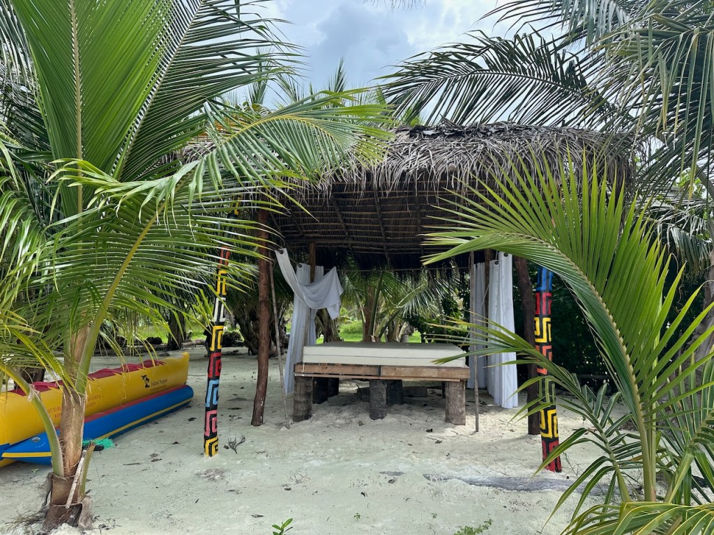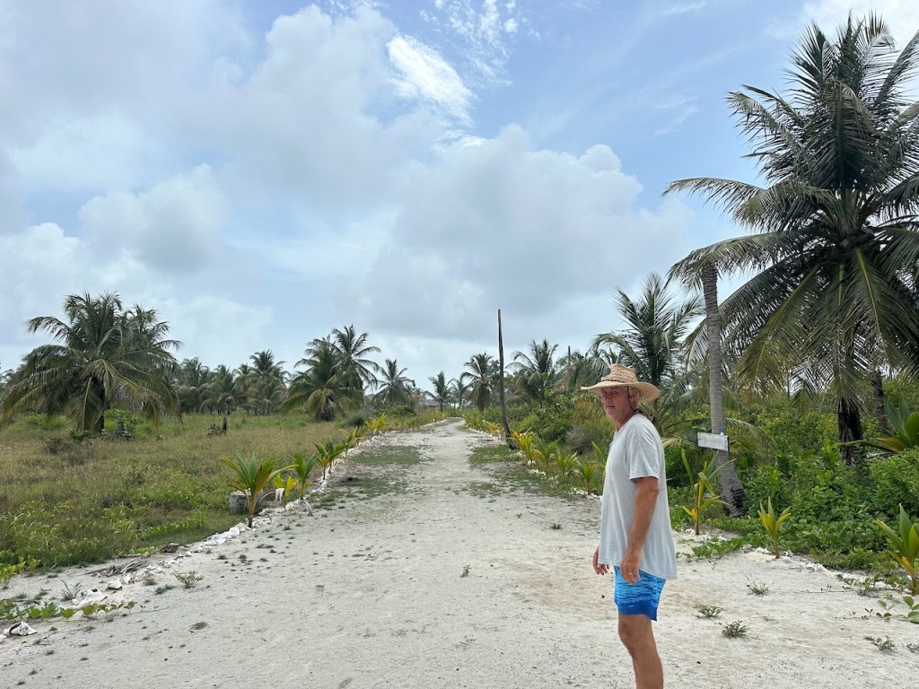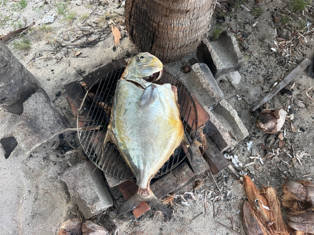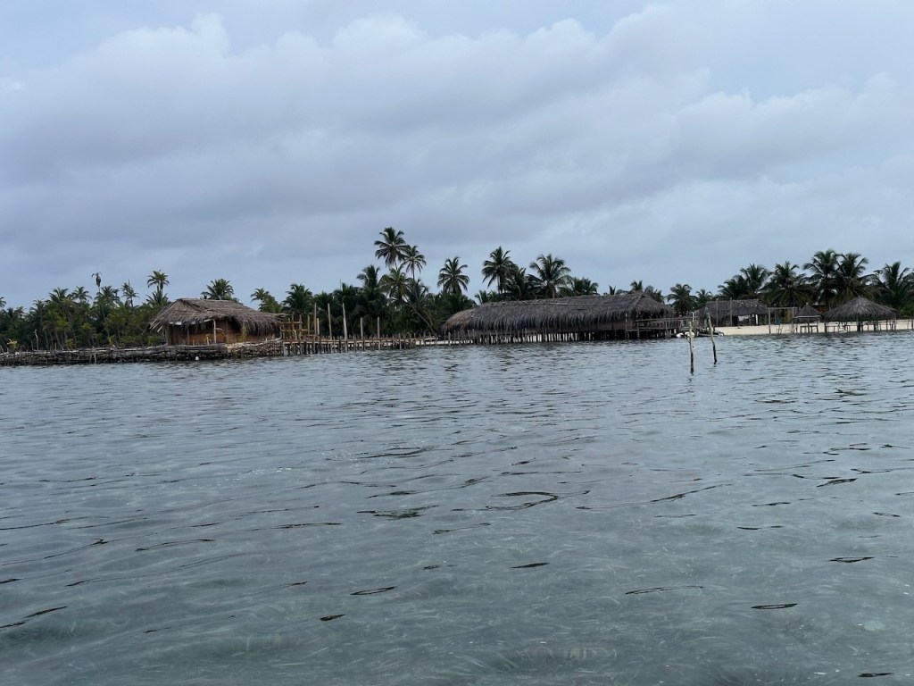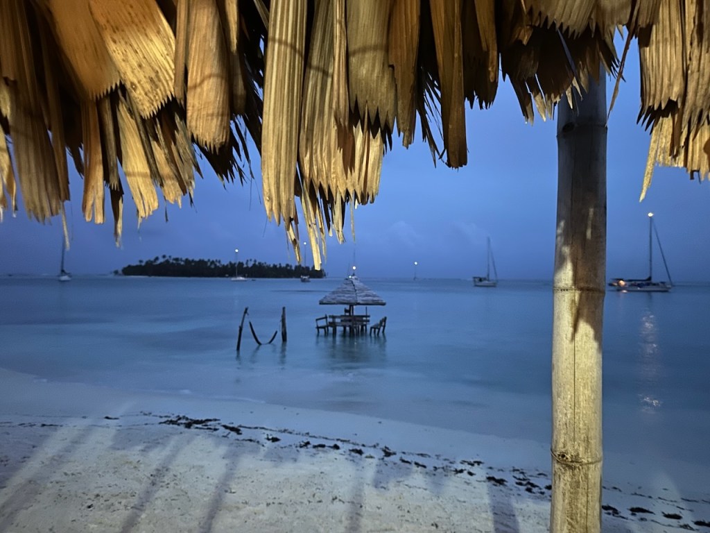 it did look like a log but then it suddenly disappearedthe hut on the left will be the future luxury love bird rent out, the big hut on the right was Ibins new restaurant area – massivehere the view of the restaurant from ashore everything was bigger now – even the signsthe path was not only market by conch but also now with planted palm treesthe south east end of Banedup looked sad, some Gunas had roded too many palm trees that erosion had started the other south side of Banedup looking at Tiadupnow further west of Banedup looking at Quinquindup on the left and Ogopirriadup in the middle, the big island further back is Kalugirdupthe little bar and backpacker area on the south side had improved much, now it looked prettythe places now had star link too as well as enough solar or generators to provide cold beverages and moreAltimate at the north side of Banedup already on our second day Ilka had organised a BBQ on Morrodup because Aydin (her son) had caught a huge fish, big enough to feed a lot of peopleMarc, Debbie and Norbert waiting for the fish to get readymore people had arrived for the feast on our third day we started to play volleyball volleyball and potluck here we had a beer with some friends on the south side of Banedupnurse sharks came close to shore hoping for same easy bitessunset at Ibins and the bar from the south side of Banedup