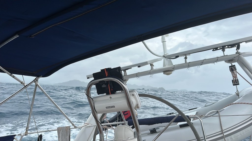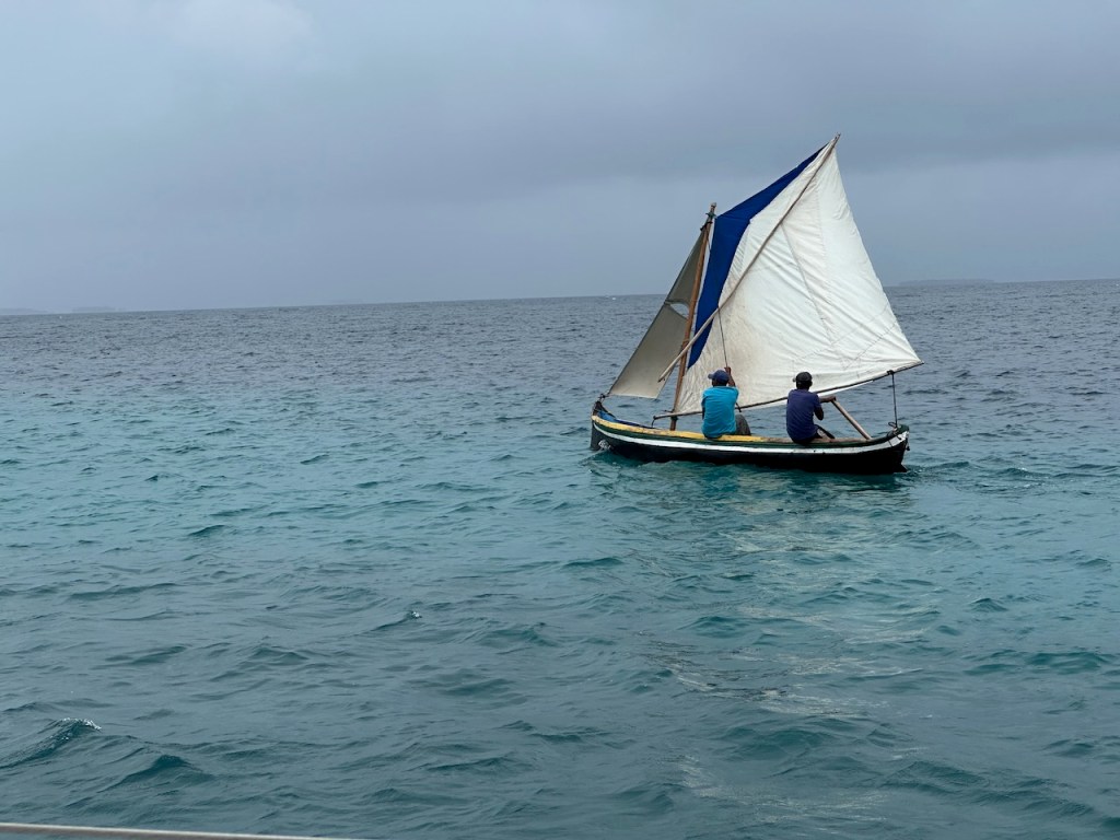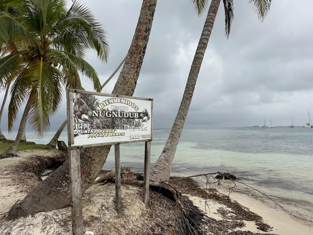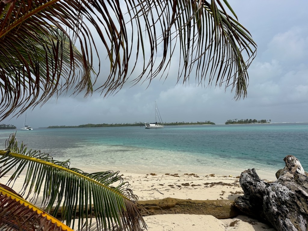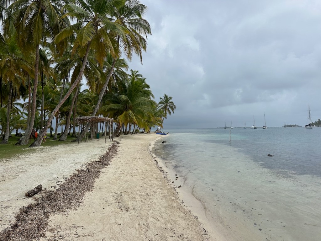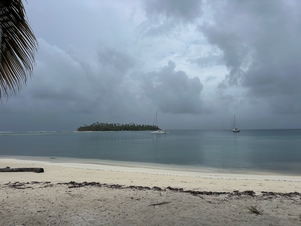the weather not so nice, but hey it was rainy seasonsoon we saw a first Guna lancha – we were back in San Blas!!!first stop in the Lemon Cays at Isla Nugnudupnot our favourite place to be but nice for a stop over