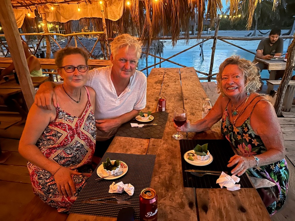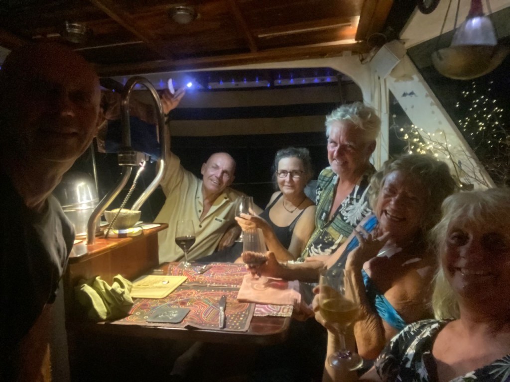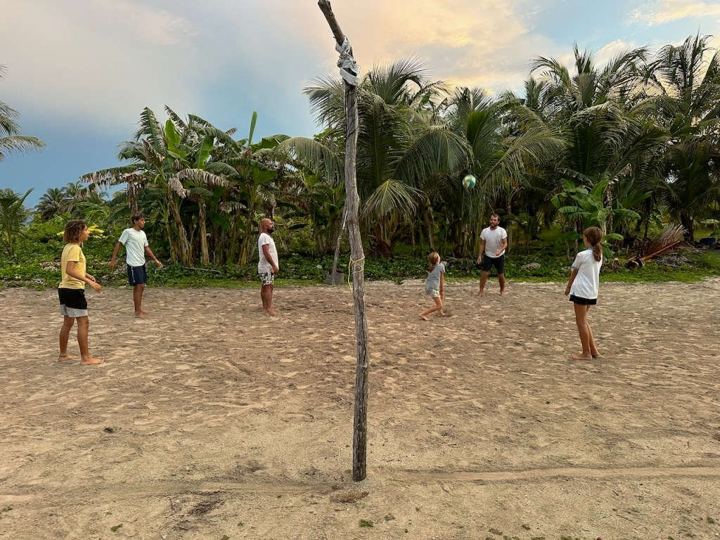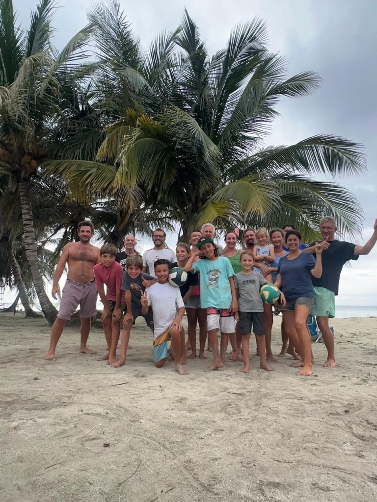 the pretty bar on the south side of Banedupa Kuna with sailing byKarin, Eric, the Dutch couple we had met again, Norbert and on the right Monikids feeding at the beach with pizza from IbinI just like the colourful still lifeIbin’s bar at nightmy beginnings of the making of chapshere some fitting at the beach Debbie had invited the Dutchies, Mark and us for dinnerthat was Karin’s birthday party on BBQ island, we had a big potlucka birthday jump, Eric, Lotti, Oskar, Karin, Till and El capitano Doghan on the left and a another sailor, just can’t remember his namebirthday potluckalmost done with the chapsthe volleyball net was broken , so I took it and sewed back together, Norbert had to hold itthe net reinstalled – ready for usea bon fire on the south side of Banedup – a last evening for a few boats fairy tail pics from the night taken by Oskarit doesn’t look real , does it? but it was !!!a typical rainy season skya dinner at Ibins with DebbieAyla, Ilka and me teaching the kids (and parents) how to play, on the left Ayla, Aydin and Doghan, Carmen, Camille and May on the other sideonly a few players left just another pretty sunseta walk at the beachsometimes we could even see the mainlandI found a blooming flower on Banedup !!! I have no idea what kind of flower that isEl Capitano was fishing one day with Aydin and Doghan – they brought a few of these crabs, they tasted very nice