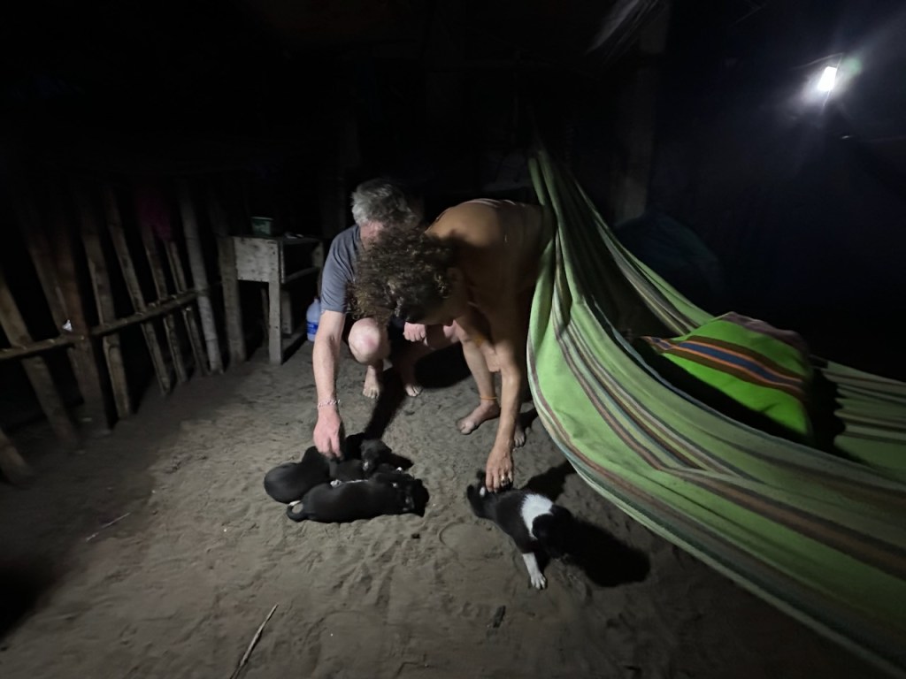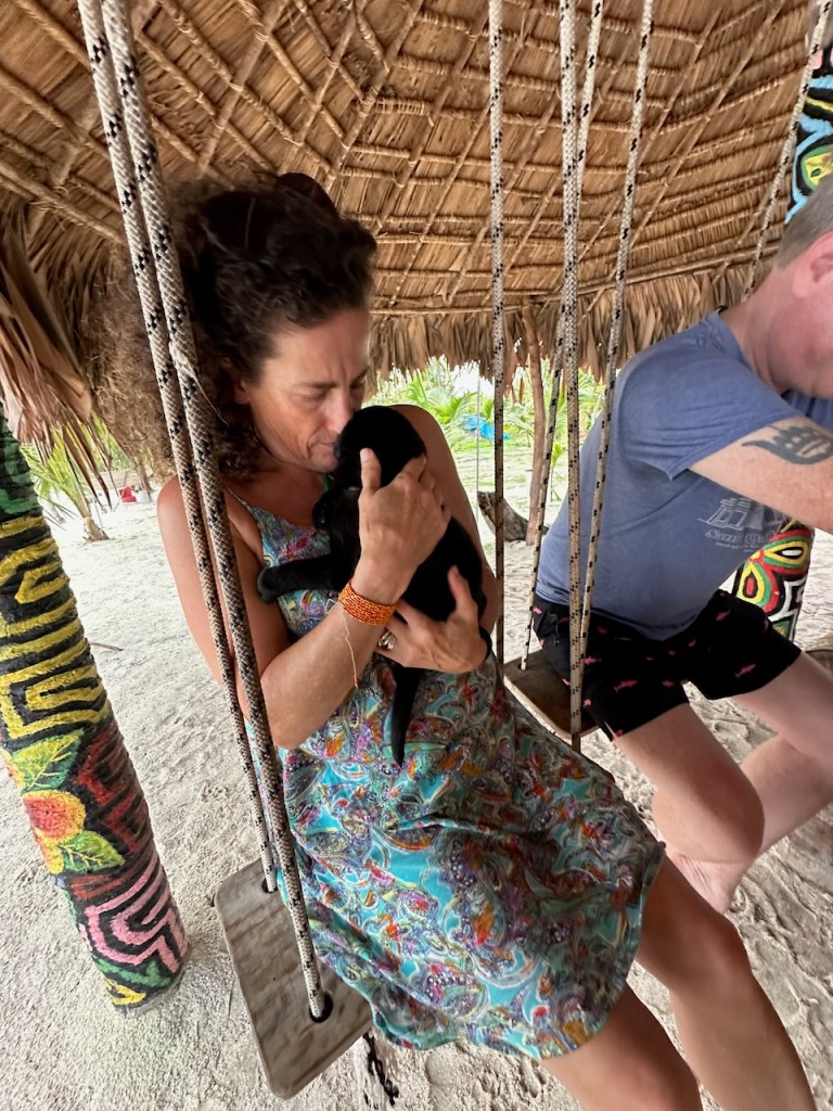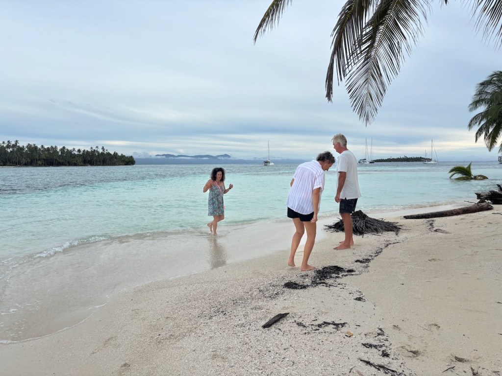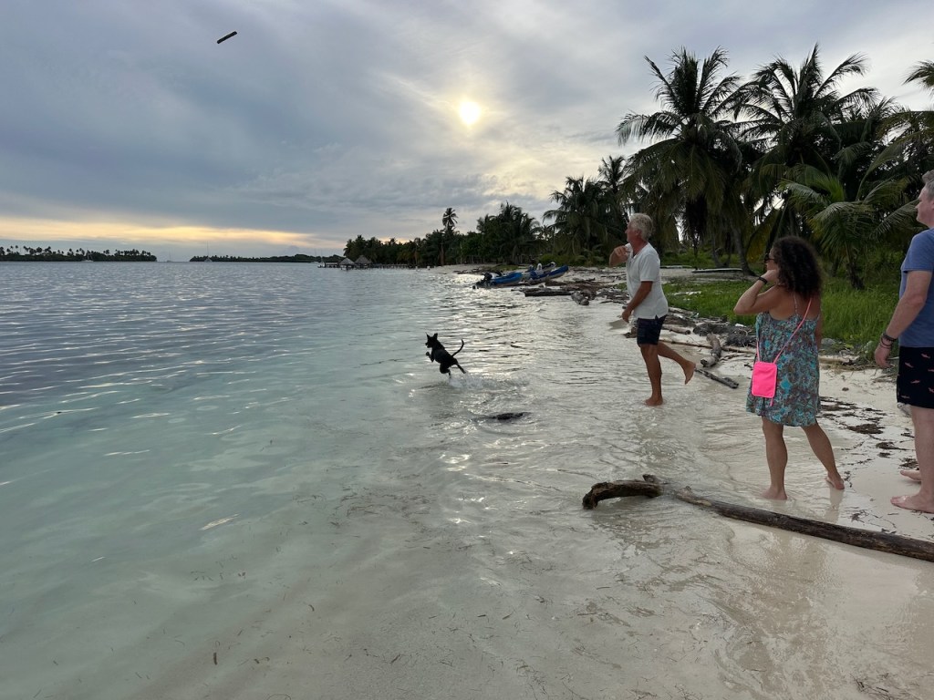 Kellianne and Ty arriving with a lancha from Cartíwe had just arrived at the pool and went ashore for a stroll around BanedupTy, Kellianne and my big nosealready at the south sidethe little hermit crabs seemed to like living in the old palm tree stumpCoco the dog joined us Kellianne was investigating the little hermitsafter the loooong stroll we deserved a cold beveragethis cute puppy caught our attention, such a sweet little guy4th of July at Debbies, potluck on Runner, Mark had taken the picvery American foodRunner’s bar timesmore puppies at IbinsVenancio came buy to offer his very special molas, thankfully Kellianne was a good buyerjust a pretty picOgoppiriadupsomeone enjoying a pipabreakfast coffee“the office” at Green Islandmore islandsRío Azúcar, the Kuna villageKellianne buying more molasmeanwhile Ty was checking the meters outsideI can’t recall if he was satisfied or nota last sunset at WaisaladupKellianne enjoying the sail and then they were already picked up again- bye, bye