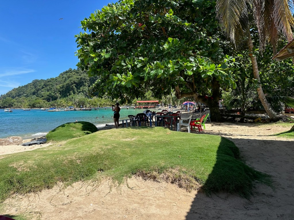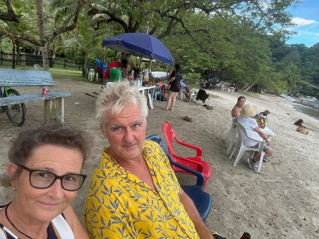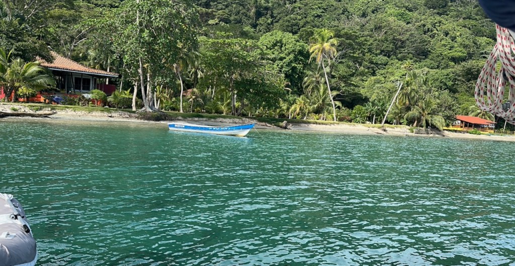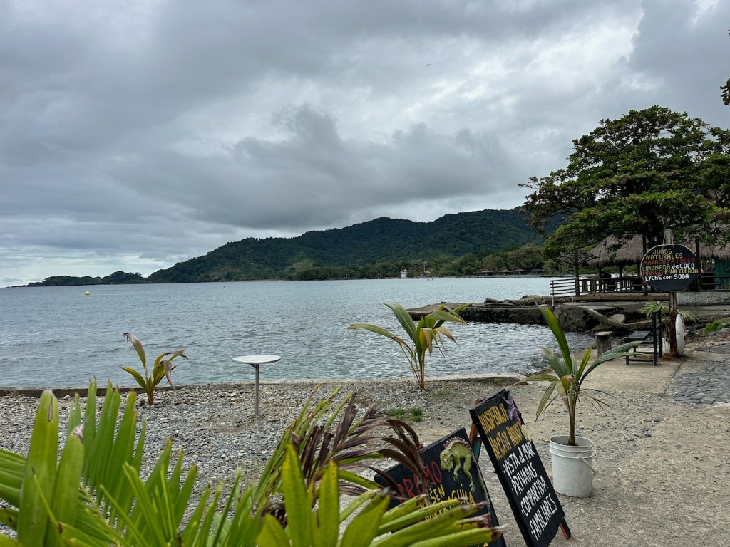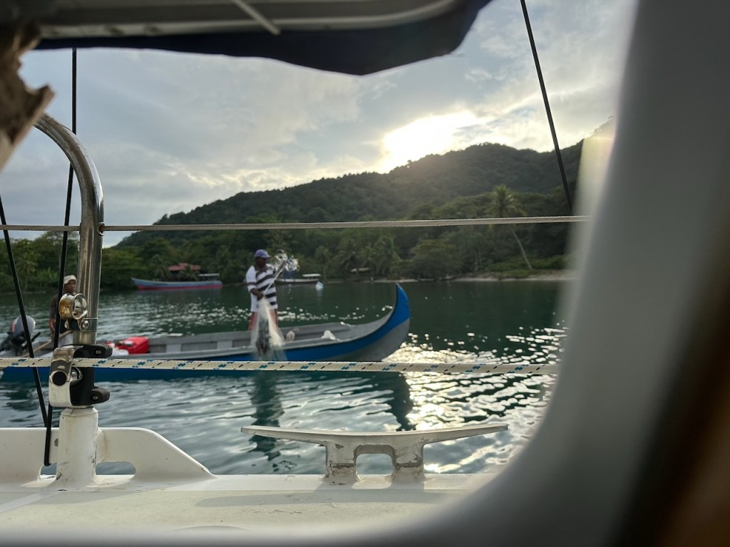 the birds loved sitting on Altimatethose men were fishing right next to us one morning- not very successful. enjoying the sunset at the beach with dos cervezasselfie time – so no-one forgets how we look like passing the village to hike to Miellets sweat!the border to Panamá was on top of the hillpeople were brought to Miel with lanchasthis time there even was a sailor in the bay- its was a very rolly anchorage that’s why we didn’t stop thereMiel – the tourists usually only come for a day visit, beaching, drinking and buying booze from the duty free shopthe famous duty free shop- its hilarious back in Sapzurro we stopped for a fresh juice