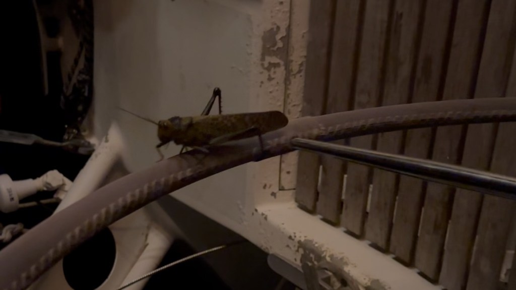 early in the morning at Snug Harbour just before we fled from the mean bugsjust a beauty backpacker sailing boat which we kept seeing sailing up and down the Colombian/Panama coastsome rain far enough from us just before anchoring at Isla Pinoafter a squall at Isla Pinossome Kunas brought us crab – lunch for the next day was decidedAltimate behind the palm leaves a little stroll along the island here we had our mini potluck with the German couple who were anchored next to us Gitti and Jo on “Kiss me”this was the creature which made me scream – sorry it was dark so not a great pic
