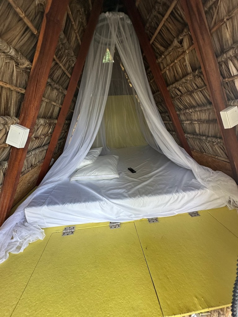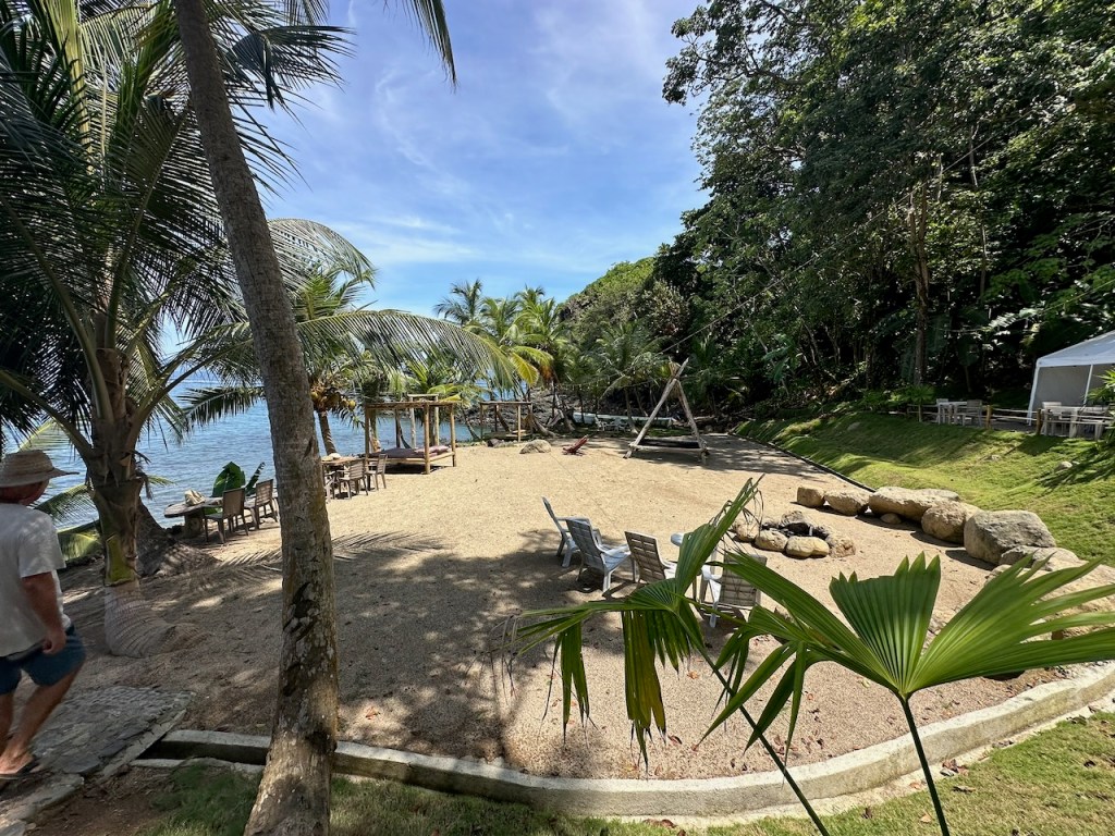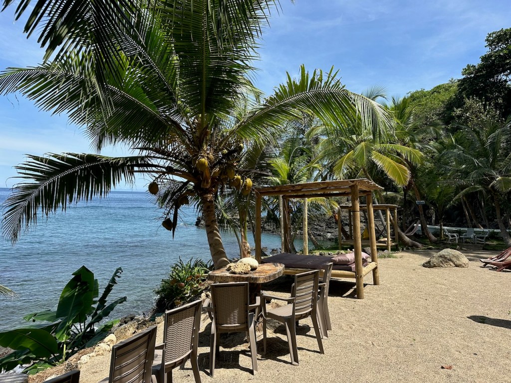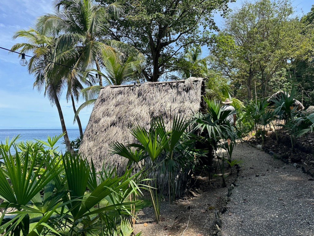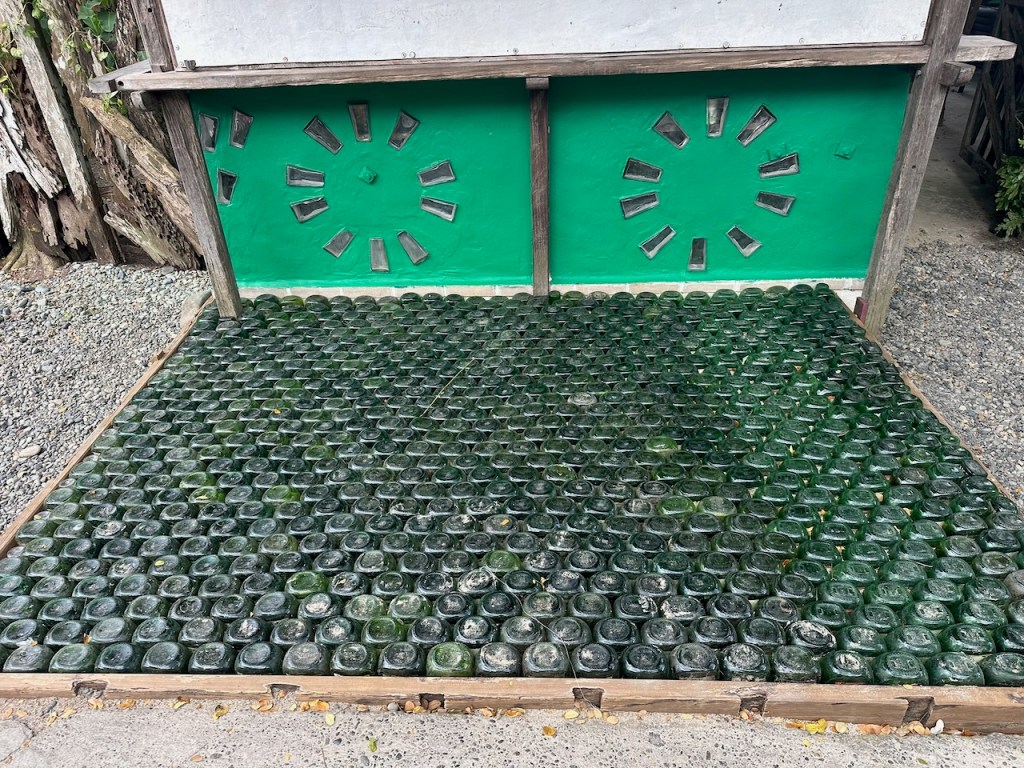 Sapzurro always pretty even when overcastedI liked that they were able to give old bottles a new purposeAltimate almost alone , the two other boats belonged to locals and were hardly used- nice was the fact that the wrecks had disappeared since we left last timethe lovely bay of Sapzurrowhat was El Capitano looking at?we noticed some new accommodations, some still under construction but also using old bottlesthe piece in the water was a remaining of the boat which had just sunk when we had arrived the first timewe even saw some ducks, I could not recall seeing them beforethe view from Lina’s place – we had dinner there one dayone day this cruising ship anchored at Sapzurro – we were strolling to the south east end of the bayat the furthest point they had built a cute resort with triangle roof hutsI peeped inside of a bathroom hut- it looks bigger in the pic than it actually was the sleeping huta terraceand the beach and eating area – I guessI saw a monkey – but can’t find him anymorethe weather was not that pretty but Sapzurro still looked magical- in a different way though