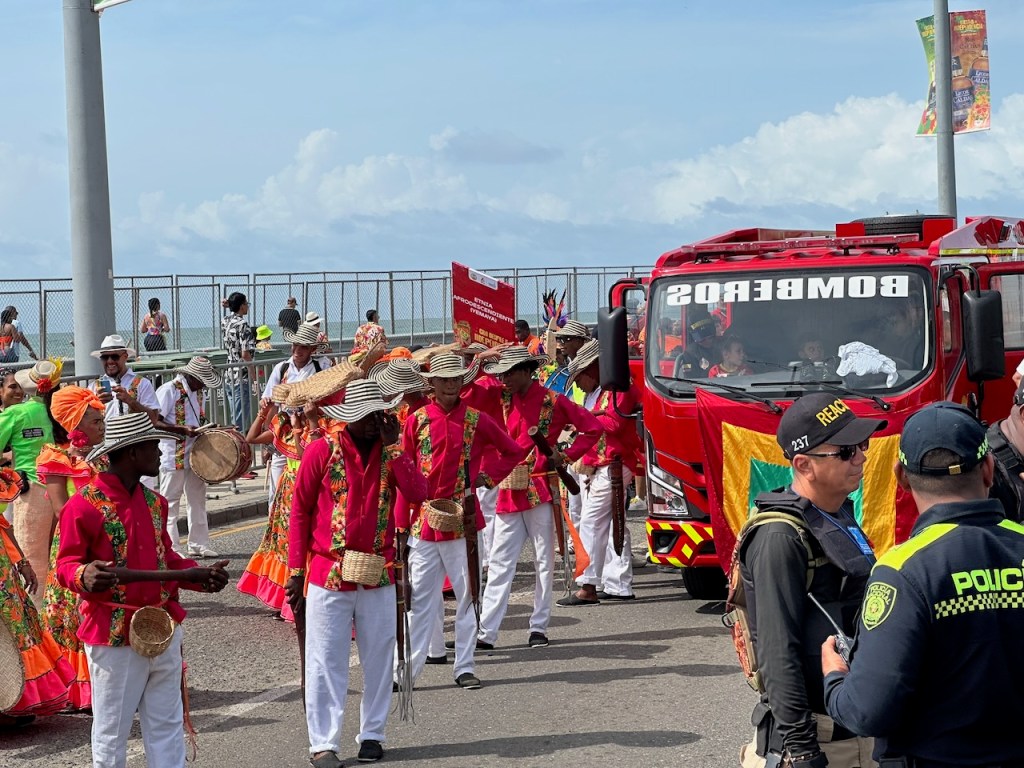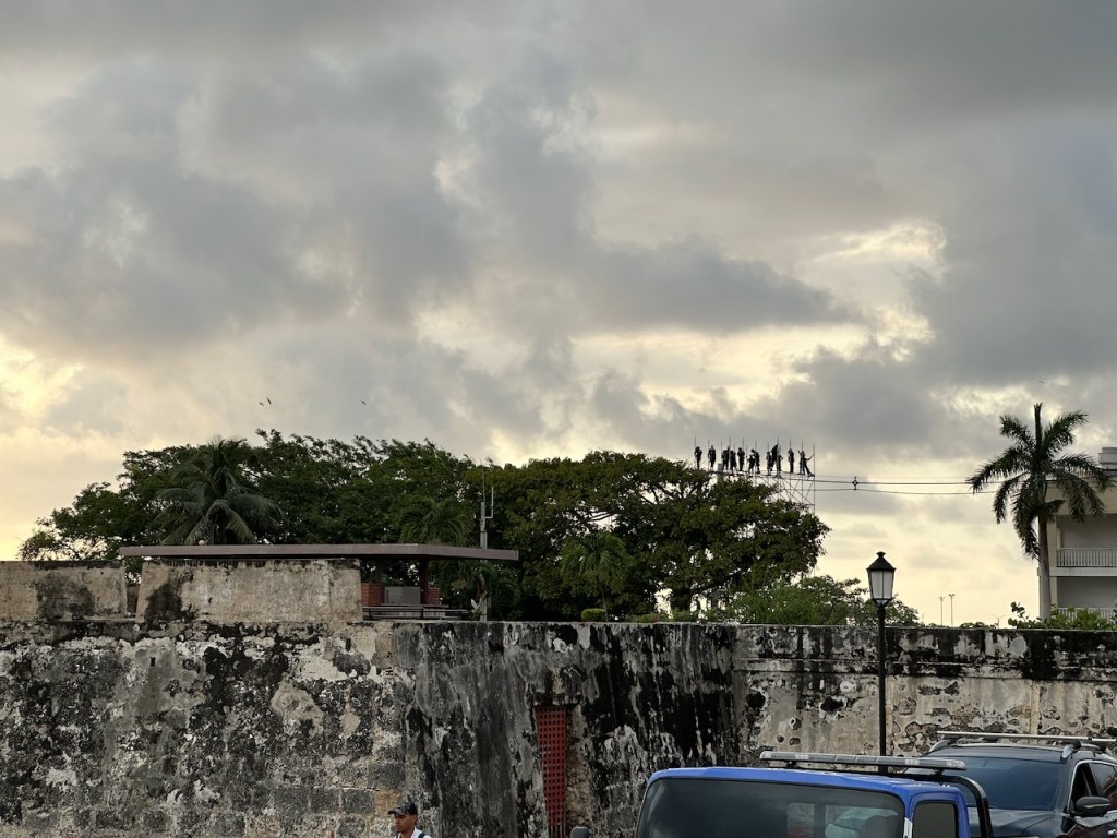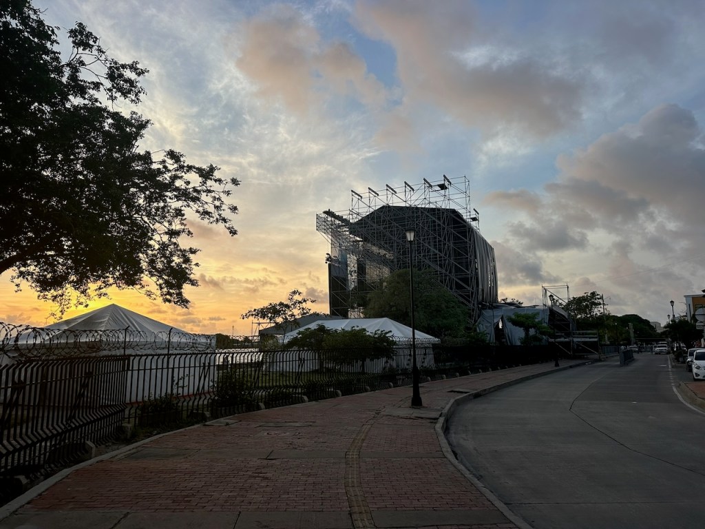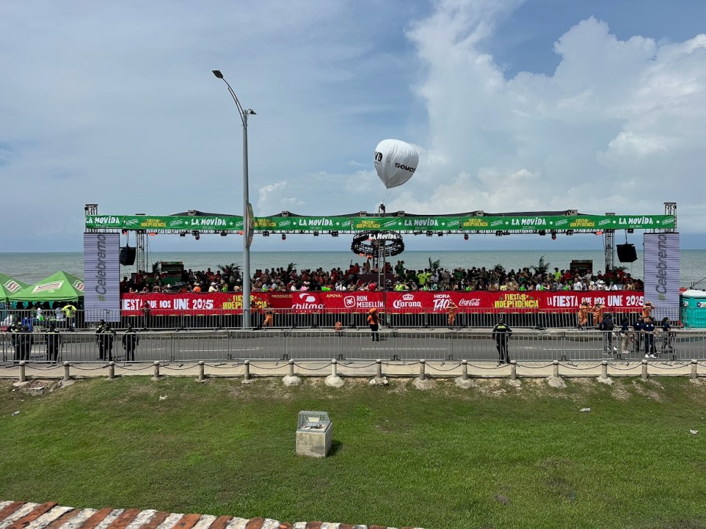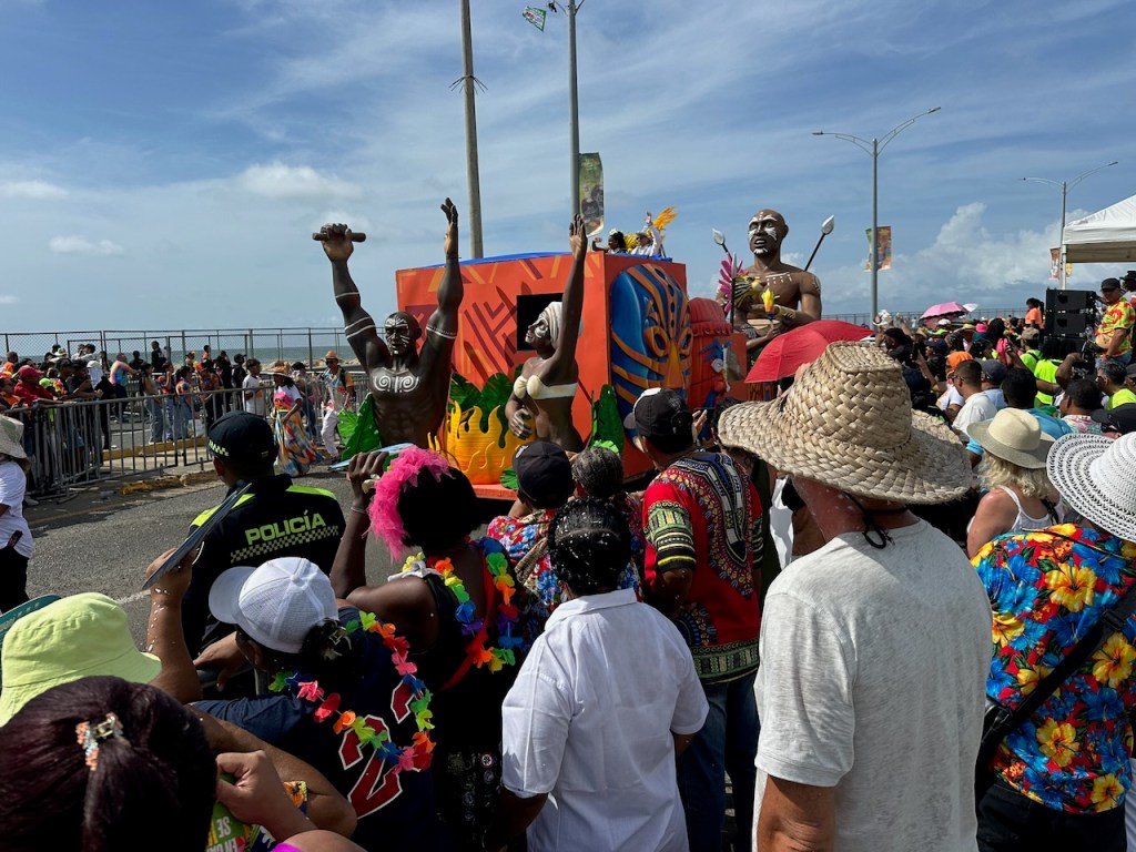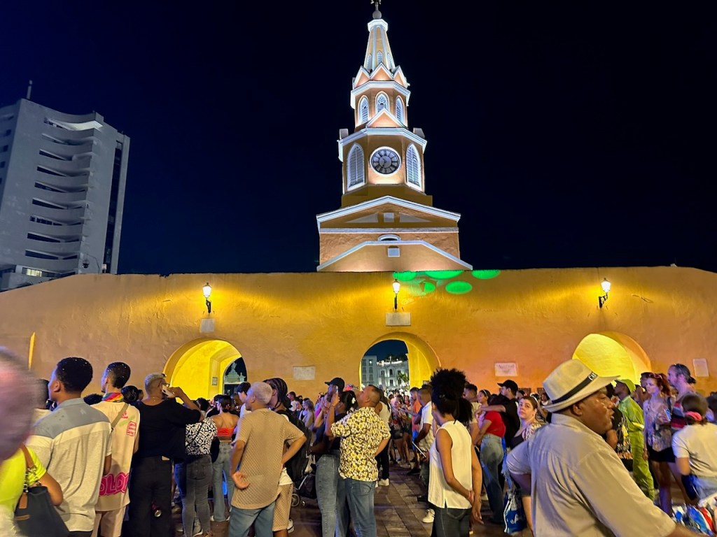 only one foto from the entrance/exit of Cholon; since last time they have set many many buoys, it gets crowded on weekends, early in the morning it was very peacefulthe east tip of Boca Grande Cartagenathat was not a mural!!! the people were building up the stage for the big independence music event right at the bayhere a close up from the brave constructors – not at all a job for mepre parties were already happening; this was a shake the boody competitionla plaza Camellón de los Mártiresparty area around Torre del Relojmore party behind the wall close to the clock towersome figures alongside the muelle, I think they represented the different cultures and areas of Colombia