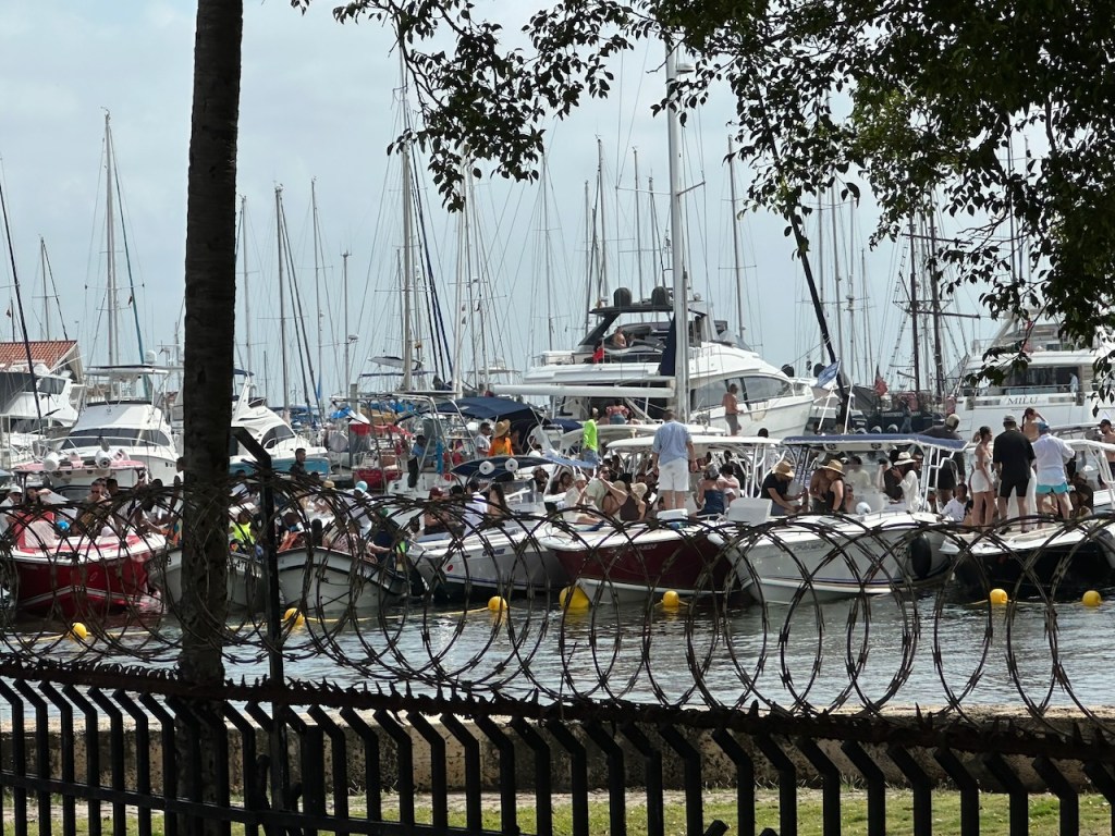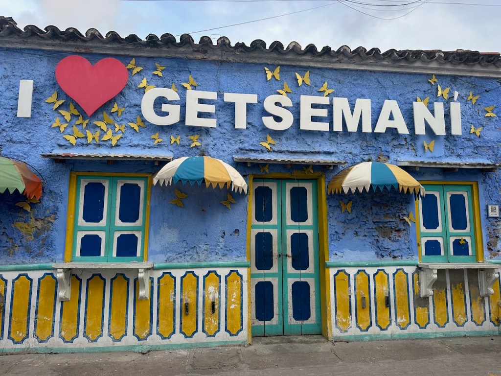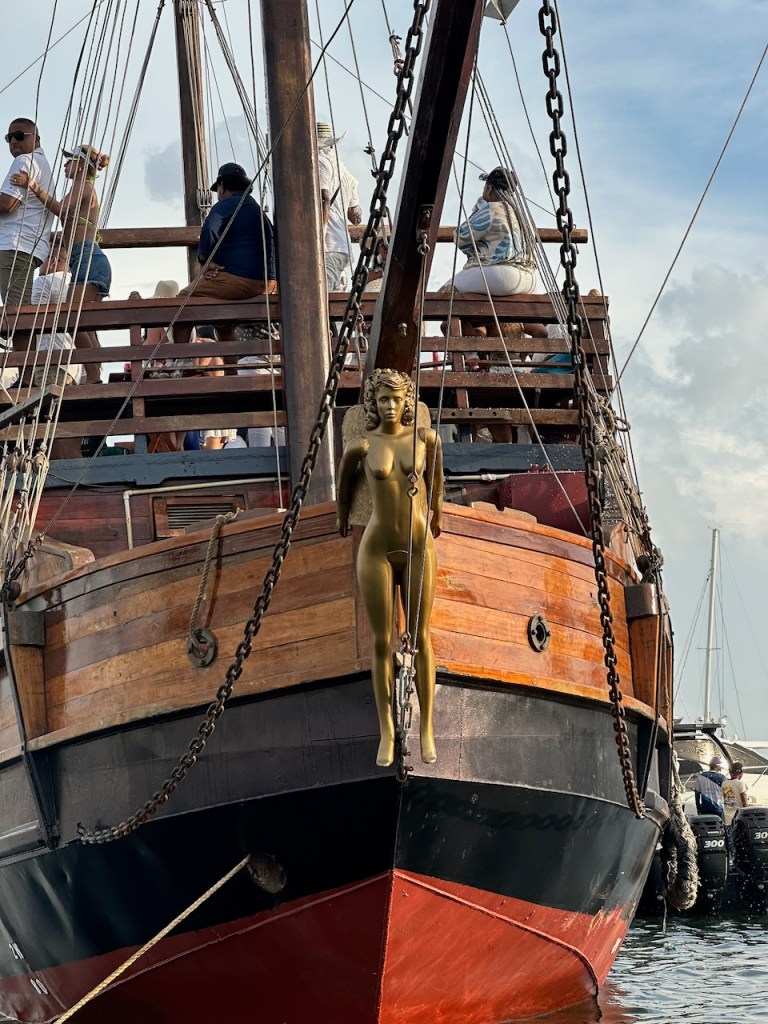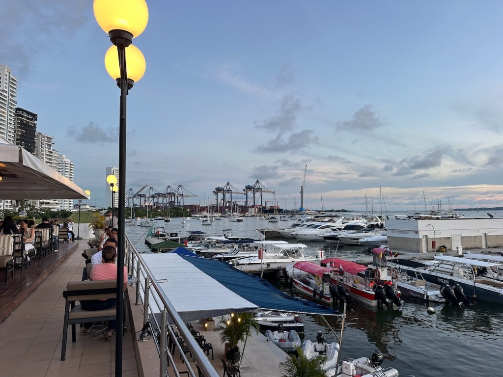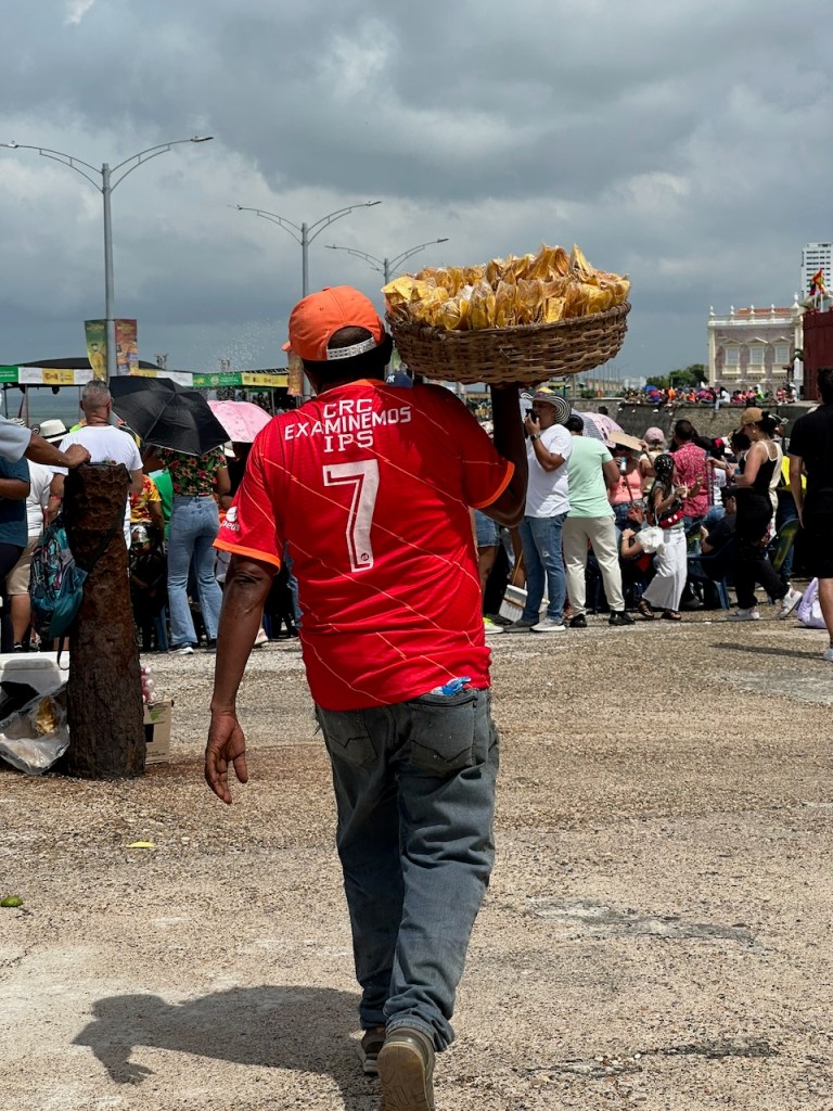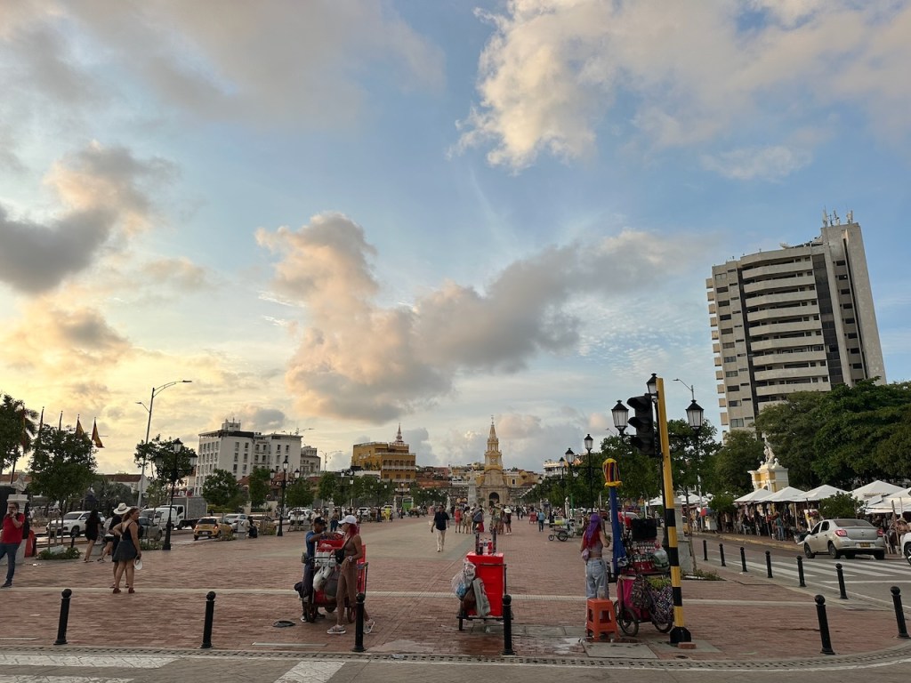 the cool district of Getsemanilooking to the bay from the wallThe Square San Pedro Claver includes the church of the same name. What stands out in this location is the statue crafted by artist Enrique Grau, portraying San Pedro Claver the Jesuit missionary known as the ‘slave of the slaves’, which contrasts with the avant-garde pieces created from scrap metal by Edgardo: (the words from the sign)San Pedro Claver the Jesuit missionary El Capitano ain’t he cute? sitting all alone on that big benchone of the pretty streets in the old citythe stage ready to let the music outI always wanted a x-mas coffeethat was how the bay usually looked likefor the music event it looked like that absolutely packed boats everywheresome boats were bigger some smaller but on all of them partyyyyyybooty dance and selfie timethe stage