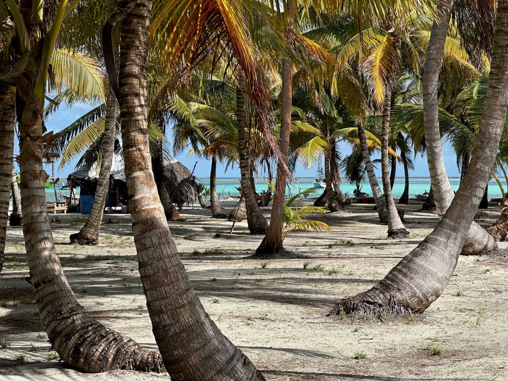 The next day we moved on to Ogopsidup Cayo Blanco, another island we had not been before. Only a little hop east of Green island. The fun part here was that we had tied up to a palm tree stern to the island. We stayed two nights enjoying being alone at night as charter boats only came for a few hours with their guests to play at the beach. Also we found a terrific reef with beautiful soft corals which we hadn’t seen in the San Blas before. The weather goddess was not in absolute favour for us as the sun had a hard time to squeeze through the clouds which unfortunately restricted the visibility. Yet we were all super excited and thrilled about the variety and the bright colours of the corals. I can’t imagine how it will look like in sunny weather! And Luisito, our little fire devil also managed to start a fire at the beach in between some rain showers. A proper fire lighter won’t be stopped by rain, no, no, no! He had fun and we could burn our garbage. Life can be so easy! As we still wanted to explore more we tried the anchorage west of little island Waisaladup also called “the office”. It earned its name as it used to be a good spot to catch mobile data connection when Star Link had not yet existed. Unfortunately the snorkelling wasn’t as niece as expected so we moved on to Sibadup in the western Holandes. Ciganka had told us about that island. We are so thankful!!! That beautiful place turned out to be the nicest island we had been to lately. Still not yet visited as much by cruisers and caringly looked after by a very sweet Kuna family. The place still looked like a typical San Blas island. White beach on one side, shade-providing palm trees and mangroves on the other end. It was surrounded by colourful shiny turquoise water which made it look like being in island heaven. It was for sure a treat for our eyes! Nature can be so outrageously beautiful. Right? On top of all that stunning beauty, we had found a sensational snorkel spot at the outer reef. It was one of the best snorkel we had so far! The sun was shining, the current slow and the visibility just great. We happened to be so lucky to set the dinghy anchor close to a big cut at the reef. The amount of fish was just enormous. And not only that, within half an hour we saw sharks, spotted eagle rays, lobster, a viper moray it was absolutely stunning! We were blown away! What a lucky day!